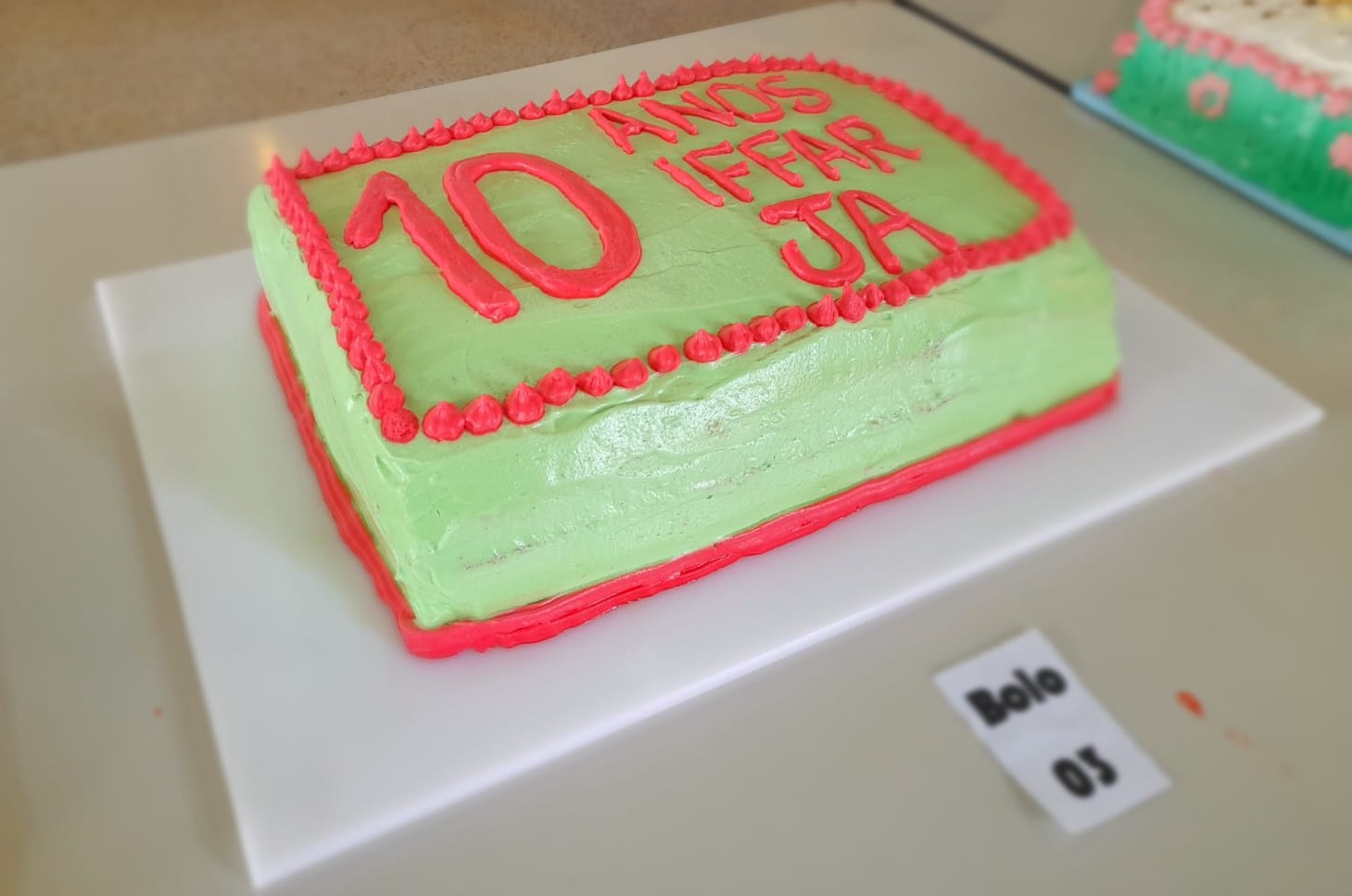 Após todos cantarem os parabéns ao Campus, ocorreu a escolha do melhor “Bolo comemorativo” pelos jurados. Essa atividade competitiva, foi organizada com muito carinho pelas turmas, onde cada uma elaborou um bolo, consagrou-se vencedor o Bolo 07 elaborado pela turma do 2º ano do Curso Técnico em Administração do CR Santiago. Ao final todos os presentes puderam degustar dos bolos.
