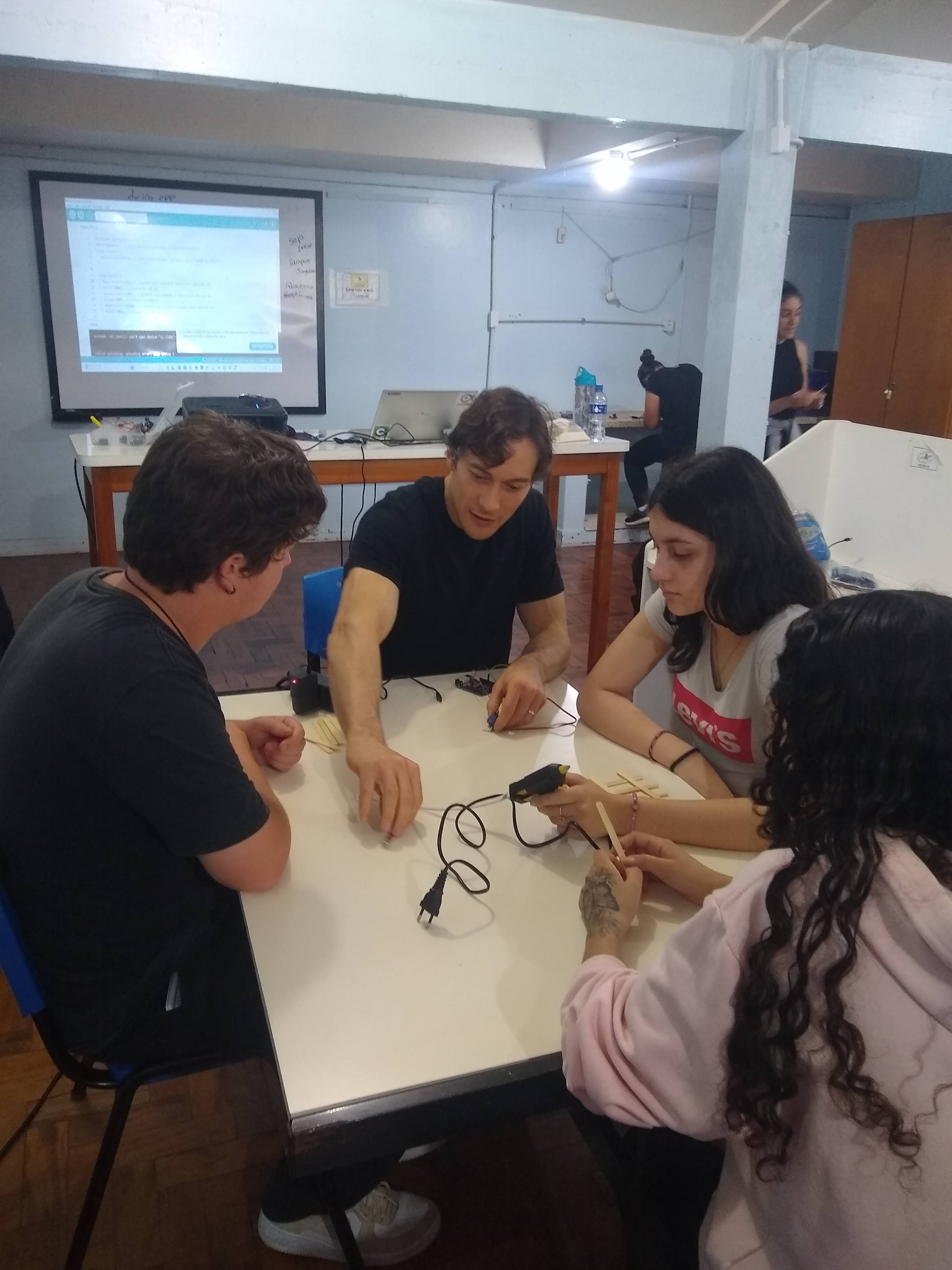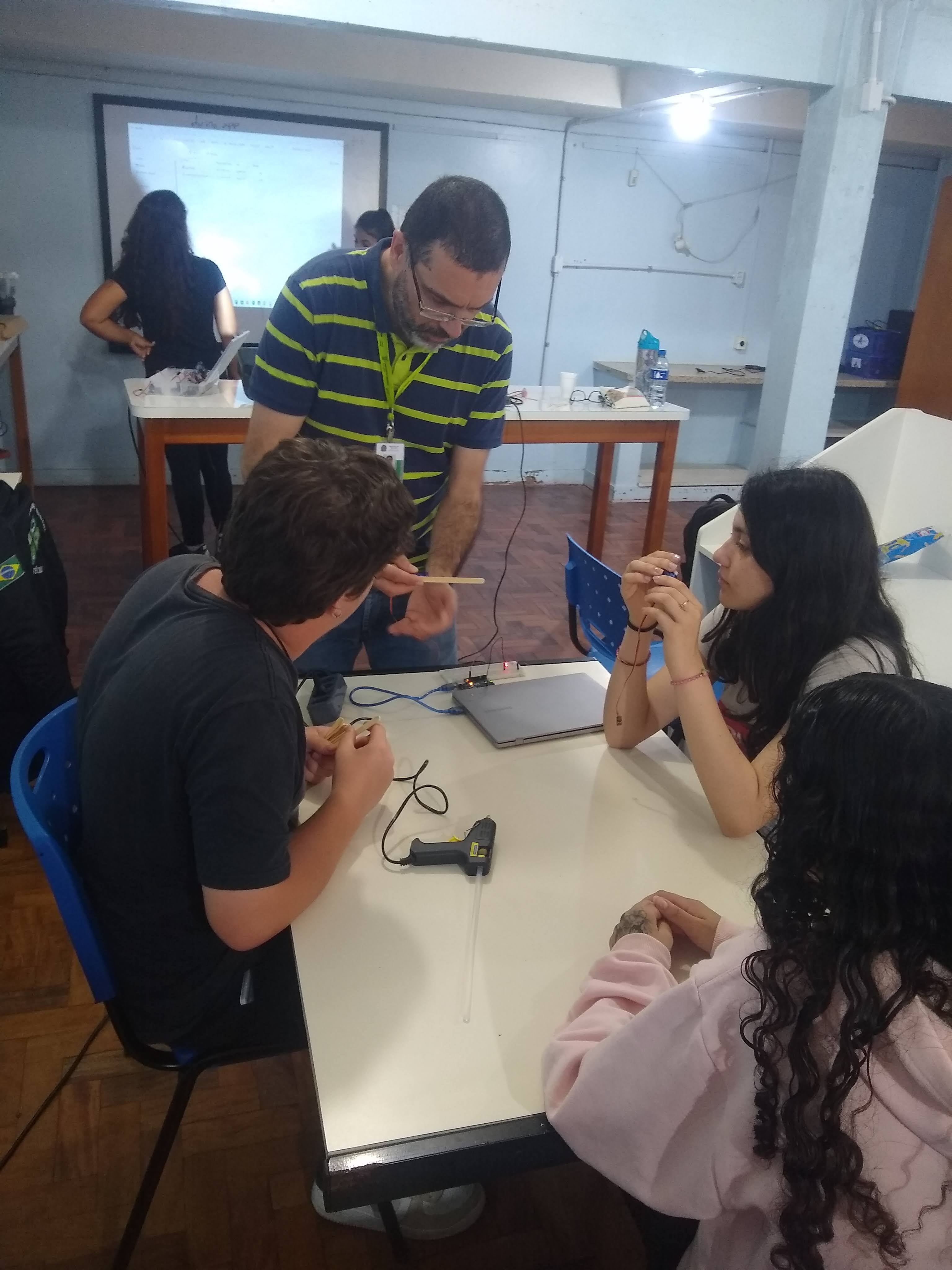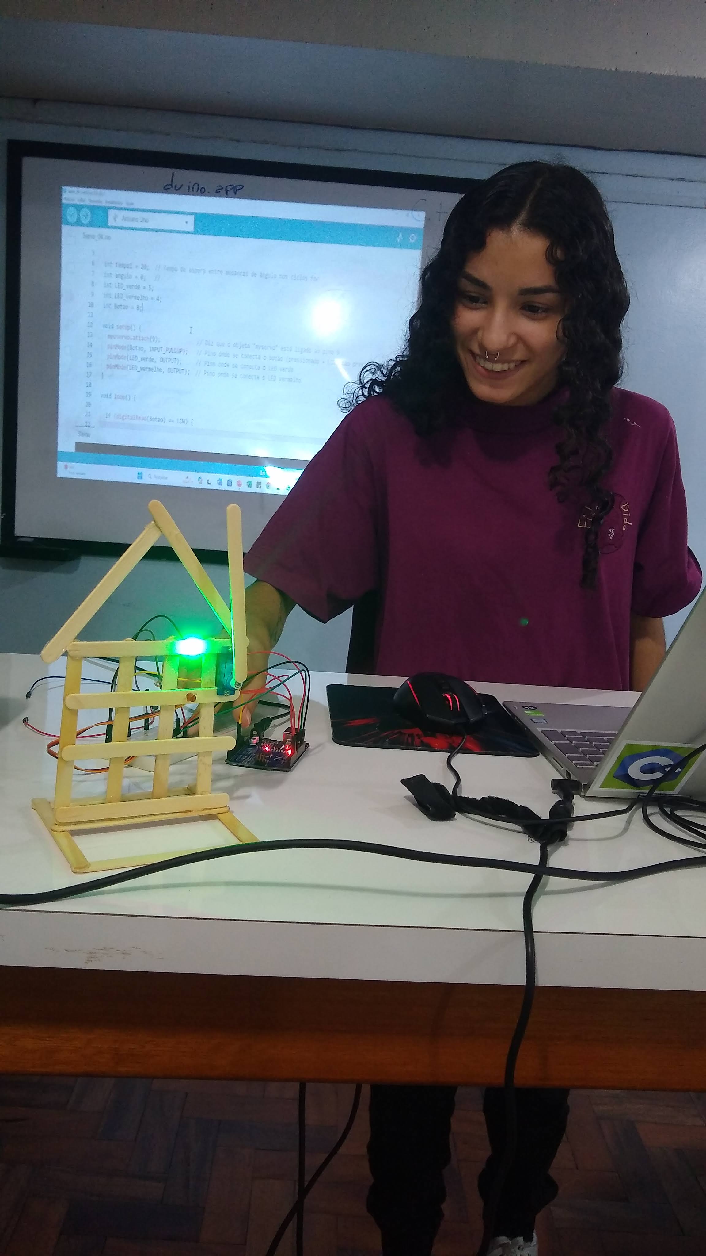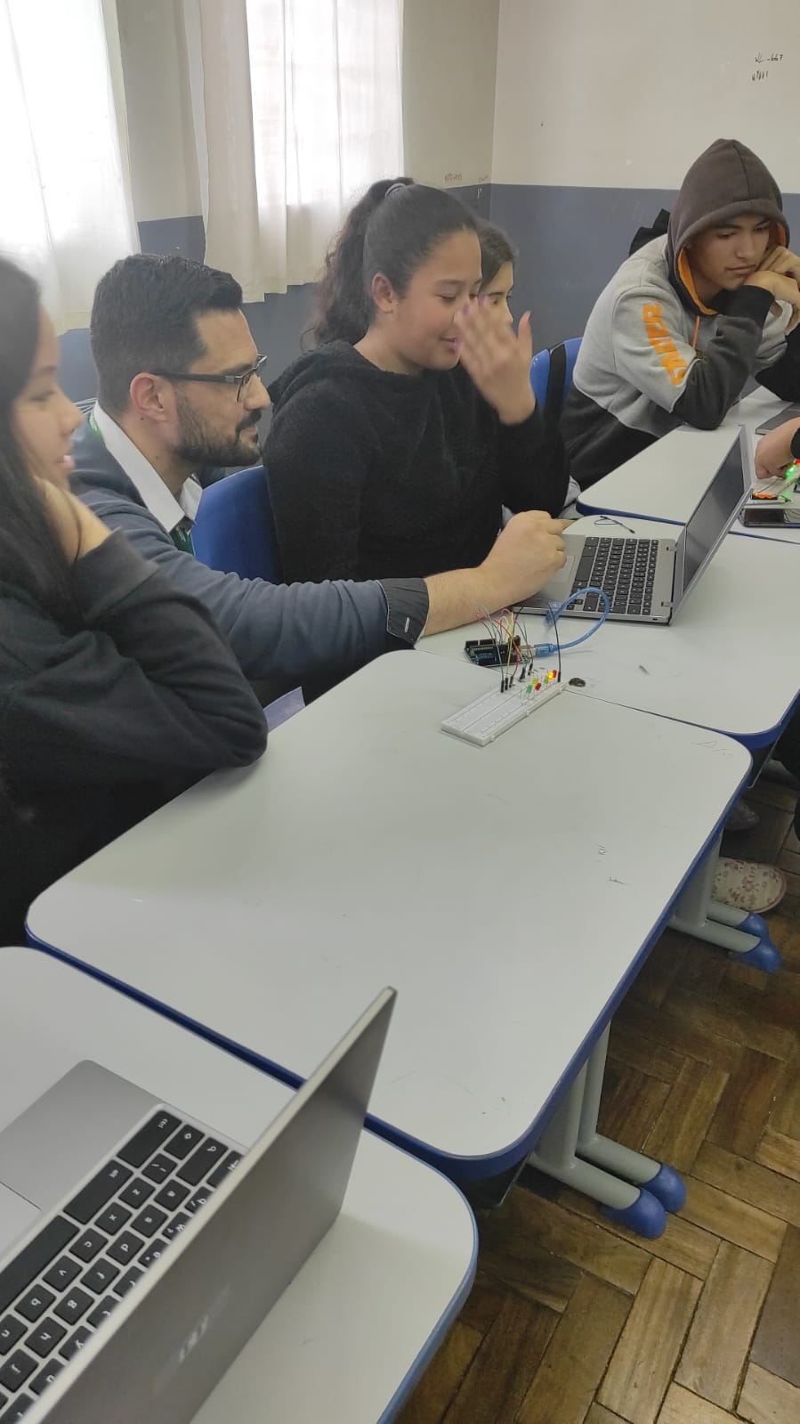Turmas do oitavo e nono ano do Ensino Fundamental participaram de minicursos presenciais oferecidos nas escolas estaduais Lucas Araújo, Cândido Genro, João Eduardo Witt Schmitz e São José, nos municípios de Santiago e Jaguari. Nos minicursos, foram abordados os fundamentos da programação, com ênfase na robótica, através de uma abordagem prática, visando explorar o potencial educacional da plataforma Arduino. O projeto contou com a valiosa participação de quatro alunos bolsistas do curso técnico integrado em Sistemas de Energia Renováveis: Gabriel Bruckmann, Lorenzo Sudati, Mirella de Oliveira e Michelle Migliorin.