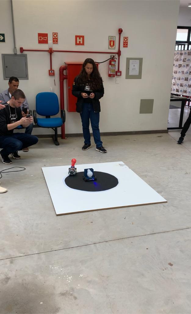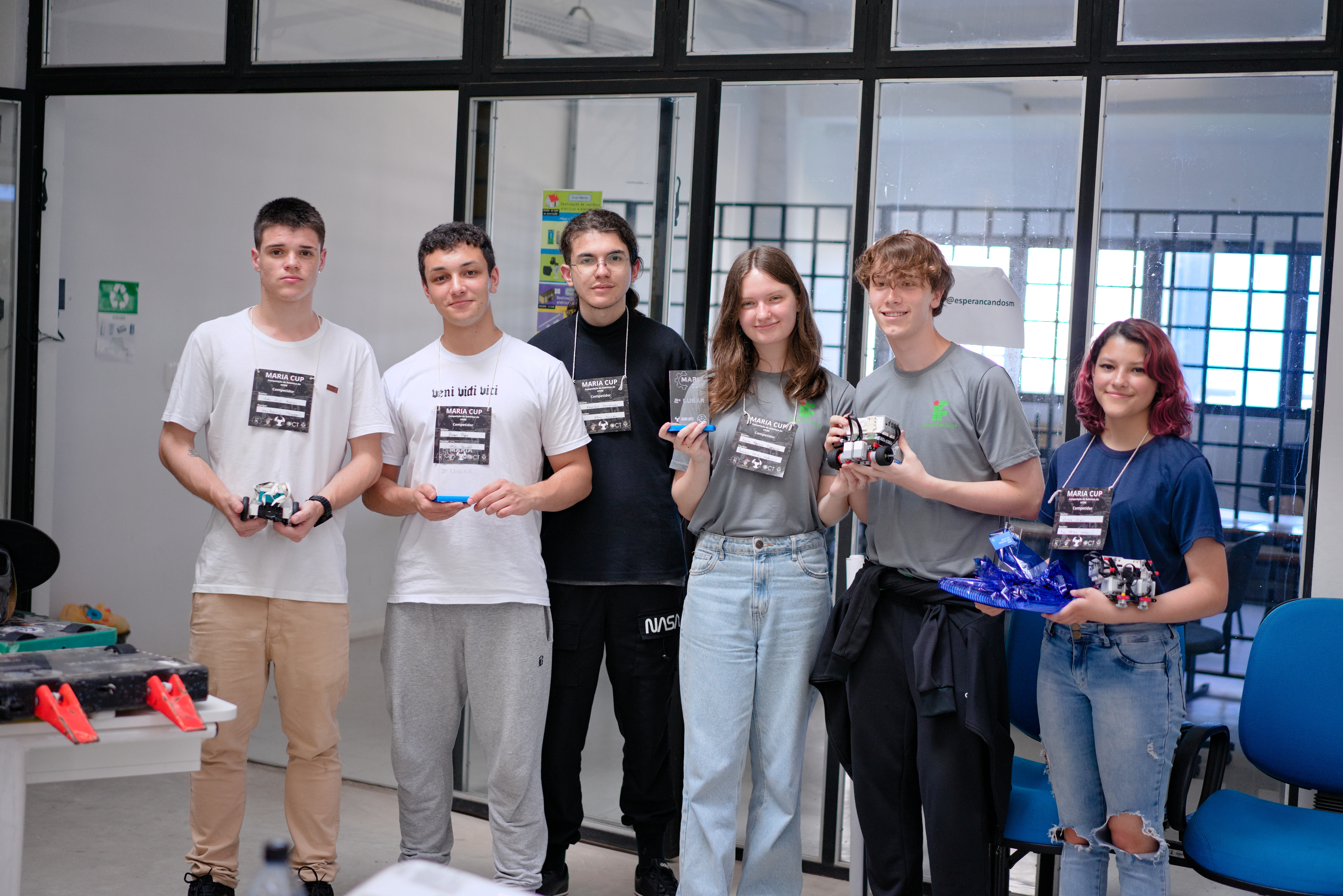 Aproveitando o conhecimento e a experiência adquirida durante a realização do projeto, as alunas Mirella e Michelle se juntaram à equipe composta pelos alunos Henrique Della Flora Amorim Afonso, Breno Pizzolatto Pires e João Vitor Shiefelbein Menezes, participantes do projeto de pesquisa coordenado pelo professor Henrique Tamiosso Machado, intitulado "Desenvolvimento de um Robô Educacional para Competições de Robótica". Esses alunos montaram dois robôs e participaram da competição de robótica Maria Cup, organizada pelo grupo de pesquisa em robótica Taura Bots, que ocorreu no sábado, 18 de novembro de 2023, nas instalações do Colégio Técnico Industrial de Santa Maria (CTISM). Eles competiram nas categorias de Robô Gladiador e Seguidor de Linha Lego, conquistando o terceiro lugar nesta última categoria. Algumas fotografias do projeto de extensão e da competição de robótica estão disponíveis nesta página.