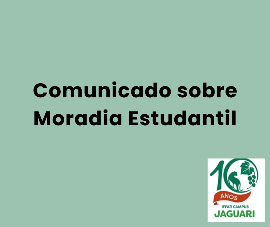 Informamos a toda a comunidade acadêmica que para o ano de 2024 não será lançado edital para novas vagas na Moradia Estudantil do IFFar - campus Jaguari, devido à falta de vagas e em conformidade com as normativas do Corpo de Bombeiros. Contudo, os estudantes que já ocupam vagas na Moradia Estudantil terão suas permanências garantidas respeitando a legislação vigente. A medida visa assegurar a permanência e êxito dos alunos já contemplados com esse benefício.