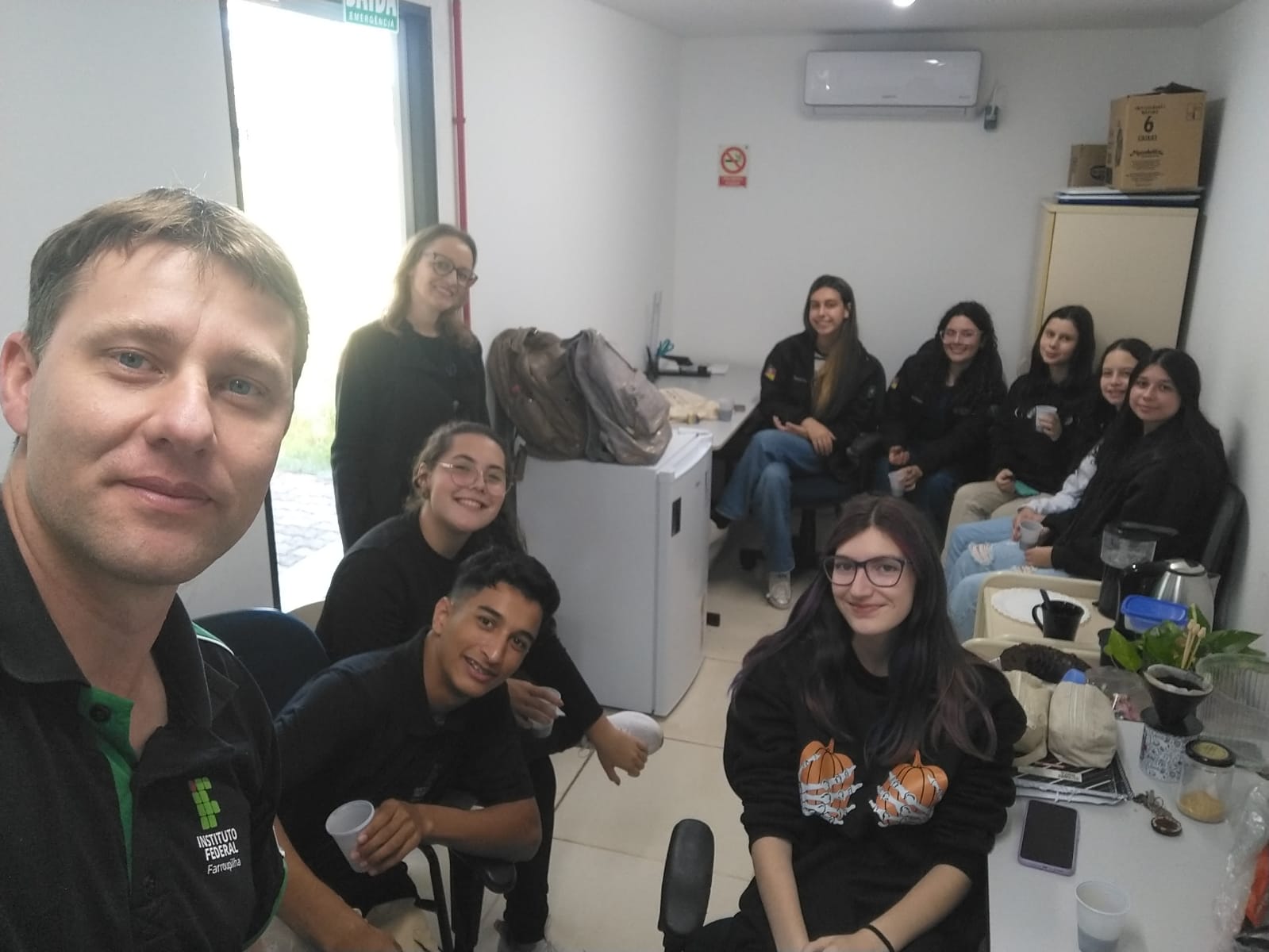 Na tarde de quarta-feira, dia 17 de abril, os bolsistas da Coordenação de Ações Afirmativas (CAA), do Núcleo de Estudos Afro-brasileiros e Indígenas (NEABI) e do Núcleo de Gênero e Diversidade Sexual (NUGEDIS) do IFFar – Campus Jaguari e do Centro de Referência de Santiago participaram de uma formação que teve como temática central a questão das ações afirmativas. A atividade foi conduzida pelo Coordenador de Ações Afirmativas do IFFar – Campus Jaguari, Maurício Guerra Bandinelli e contou com a participação de Fernanda Somavilla Rubin, presidente no NEABI e coordenadora substituta da CAA, Carina Martiny, presidente do NUGEDIS e Rosiclei de Siqueira Camargo, vice-presidente do NEABI e NUGEDIS. Na ocasião, os bolsistas puderam conhecer a sala da CAA/NÚCLEOS, local onde podem realizar suas atividades como bolsistas. No IFFar Campus Jaguari são bolsistas: Tayná da Rosa Lopes (CAA), Abrilino da Silva Júnior (NEABI) e Raylla Eduarda Ribeiro da Costa (NUGEDIS); no CR Santiago: Maitê Muller dos Santos Fonseca (CAA), Liriane Zborowski Jacques (NEABI) e Gabriela Carneiro de Castro (NUGEDIS).