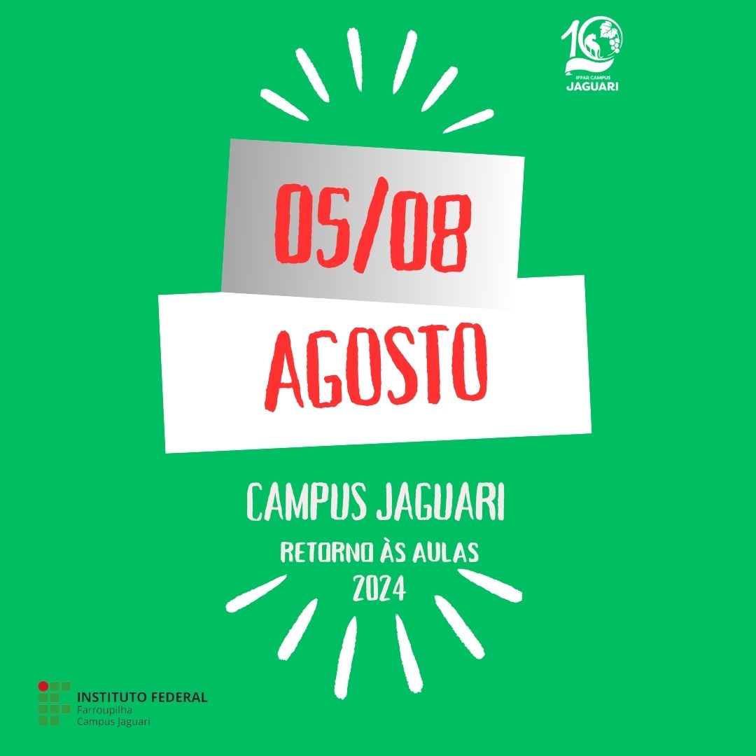 Atenção servidores e estudantes! O Campus Jaguari está executando, desde o período de recesso e férias, as obras do Plano de Prevenção e Proteção Contra Incêndio - PPCI, a empresa está trabalhando incansavelmente para realizar a entrega da obra o quanto antes. Diante disso, será necessário para segurança de todos (as) o adiamento do retorno das aulas na unidade para dia 05/08/2024.