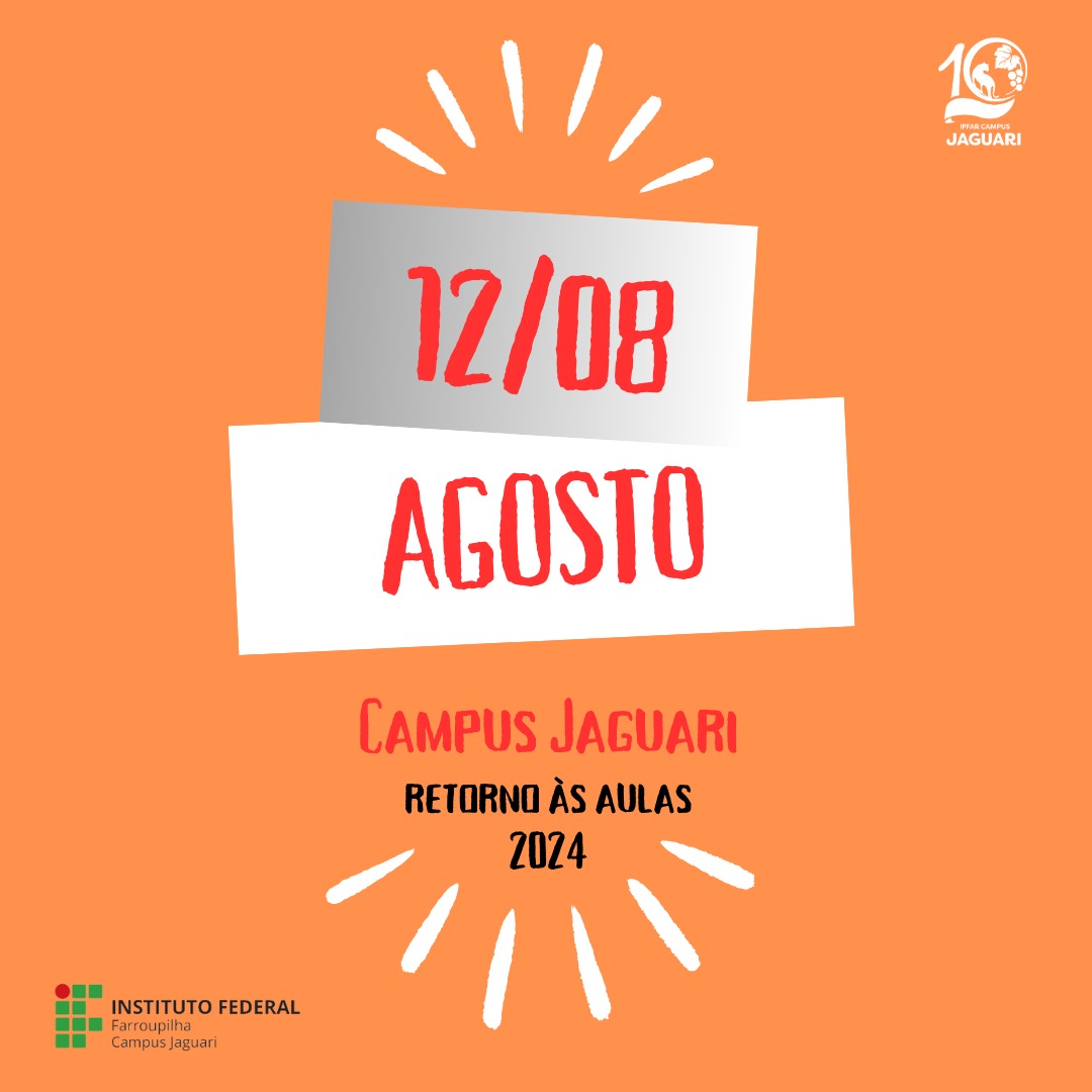 Campus Jaguari comunica novo adiamento do retorno das aulas na unidade para dia 12/08/2024.