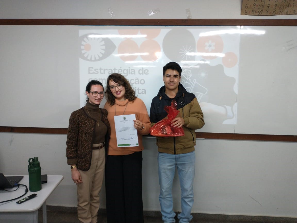 A Dra. Jana, formada em Comunicação Social com Habilitação em Relações Públicas pela Universidade Federal de Santa Maria (UFSM), além de mestre e doutora em Extensão Rural pela mesma instituição, compartilhou valiosas dicas sobre comunicação assertiva com os estudantes do curso Técnico em Agricultura. Estudantes inscritos no projeto e servidores do campus também marcaram presença.
