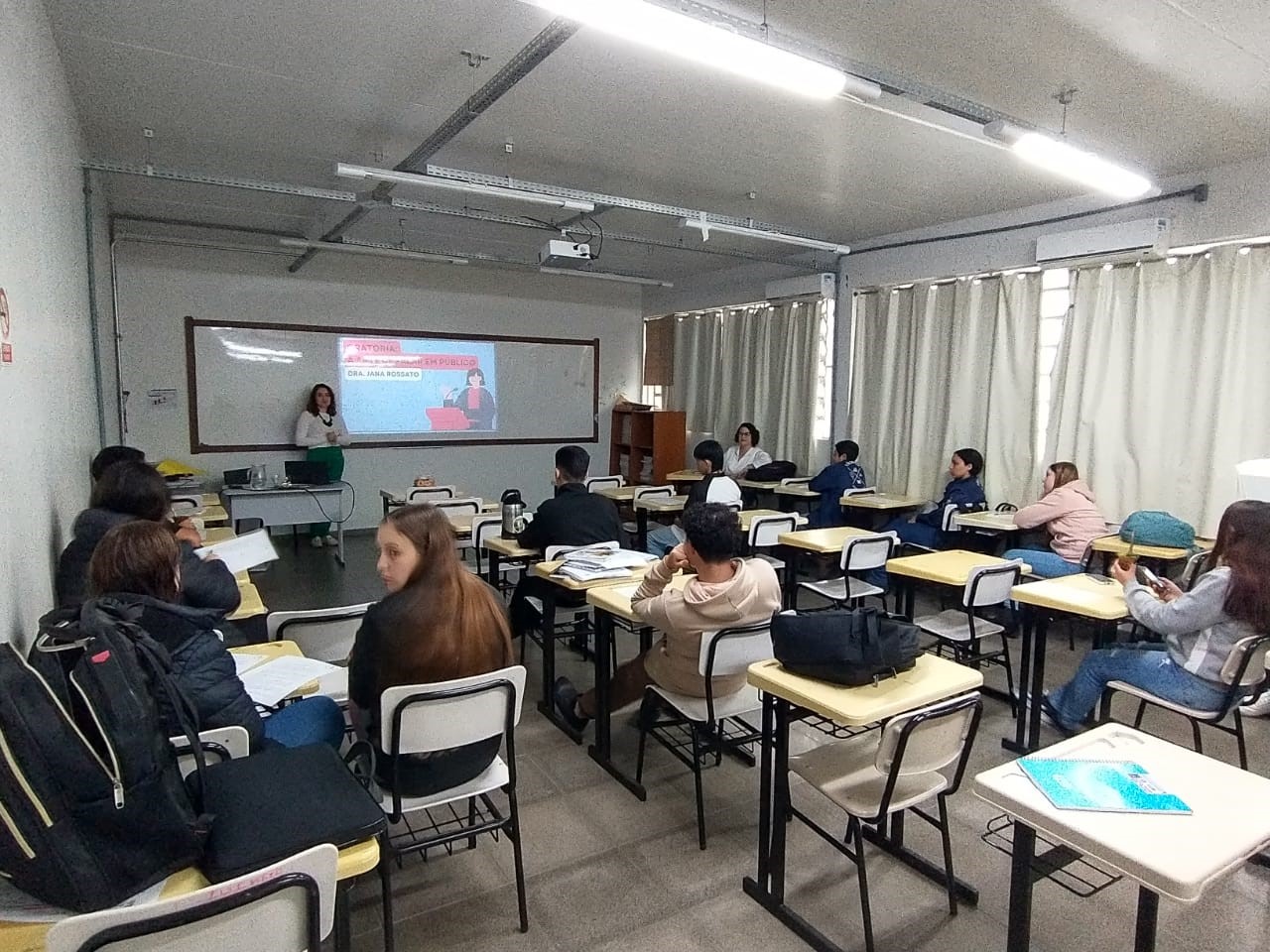 Dra. Jana, graduada em Comunicação Social com Habilitação em Relações Públicas pela Universidade Federal de Santa Maria (UFSM), além de mestre e doutora em Extensão Rural pela mesma instituição, compartilhou dicas valiosas sobre a arte de falar em público com os estudantes do curso Técnico em Agricultura inscritos no projeto.