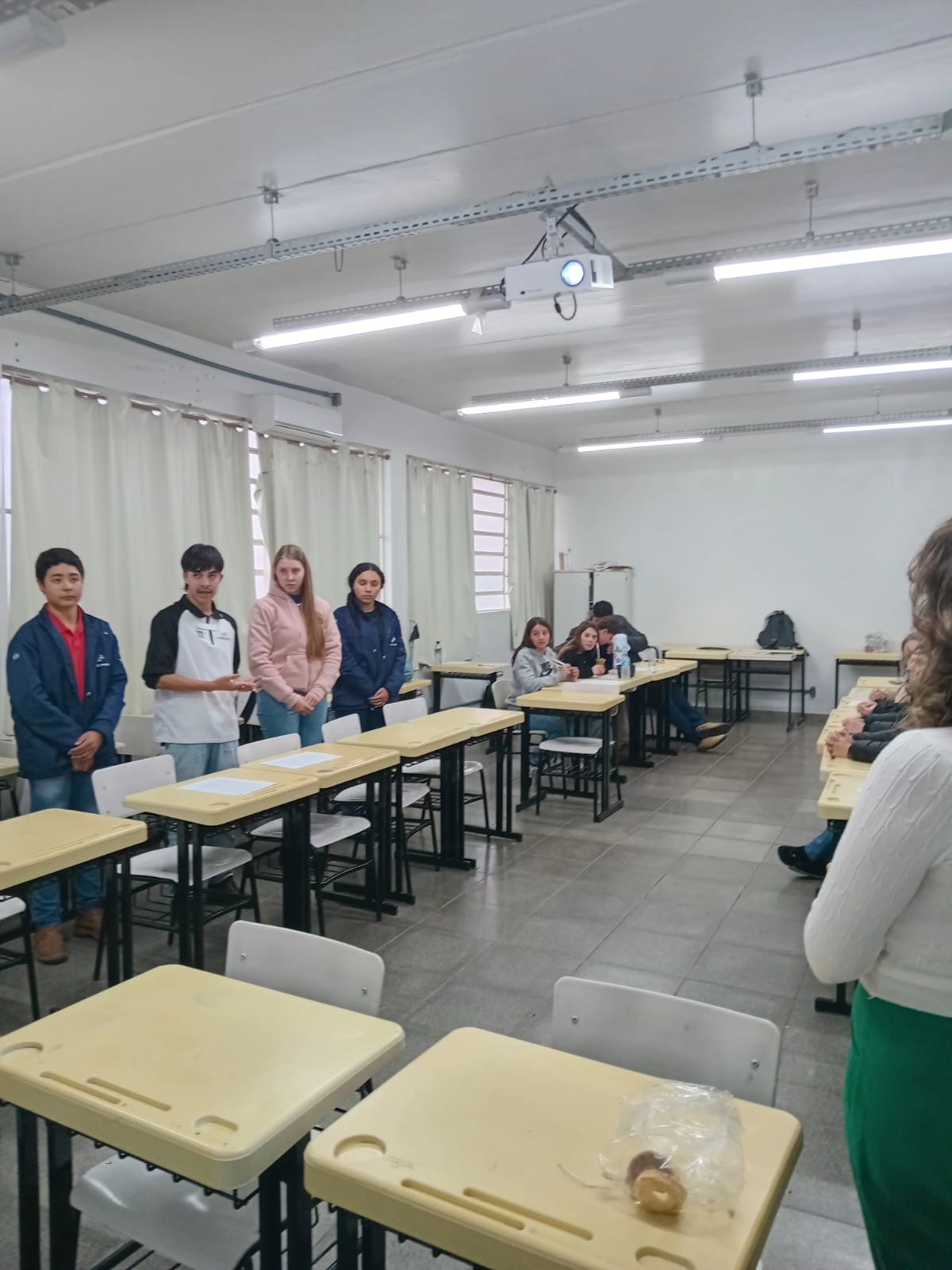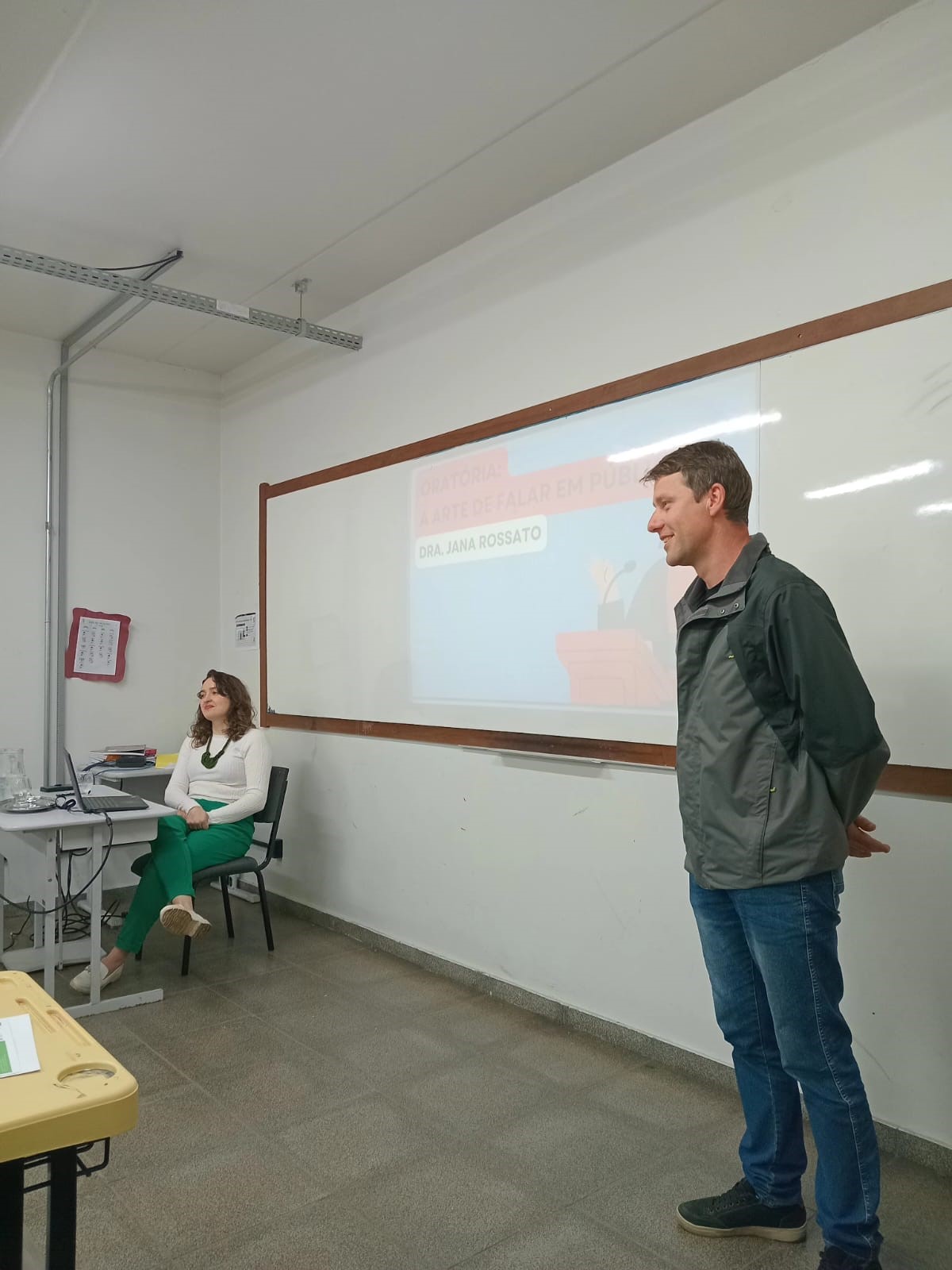 No dia 26 de setembro de 2024, o Instituto Federal Farroupilha - Campus Jaguari realizou o quinto encontro do projeto de ensino "Caminho para o Sucesso Profissional: Desenvolvendo Competências-Chave para Brilhar no Trabalho". O evento, que teve como tema "Técnicas para Falar em Público", contou com a ilustre participação da comunicóloga e psicanalista Dra. Jana Rossato Gonçalves, dando continuidade às discussões iniciadas em encontros anteriores.