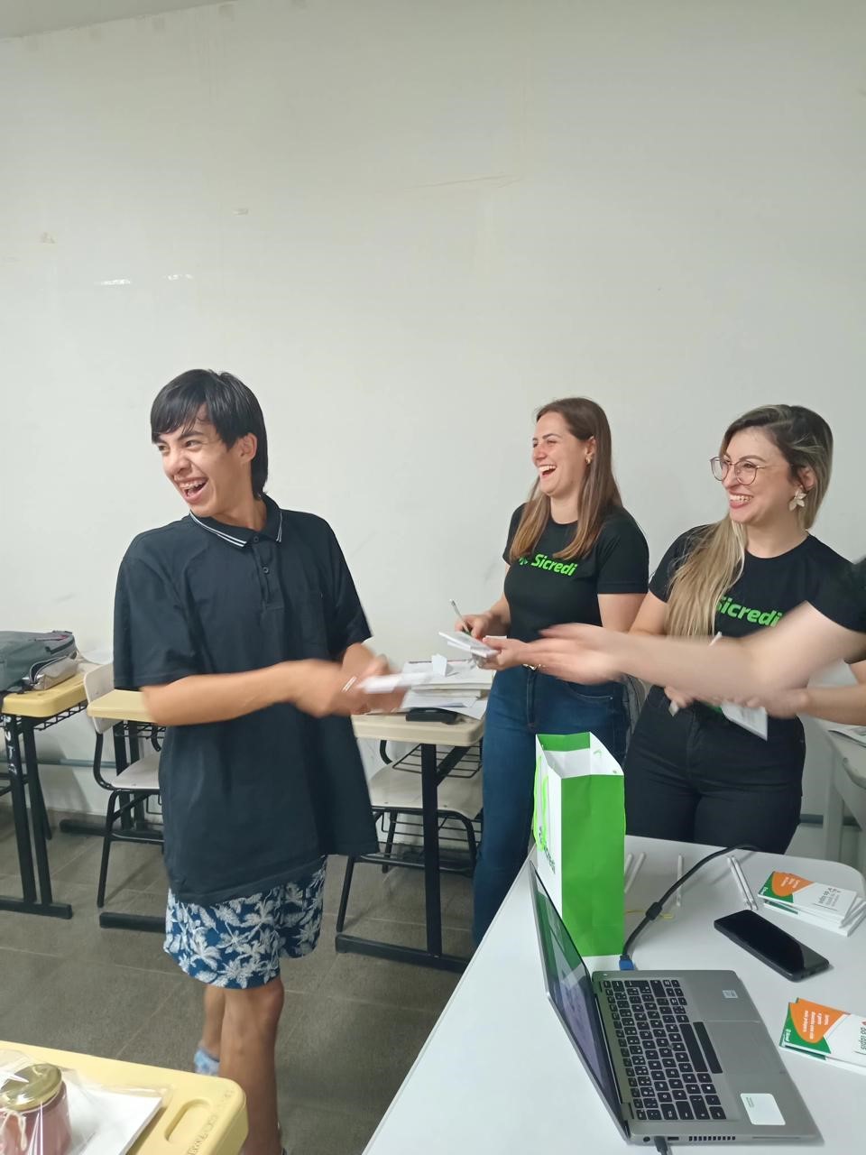 No dia 27 de novembro de 2024, o projeto "Caminho para o Sucesso Profissional: Desenvolvendo Competências Chave para Brilhar no Trabalho" recebeu as gerentes de negócios do SICREDI de Jaguari, Fernanda Mossi, Vanessa Bolzan e Paula Nicola. O tema "Finanças: Mitos e Verdades" foi abordado pelo grupo de forma reflexiva e aplicada junto com os estudantes do curso técnico em agricultura. A atividade contribuiu para a análise da necessidade de consumo dos jovens, os critérios para definir o que é necessário e o que é apenas um desejo, sem uma real necessidade. Também foram discutidos aspectos relacionados a investimento e reserva financeira, fundamentais para todos que gerenciam seu dinheiro. Acreditamos que a educação financeira é parte essencial do autoconhecimento, do bom estabelecimento profissional e da melhoria da autoestima. A equipe do projeto é composta por Carina Pivetta, Cristina Turchiello, Laís Perin, Luana Mendes, Marília da Rosa Goularte, Maurício Bandinelli, Paulo Bazana (bolsista voluntário), Silviana Delavechia Gibicoski e Tatiana Tozzi Martins Souza Rodrigues (coordenadora).