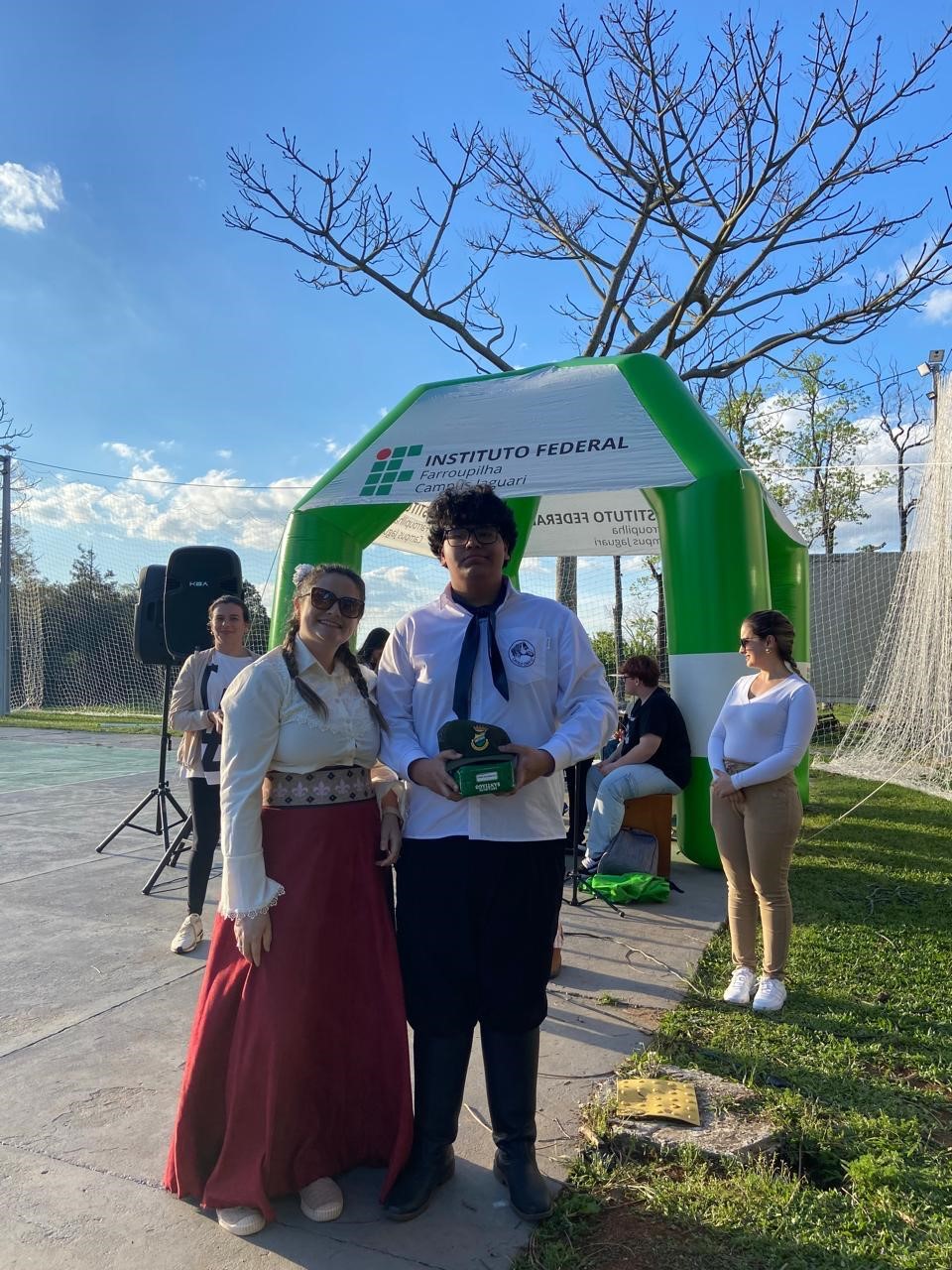 No dia 11 de setembro de 2025, o IF Farroupilha – Campus Jaguari celebrou a 2ª edição da Mateada Farroupilha e a X Mostra Cultural Interna do Campus Jaguari, evento organizado por uma comissão composta por servidores e estudantes. A iniciativa visou fortalecer os laços entre a comunidade acadêmica e promover a cultura e a arte, com apresentações artísticas, música e convivência. A Mostra Cultural Interna foi um dos destaques da tarde, com a participação de mais de 60 estudantes que se apresentaram em diversas modalidades artísticas, incluindo dança, música, poesia, fotografia e exposições. O evento também contou com a colaboração do Núcleo de Arte e Cultura, além da participação especial da Banda e da Invernada Artística do IFFAR Campus São Vicente do Sul, que enriqueceram a programação com suas apresentações culturais. A Mateada Farroupilha faz parte do Projeto de Ensino Roda de Saúde e Qualidade de Vida da Assistência Estudantil, e teve como objetivo proporcionar um ambiente de integração, cuidado e lazer. Durante a tarde, os participantes puderam desfrutar de uma boa roda de chimarrão com a erva-mate Santiago, acompanhada de salgados e doces preparados pelos próprios estudantes. A oficina de chimarrão com a competição do melhor mate também marcou o evento, que foi finalizado, ainda, com o futebol de bombacha. A ação foi uma verdadeira celebração da cultura, de partilha das diversas manifestações culturais, dos talentos estudantis e do espírito de comunidade.