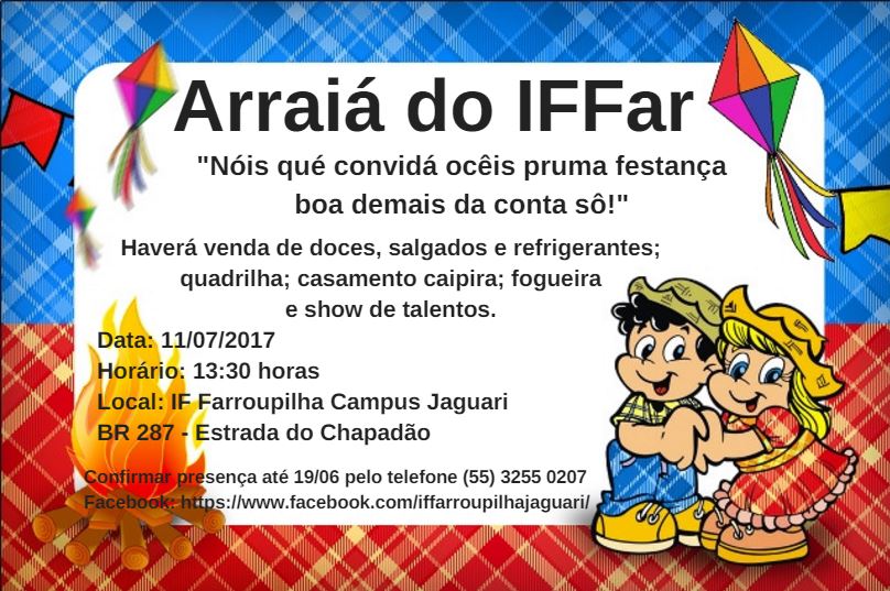 Vem aí o "Arraiá do IFFar"! Não perca essa baita festança! Vai ter muitos doces, salgados e diversão!