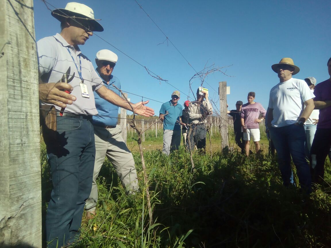 Na ocasião, o estudante João Paulo Escher Crestani e o técnico em agropecuária Sidnei Antônio Cattelan apresentaram resultados do projeto de pesquisa em videira denominado Comportamento vegetativo e produtivo da videira e composição da uva no Vale do Jaguari. O técnico da EMBRAPA, RoqueAntônio Zílio, explicou como se constituiu a unidade demonstrativa instalada no Campus Jaguari e coordenou o treinamento sobre manejo e poda de inverno em videiras conduzidas em sistema de latada e espaldeira.