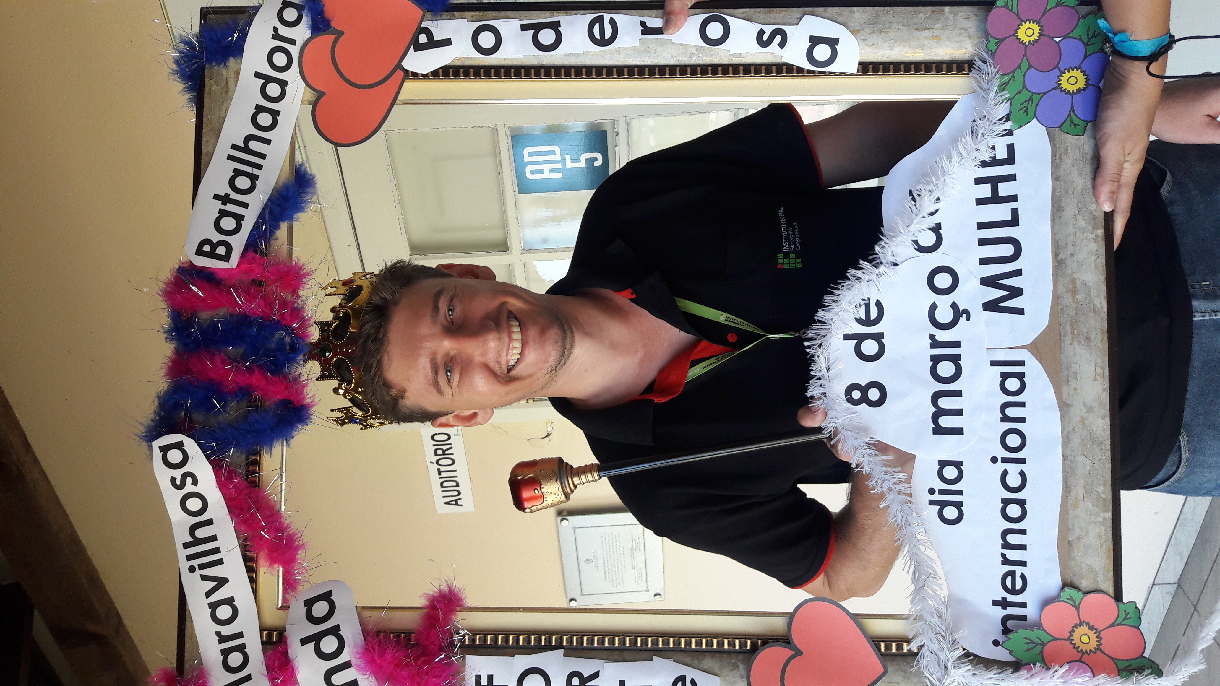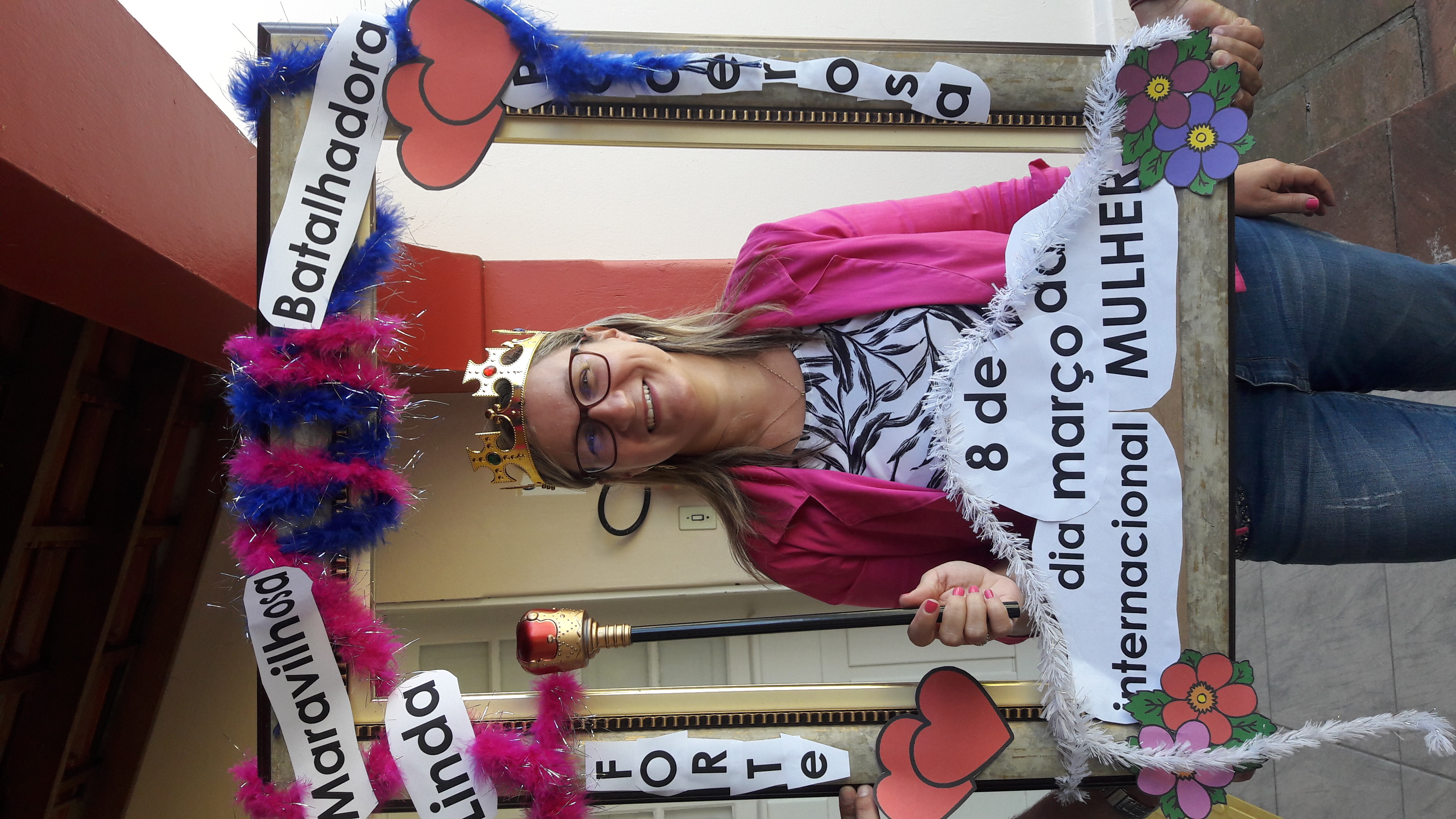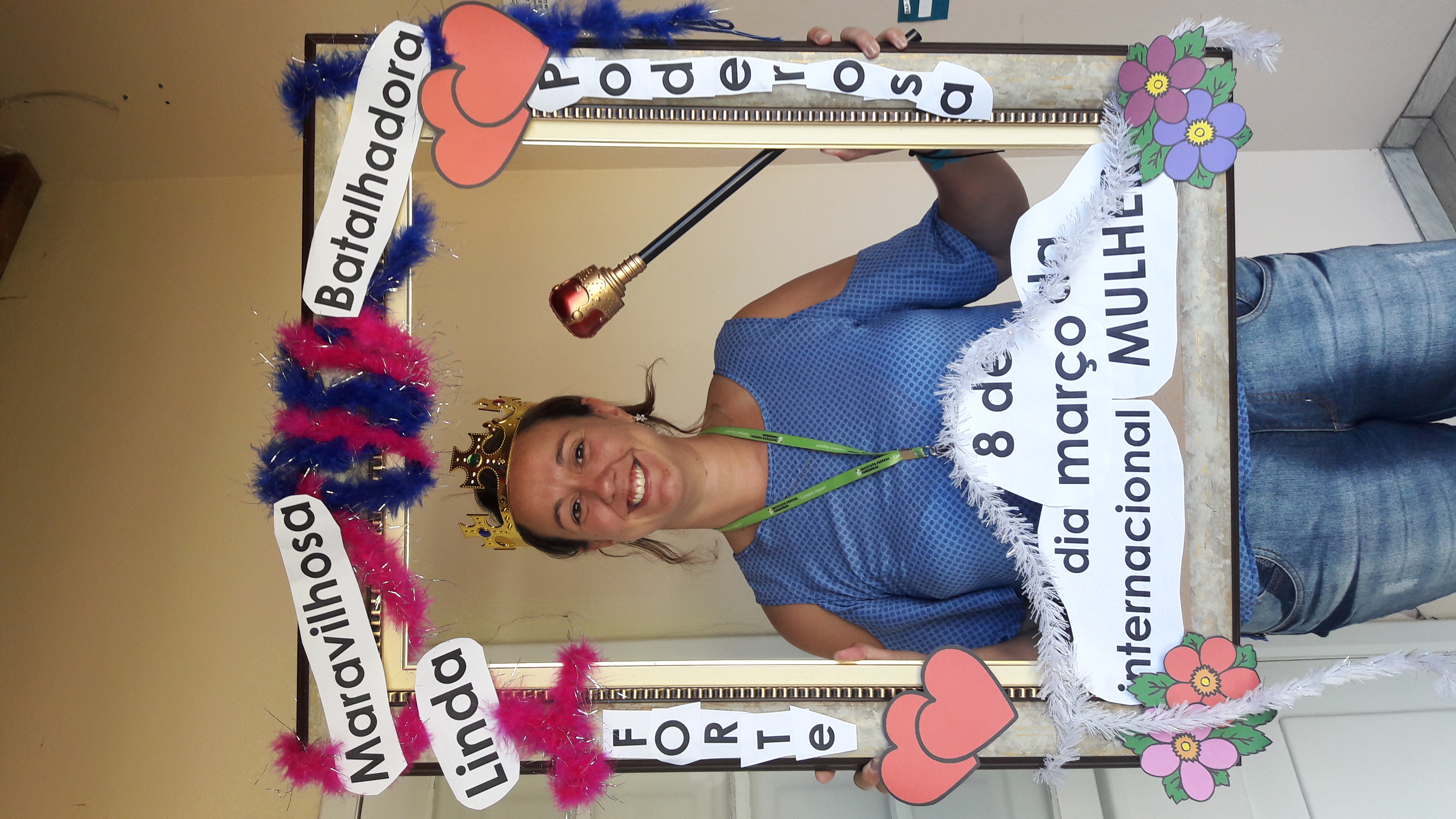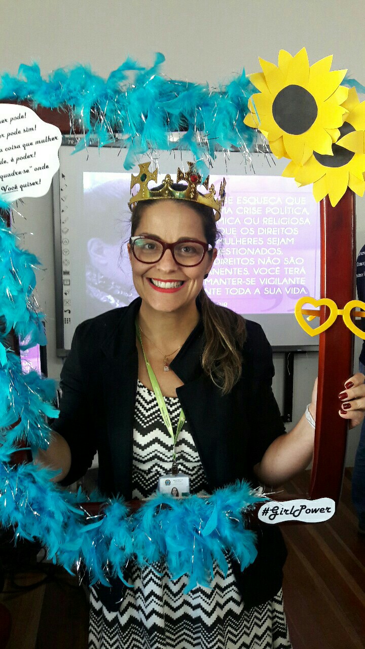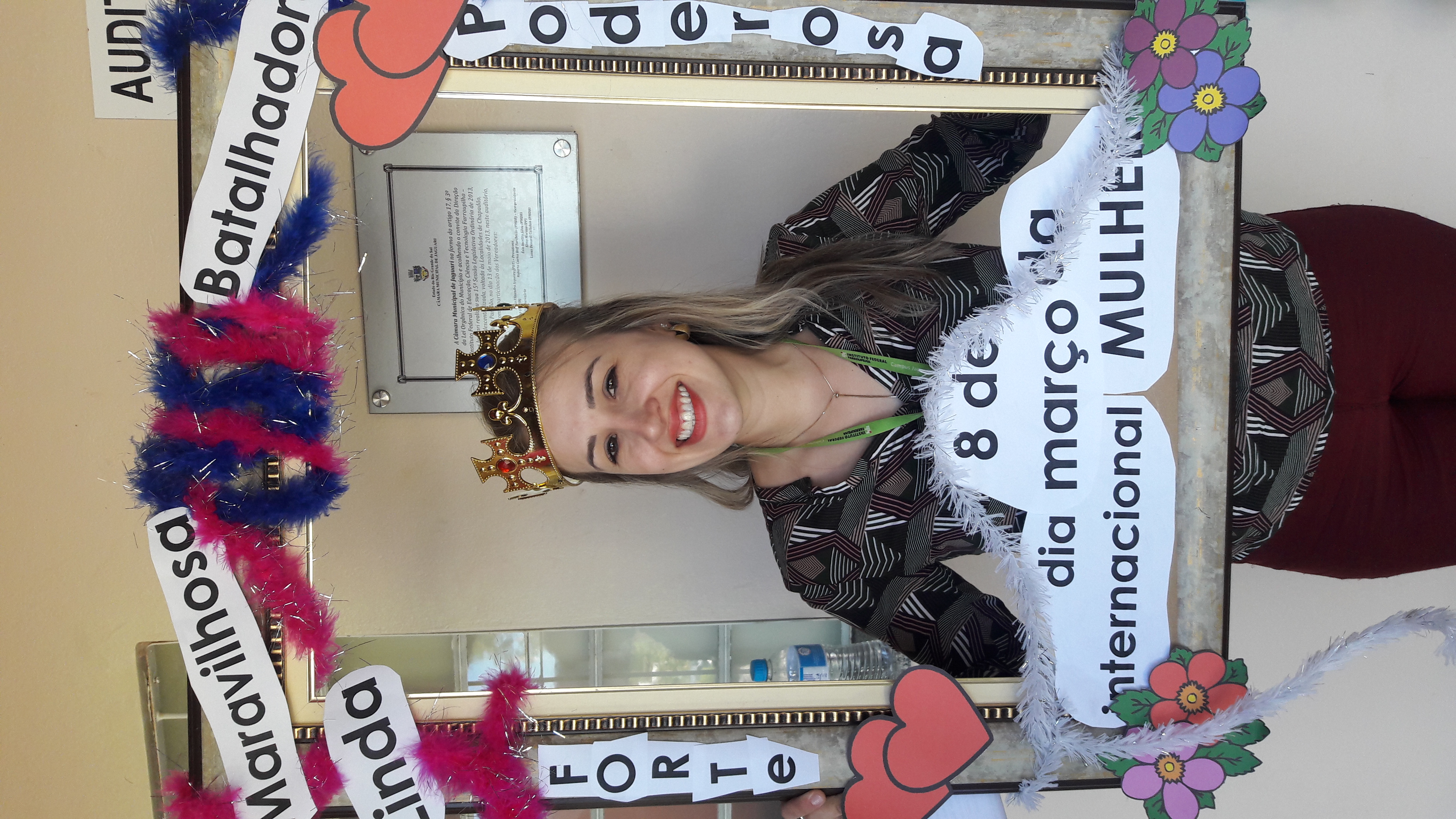 Dando seguimento às comemorações do dia da mulher, o IFFar Campus Jaguari realizou uma bela homenagem às servidoras no auditório. Contando com a presença da pró-reitora de Extensão, Raquel Lunardi, a servidora Priscila Turchiello falou a todas as mulheres, trazendo à tona a importância do empoderamento feminino. Foram distribuídos pequenos mimos pela Direção de Pesquisa, Extensão e Produção e, posteriormente, as servidoras Larissa Nunes Peixoto e Melissa Reghelin Gastaldo realizaram uma dinâmica, fazendo fotos das servidoras (e alguns servidores) com a chamada "moldura do empoderamento".