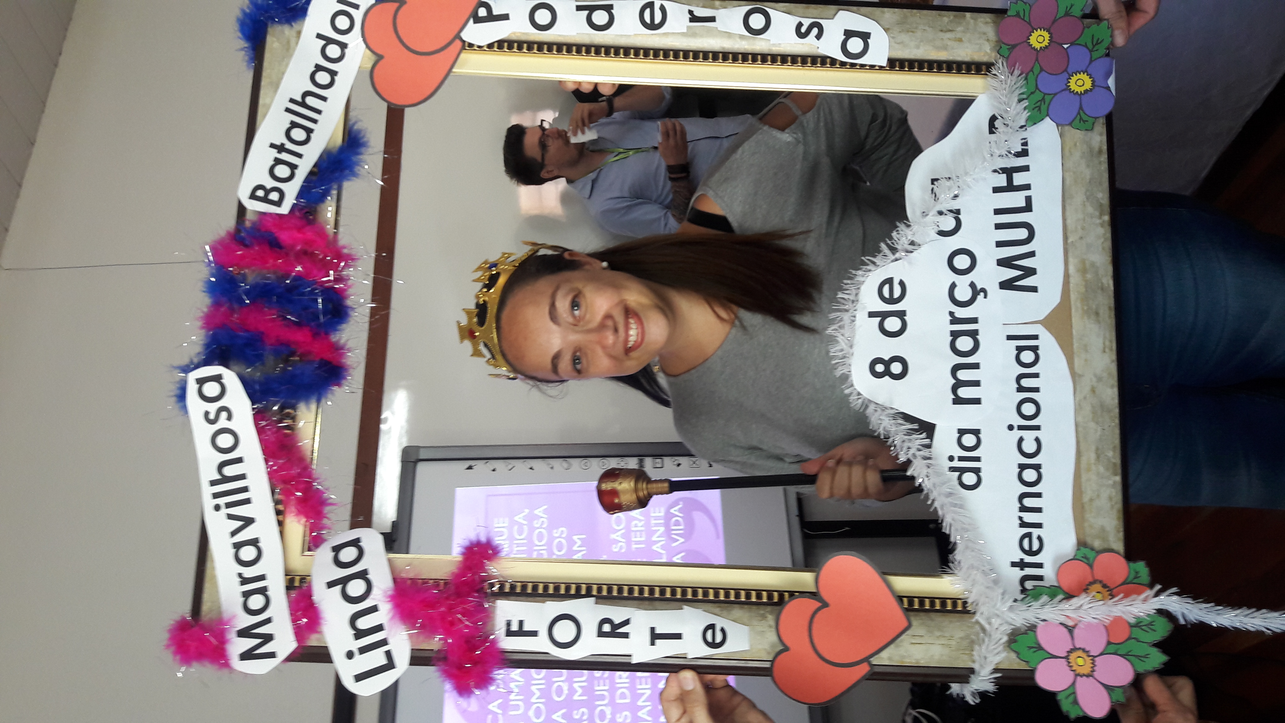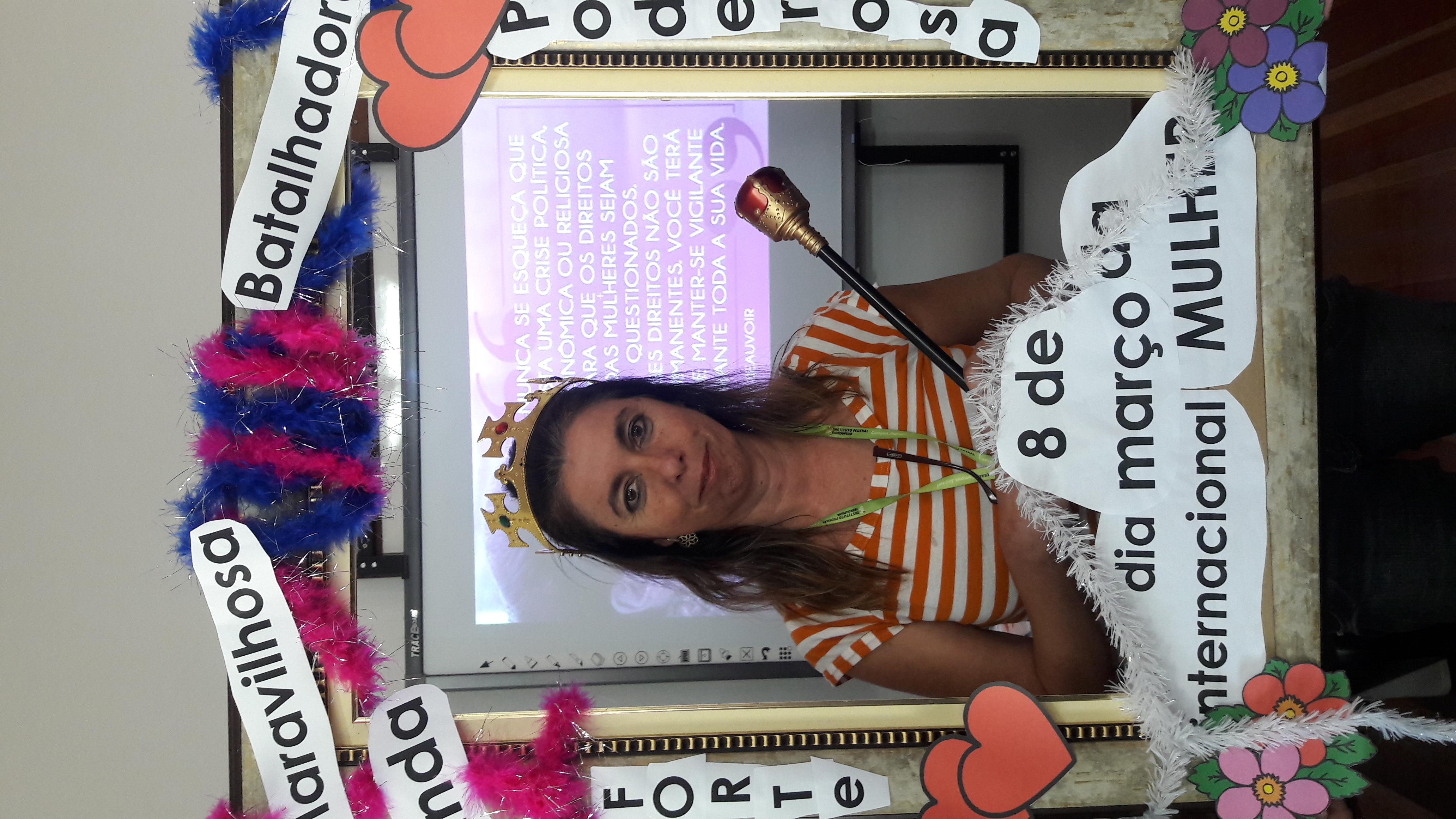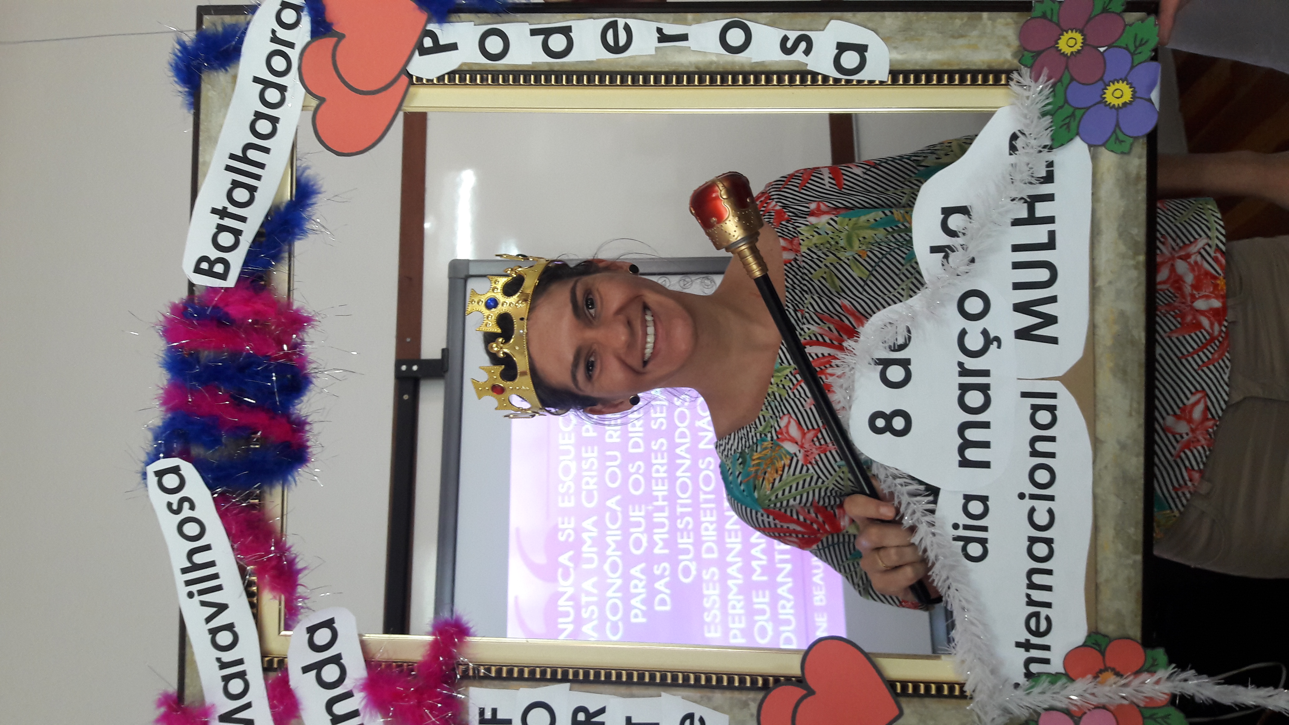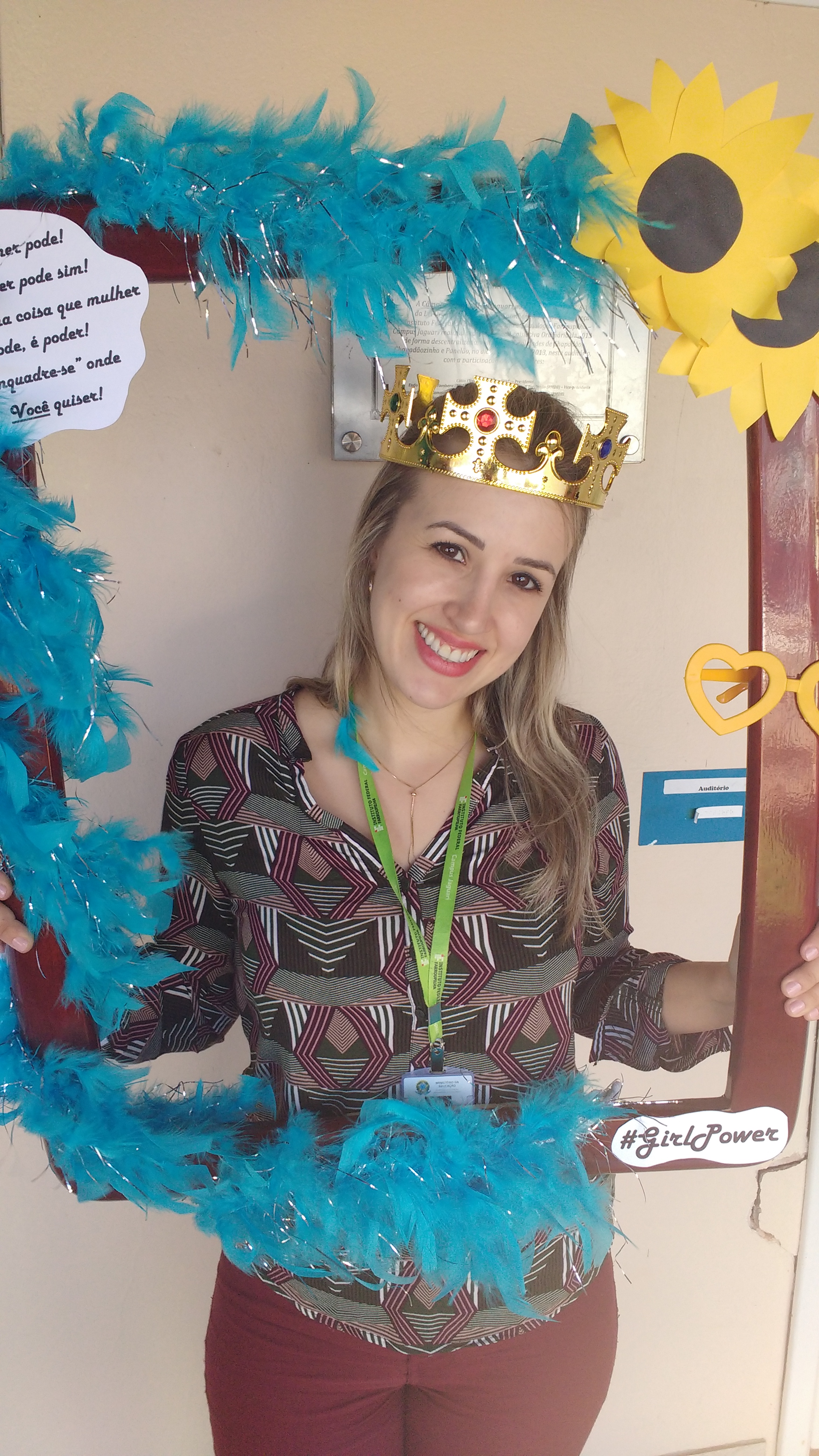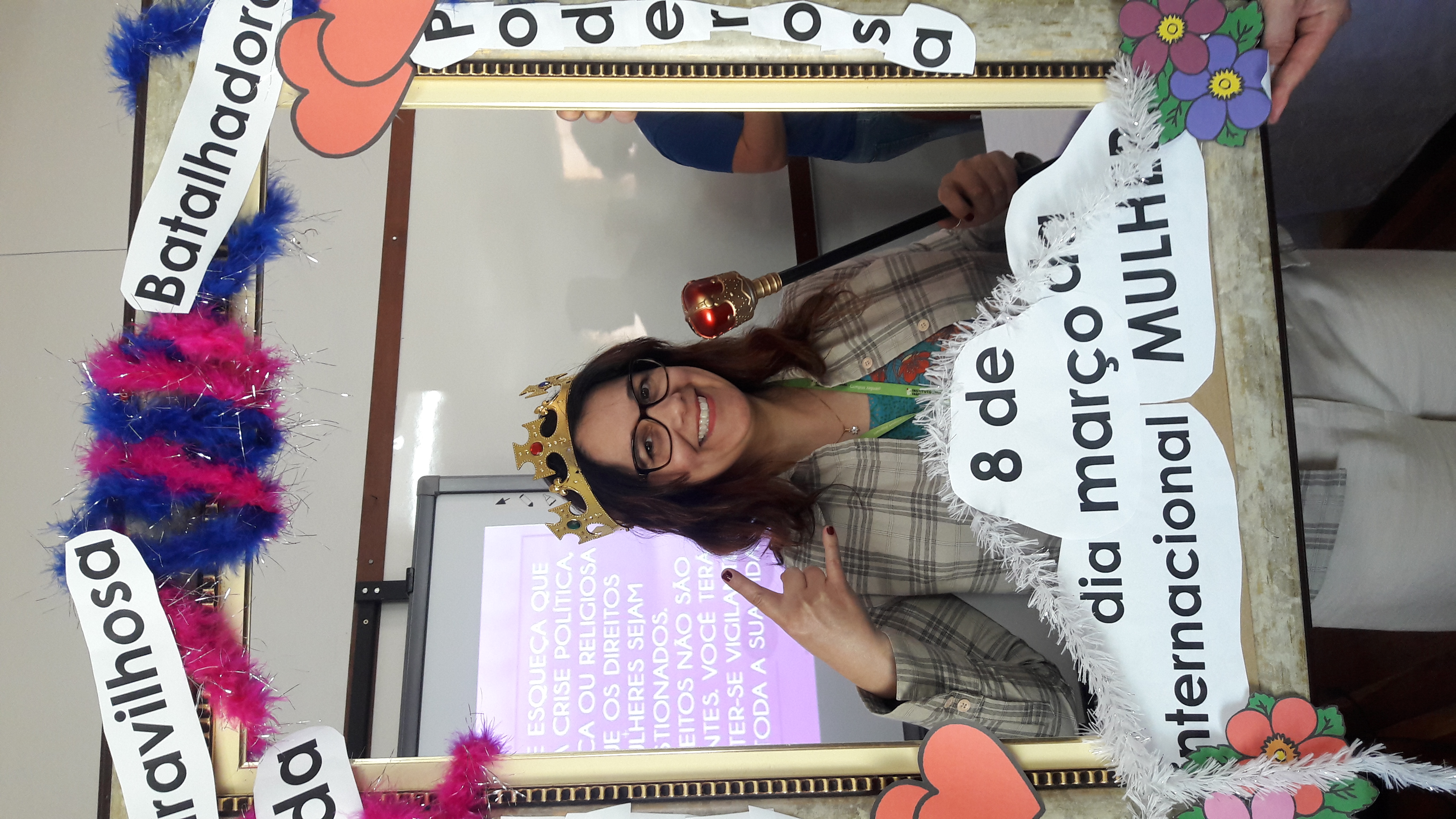 Dando seguimento às comemorações do dia da mulher, o IFFar Campus Jaguari realizou uma bela homenagem às servidoras no auditório. Contando com a presença da pró-reitora de Extensão, Raquel Lunardi, a servidora Priscila Turchiello falou a todas as mulheres, trazendo à tona a importância do empoderamento feminino. Foram distribuídos pequenos mimos pela Direção de Pesquisa, Extensão e Produção e, posteriormente, as servidoras Larissa Nunes Peixoto e Melissa Reghelin Gastaldo realizaram uma dinâmica, fazendo fotos das servidoras (e alguns servidores) com a chamada "moldura do empoderamento".