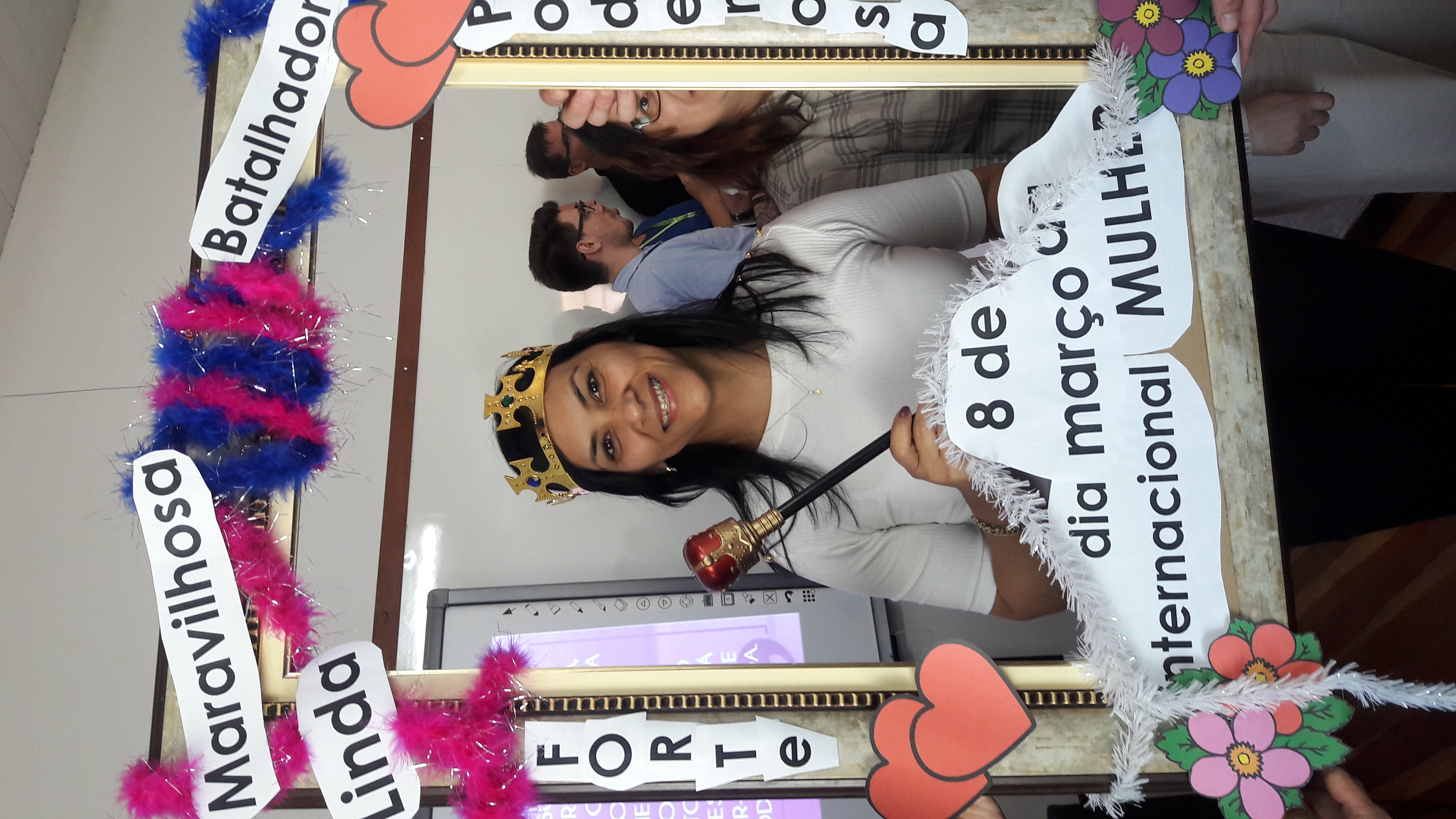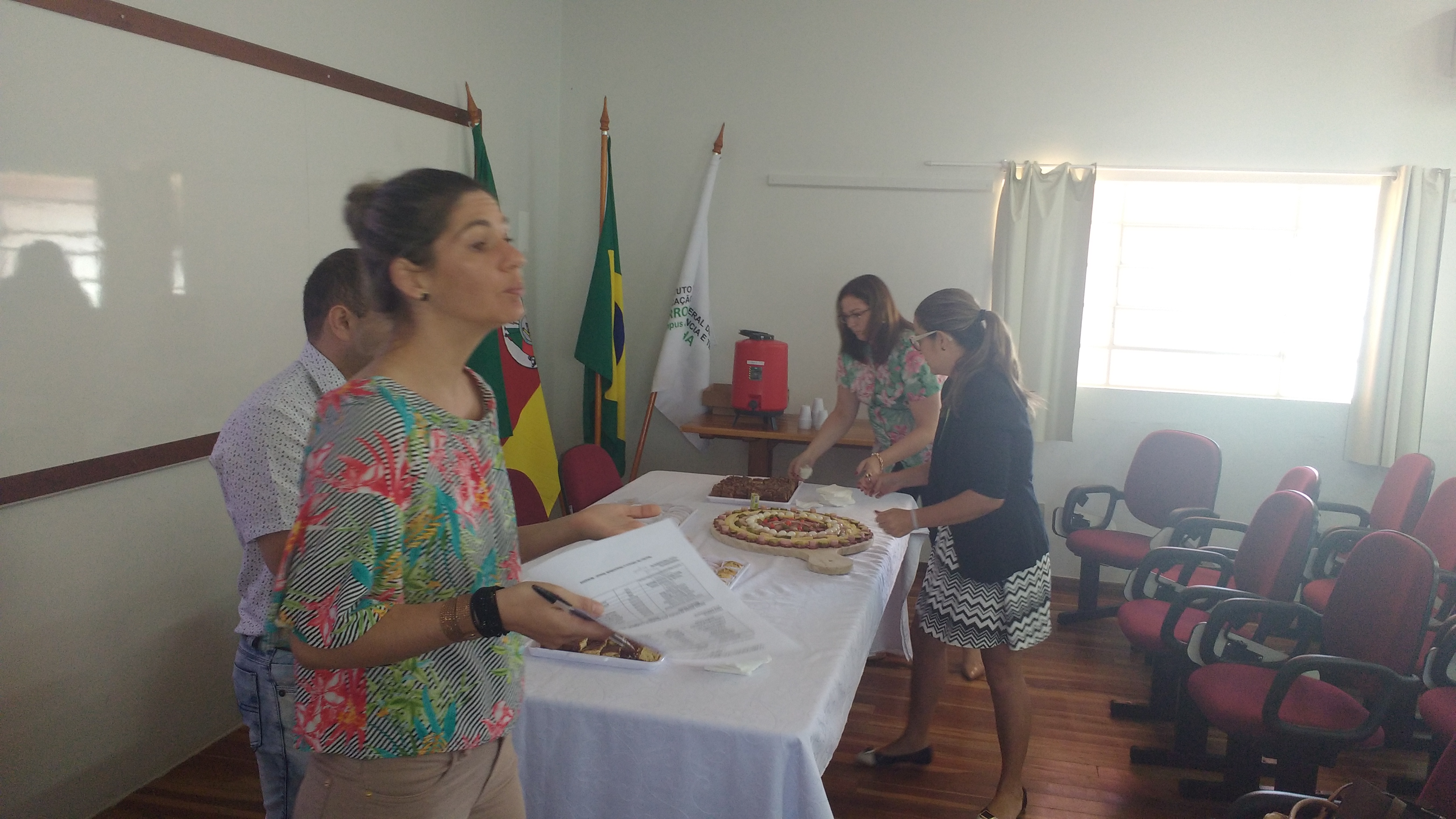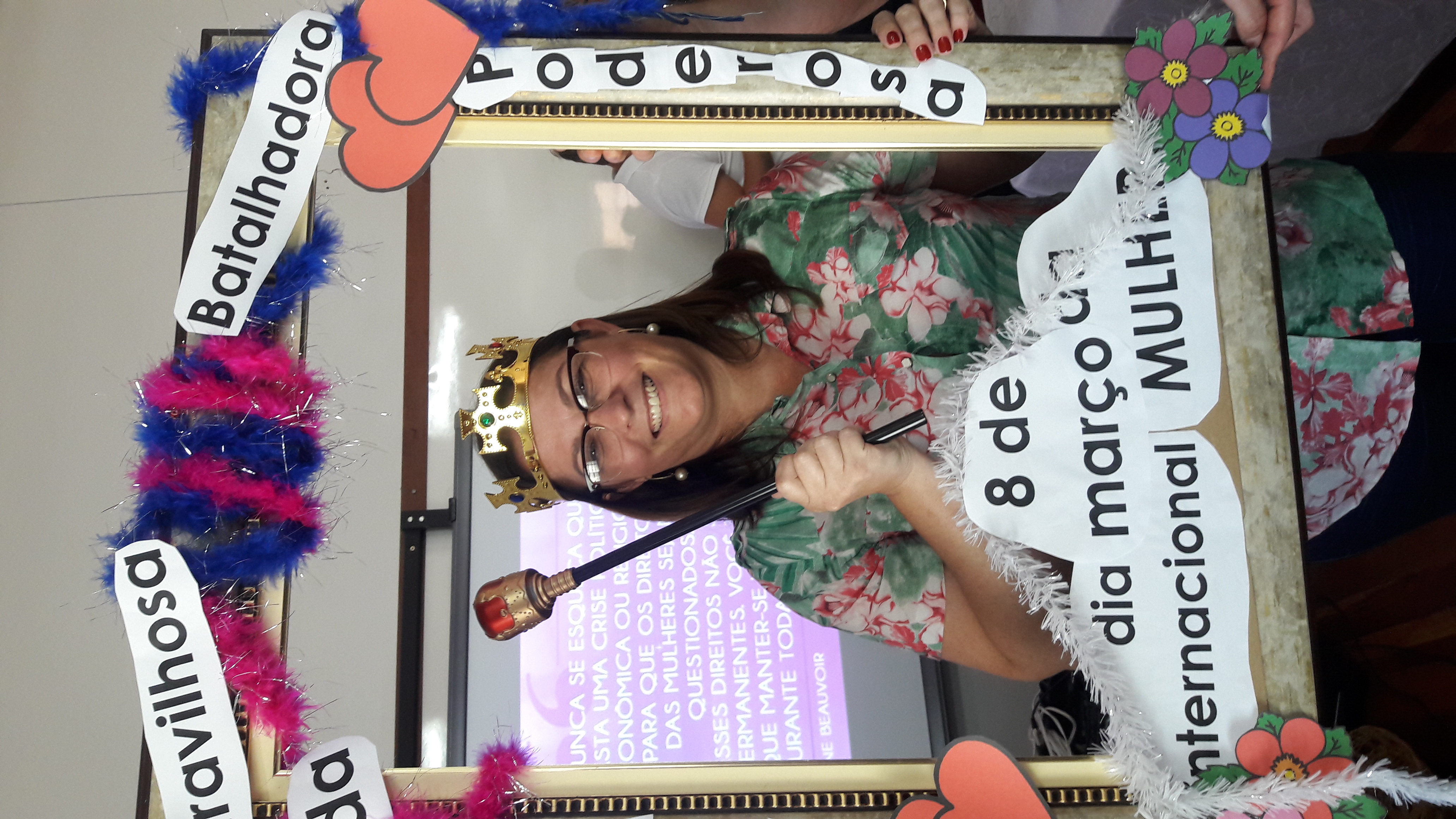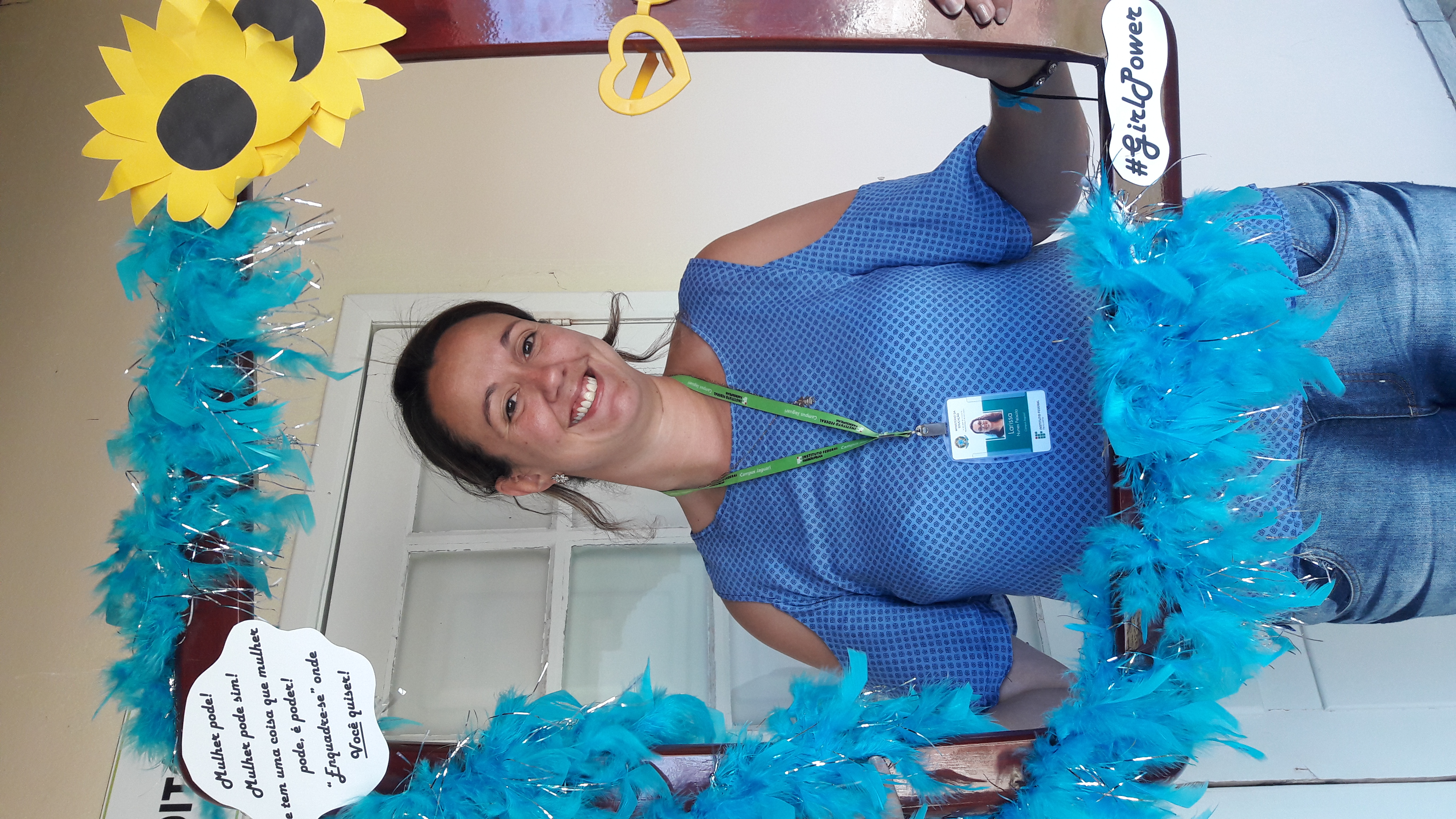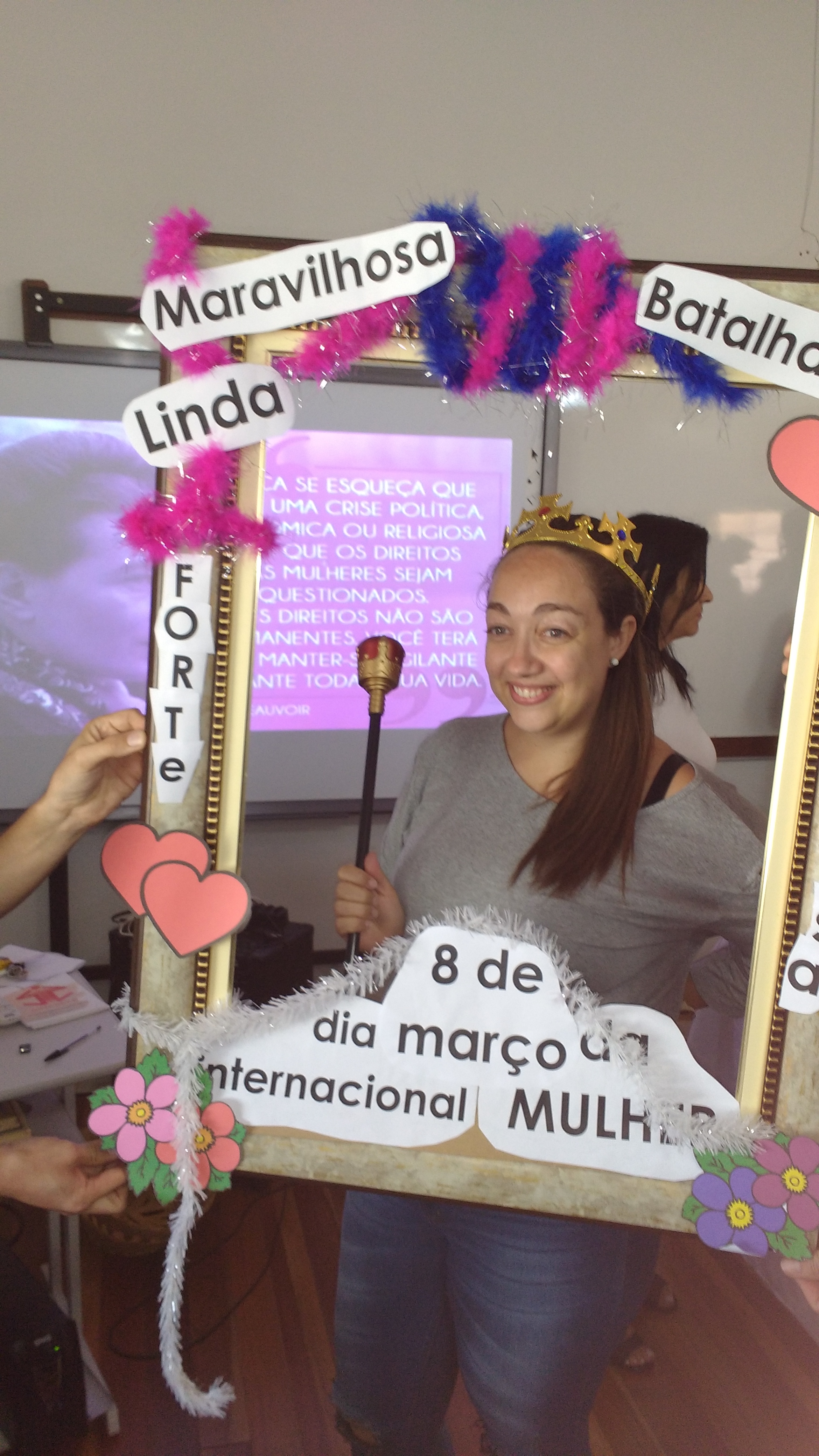 Dando seguimento às comemorações do dia da mulher, o IFFar Campus Jaguari realizou uma bela homenagem às servidoras no auditório. Contando com a presença da pró-reitora de Extensão, Raquel Lunardi, a servidora Priscila Turchiello falou a todas as mulheres, trazendo à tona a importância do empoderamento feminino. Foram distribuídos pequenos mimos pela Direção de Pesquisa, Extensão e Produção e, posteriormente, as servidoras Larissa Nunes Peixoto e Melissa Reghelin Gastaldo realizaram uma dinâmica, fazendo fotos das servidoras (e alguns servidores) com a chamada "moldura do empoderamento".