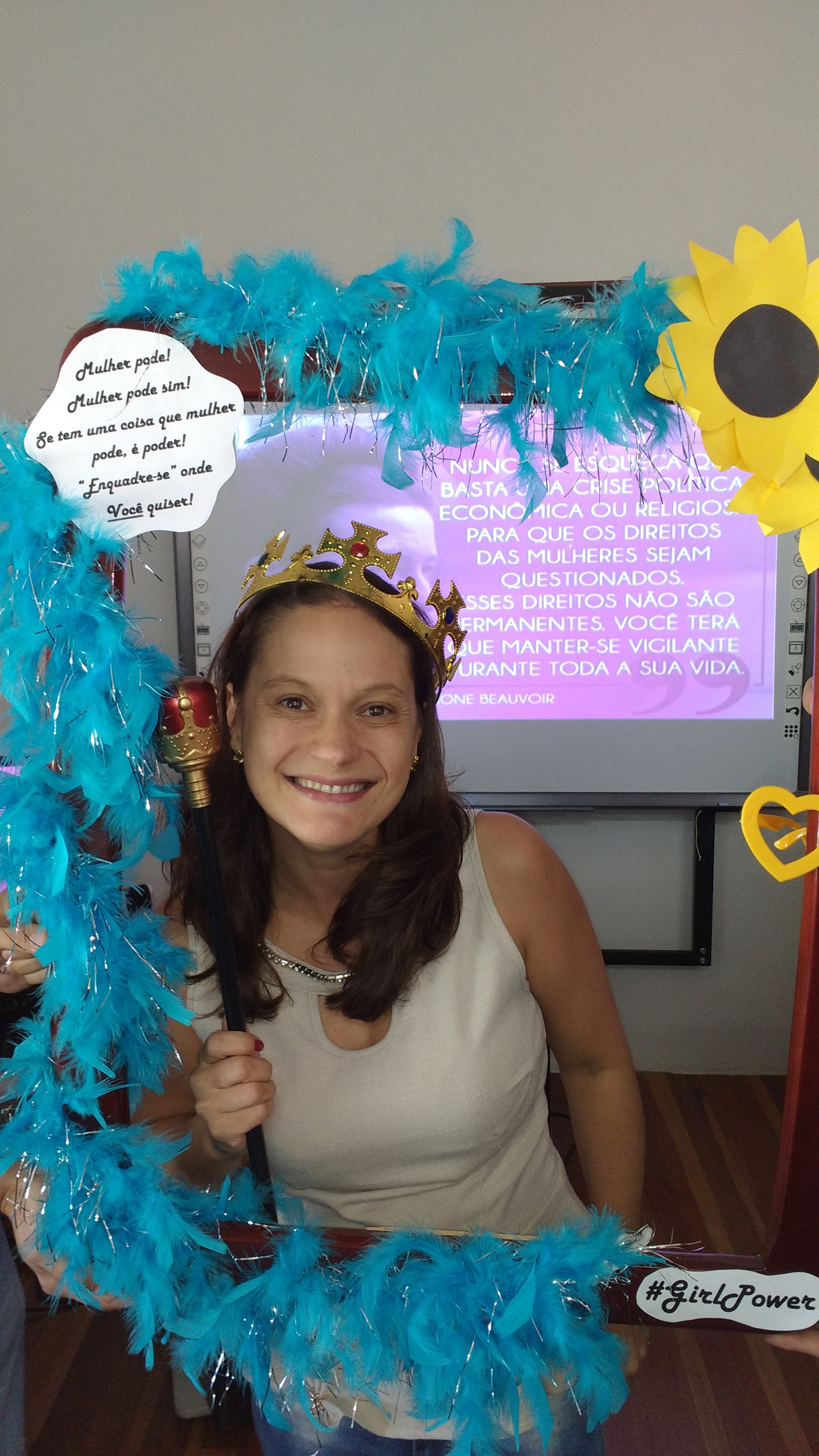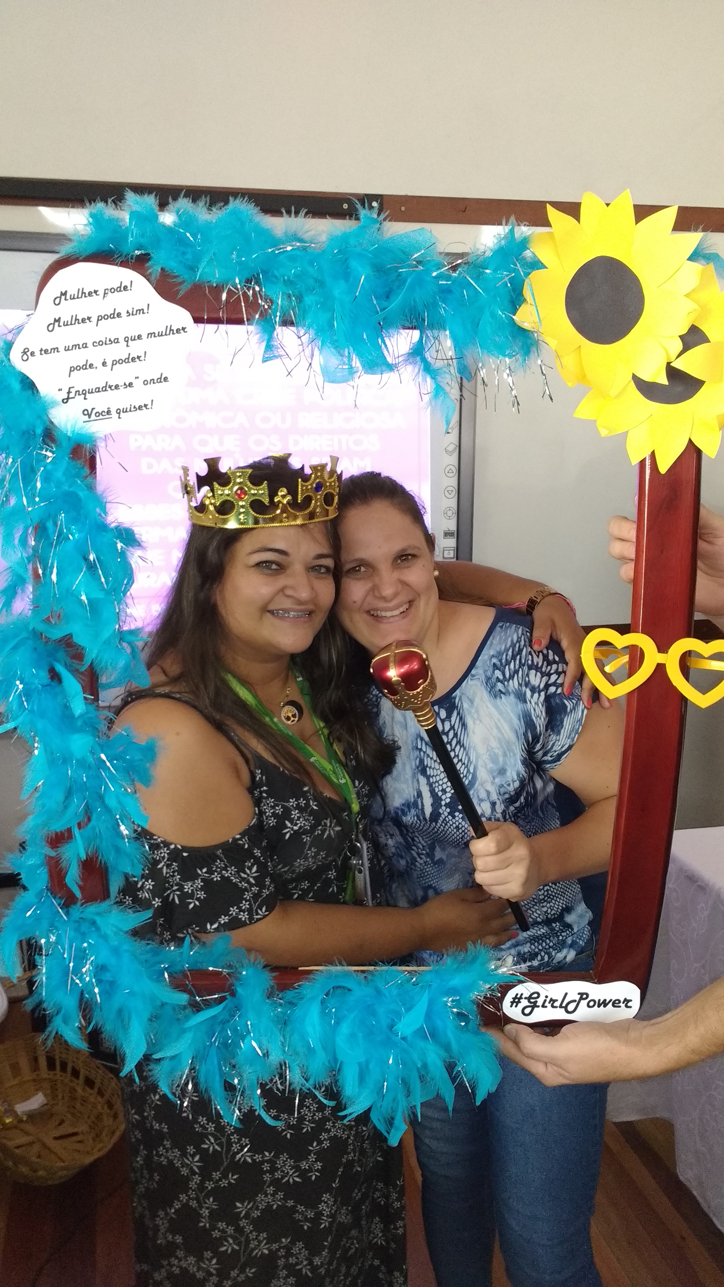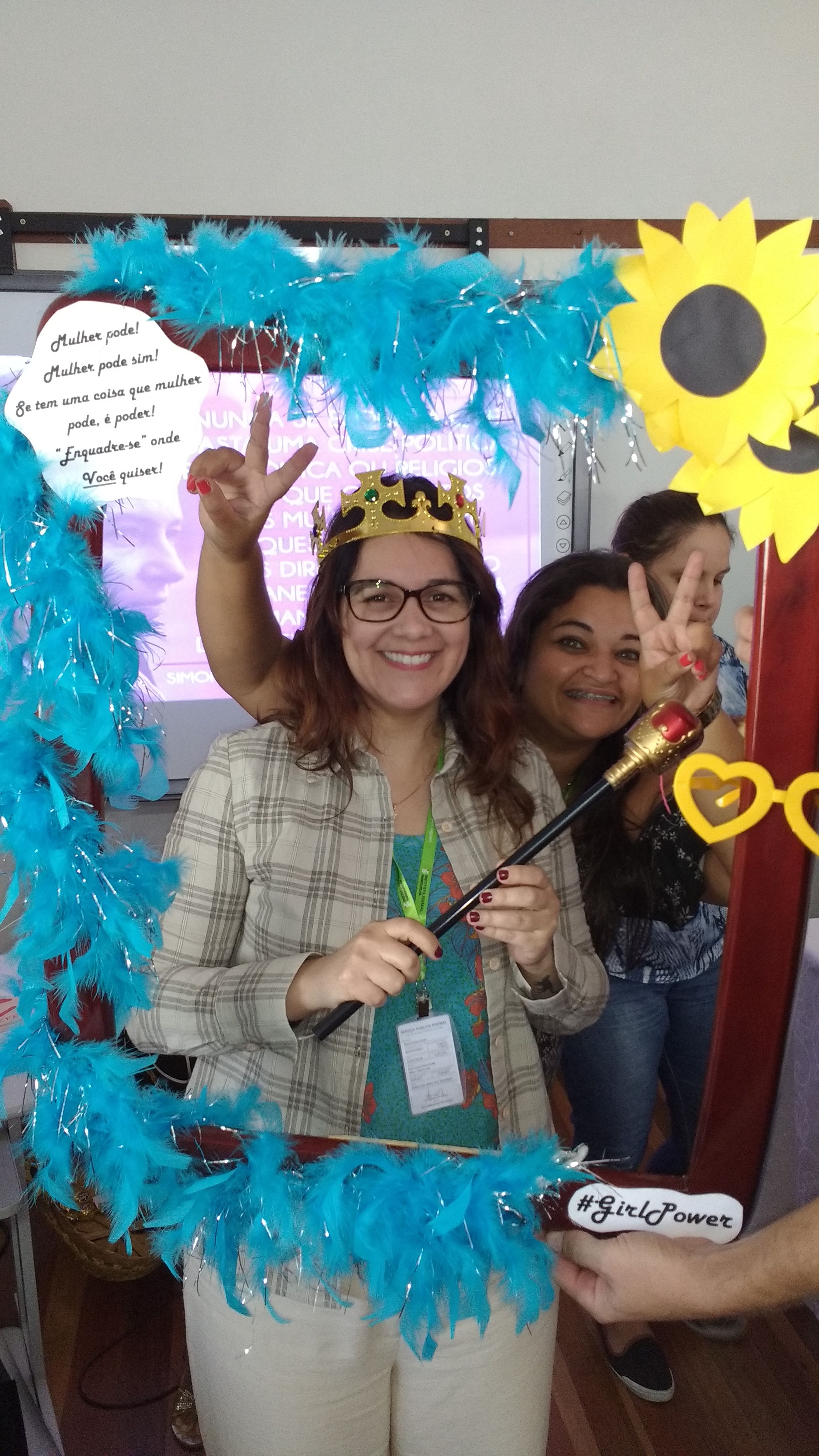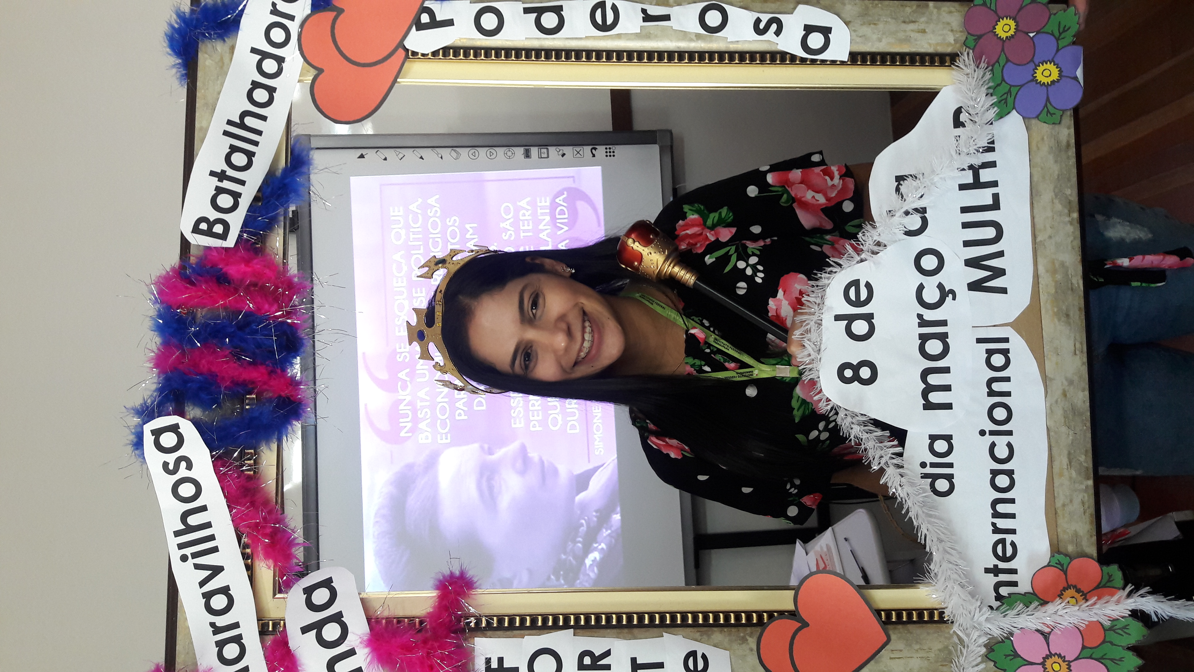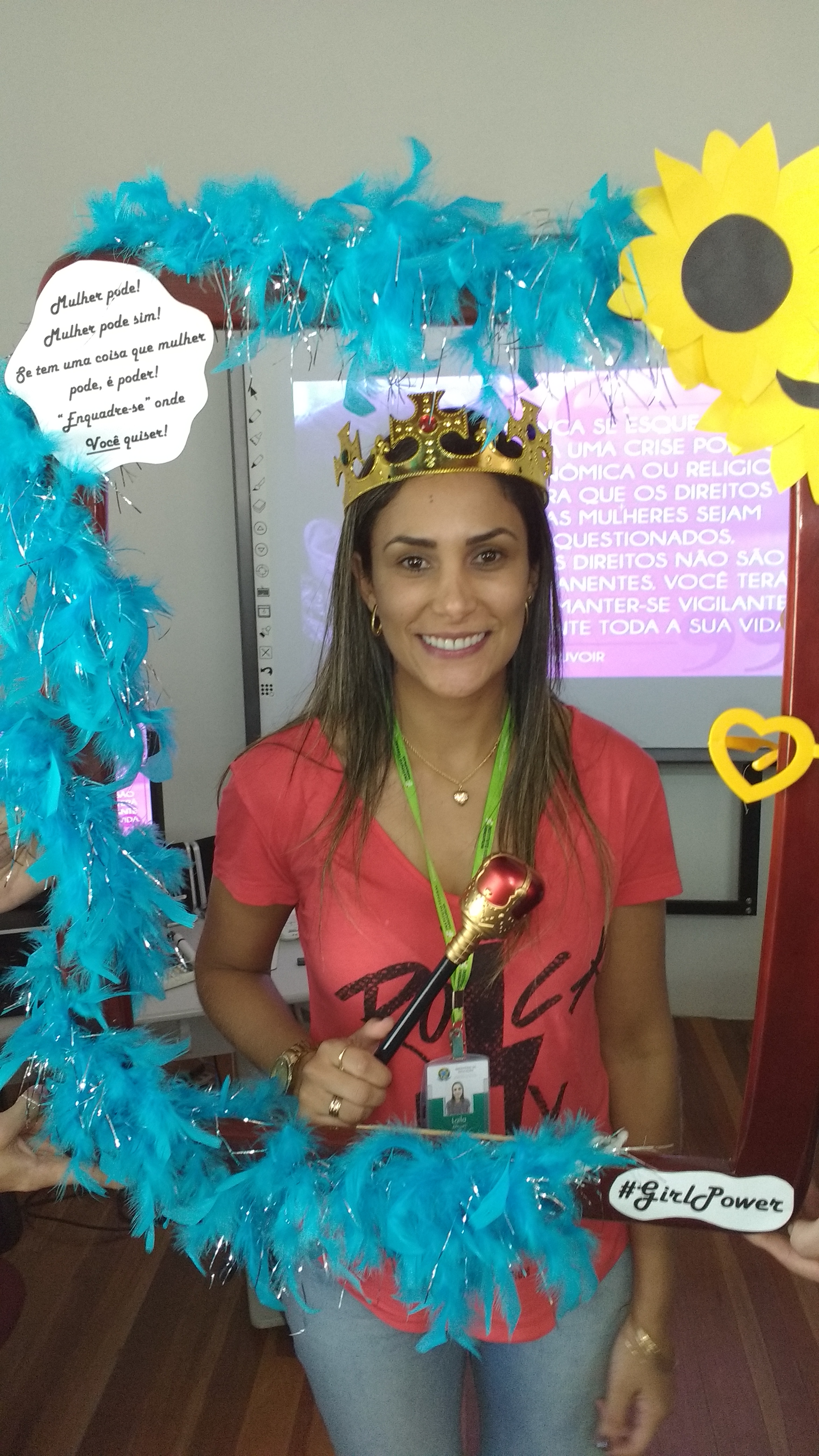 Dando seguimento às comemorações do dia da mulher, o IFFar Campus Jaguari realizou uma bela homenagem às servidoras no auditório. Contando com a presença da pró-reitora de Extensão, Raquel Lunardi, a servidora Priscila Turchiello falou a todas as mulheres, trazendo à tona a importância do empoderamento feminino. Foram distribuídos pequenos mimos pela Direção de Pesquisa, Extensão e Produção e, posteriormente, as servidoras Larissa Nunes Peixoto e Melissa Reghelin Gastaldo realizaram uma dinâmica, fazendo fotos das servidoras (e alguns servidores) com a chamada "moldura do empoderamento".