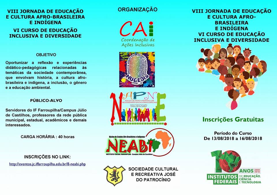 https://www.iffarroupilhaead.edu.br/noticias-jc/item/10195-est%C3%A3o-abertas-as-inscri%C3%A7%C3%B5es-para-a-viii-jornada-de-educa%C3%A7%C3%A3o-e-cultura-afro-brasileira-e-ind%C3%ADgena-vi-curso-de-educa%C3%A7%C3%A3o-inclusiva-e-diversidade-no-campus-j%C3%BAlio-de-castilhos#sigProId7a814d8d6e