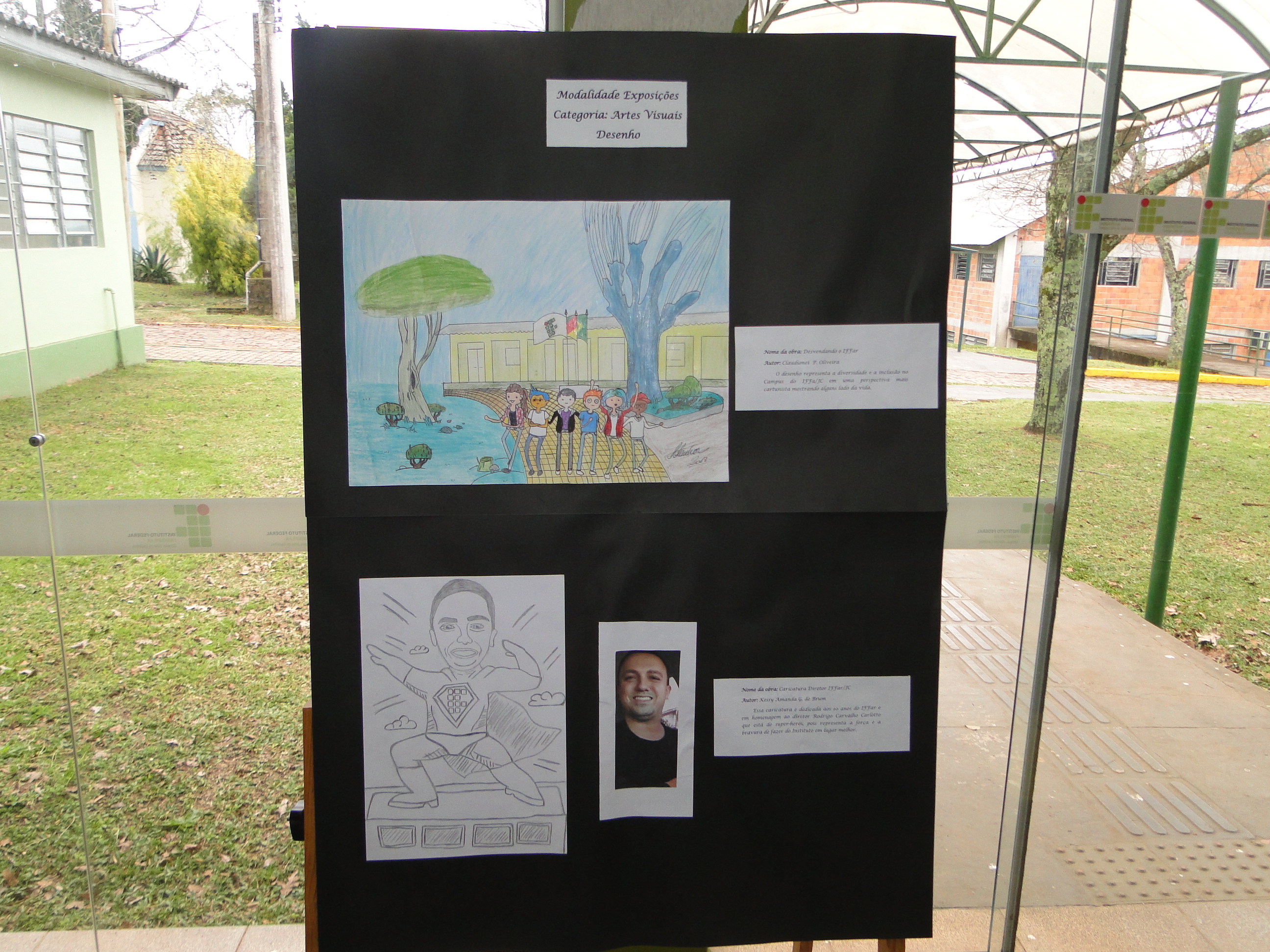 Os trabalhos escolhidos foram: obra “Batidas do coração” (dança ou movimento corporal/solo), de Livia Quevedo Machado; obra NTG Alma Farrapa (dança ou movimento/grupo), de Alexsandro Michelon Junior, Gabriel Gonçalves da Silva, Emili Floriano Silva, Geizieli Mergen Rohrs, Andrieli Pereira de Mello, Tainã Bertoldo Crauss, Claiton dos Reis Leal, Leonardo dos Pacheco,Lauren Rodrigues Telles; obra: Caricatura Diretor do IFFar/JC (artes visuais/desenho), de Kessy Amanda G. de Brum; obra: “Desenhando o Iffar” (artes visuais/desenho), de Rogemar da Rosa Baltezam e a obraa “Mescla entre Betowen e os clássicos rock 80” (música/instrumental/vocal), de Luciana Rodrigues Vieira e Rogemar da Rosa Baltezam.
