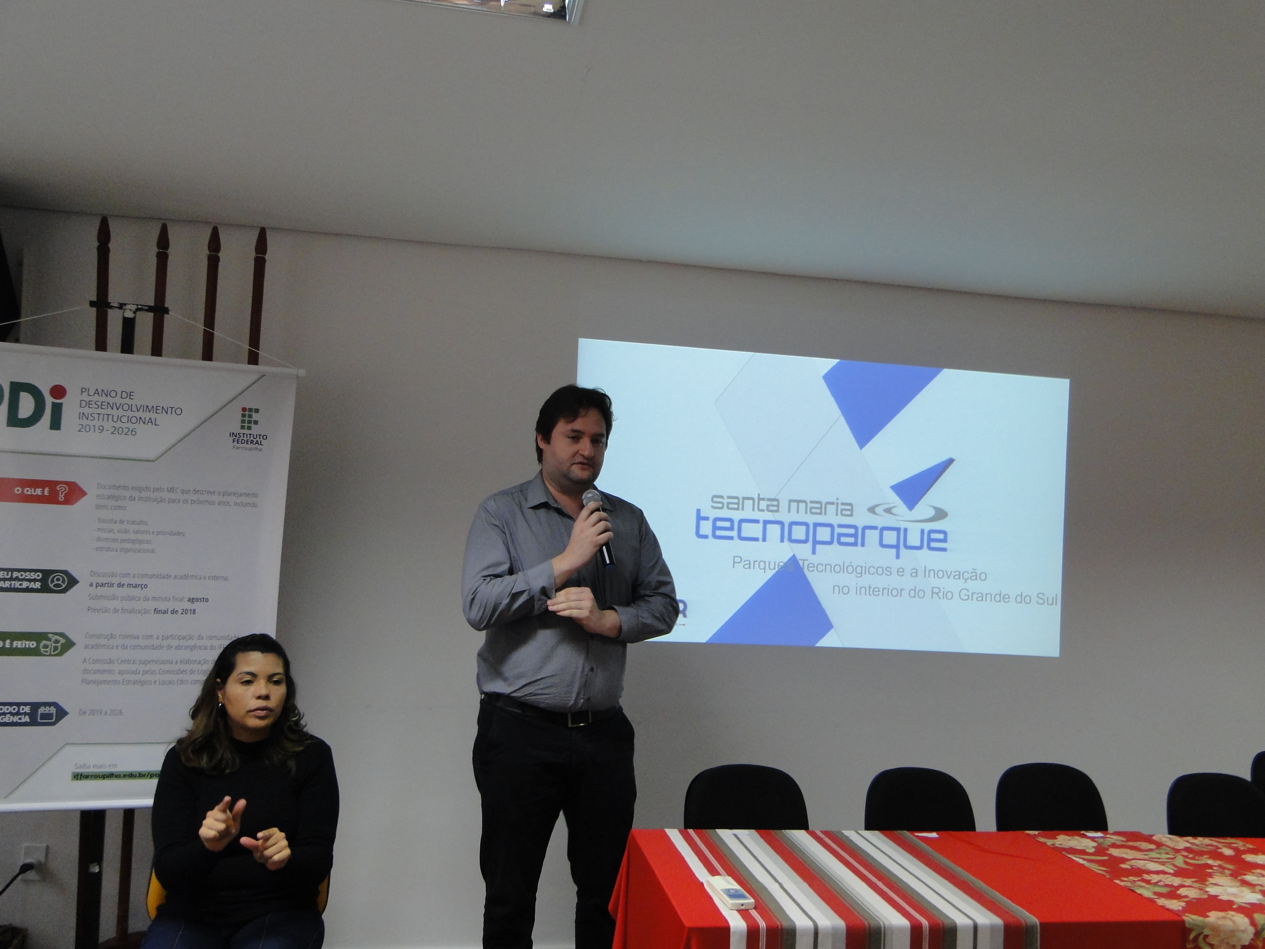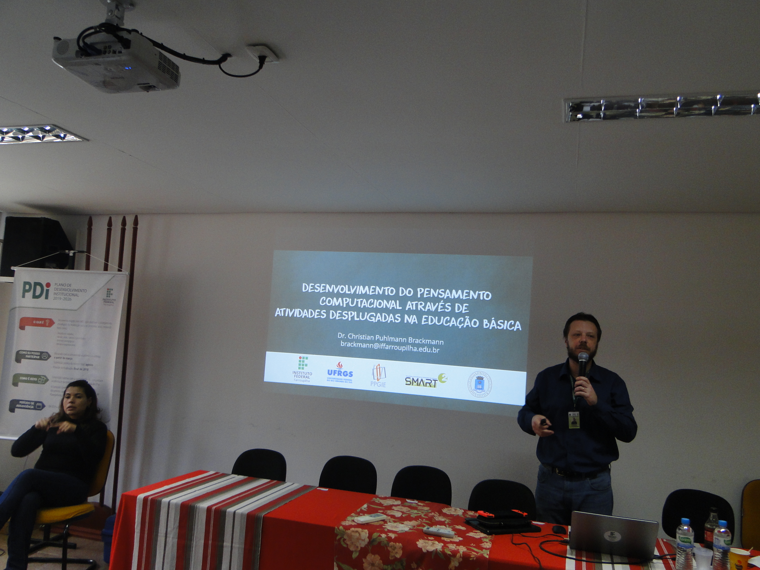 De manhã, os estudantes participaram das palestras "Parques tecnológicos e a inovação no interior do Rio Grande do Sul", com o diretor do Tecnoparque de Santa Maria, Tiago Martini Sanchotene e "Pensamento Computacional na Educação Básica", ministrada pelo professor do IFFar, Christian Brackman