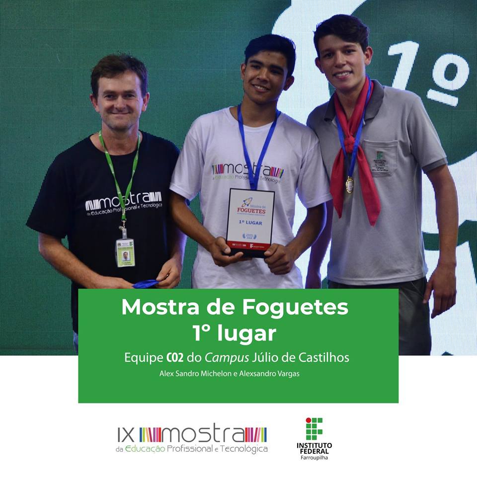 O Campus Júlio de Castilhos participou com uma delegação de 41 estudantes e 8 servidores. Emili Floriano Silva, recebeu o terceiro lugar na Categoria Extensão, com o trabalho "Invernada Artística e Cultural NTG Alma Farrapa". Na Mostra de Foguetes, a Equipe CO2, integrada pelos estudantes Alex Sandro Michelon e Alexsandro Vargas foram premiados com o primeiro lugar.