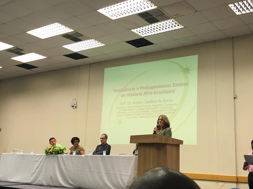 O professor Dr. Aristeu Castilhos da Rocha, coordenador do NEABI - Núcleo de Estudos Afro Brasileiros e Indígenas, do Campus Júlio de Castilhos realizou o Minicurso: "Resistência e Protagonismo: Ensino de História Afro-brasileira" atividade alusiva a Semana Nacional da Consciência Negra, 2018 da Universidade de Passo Fundo/UPF, Passo Fundo, RS .