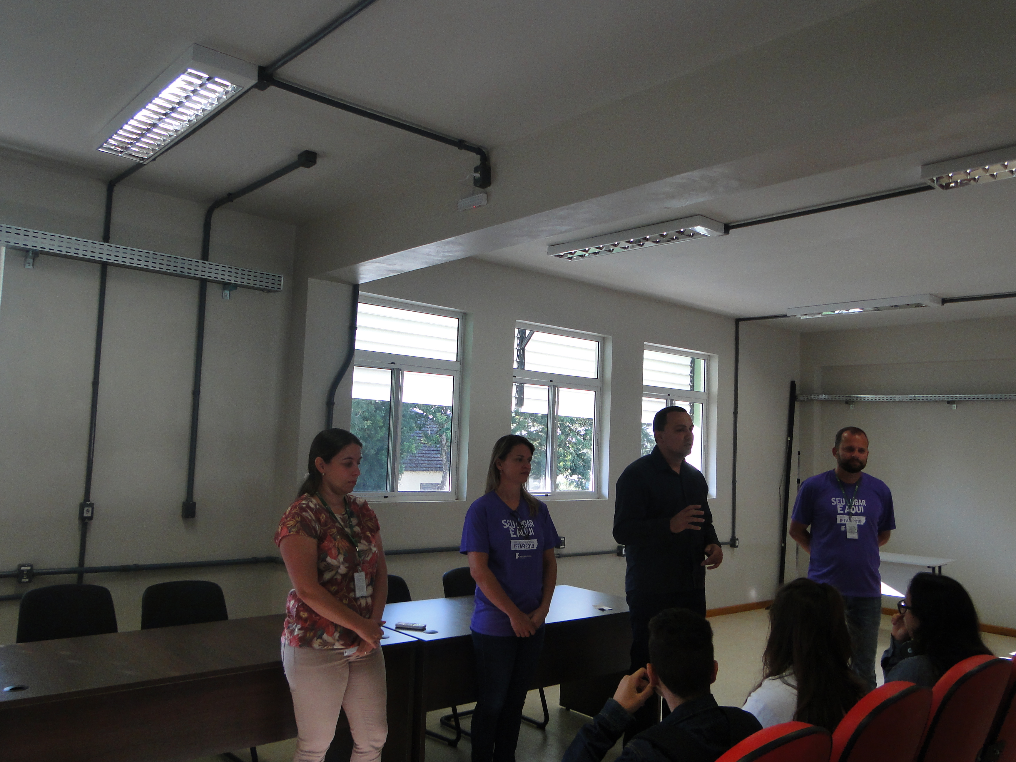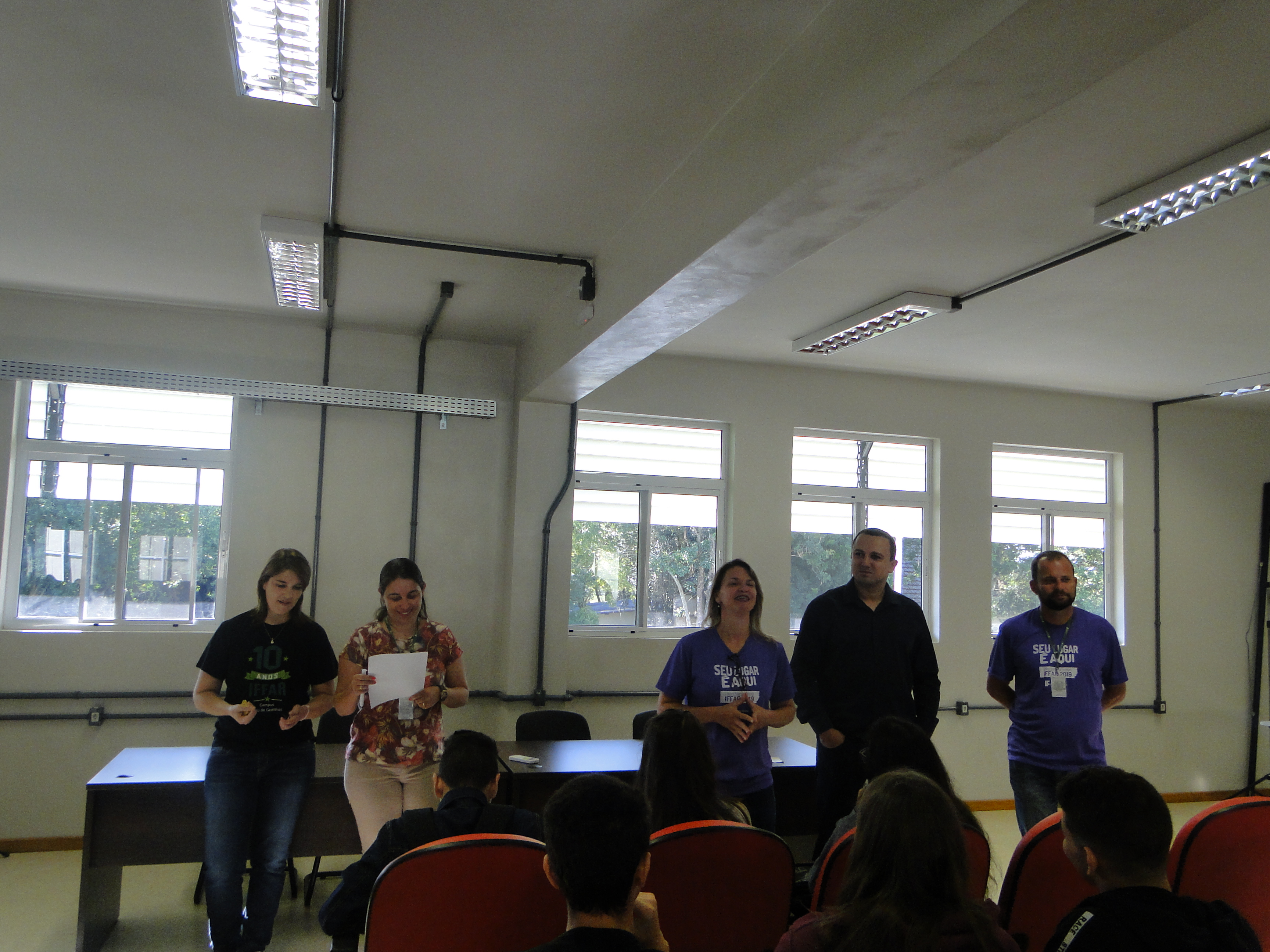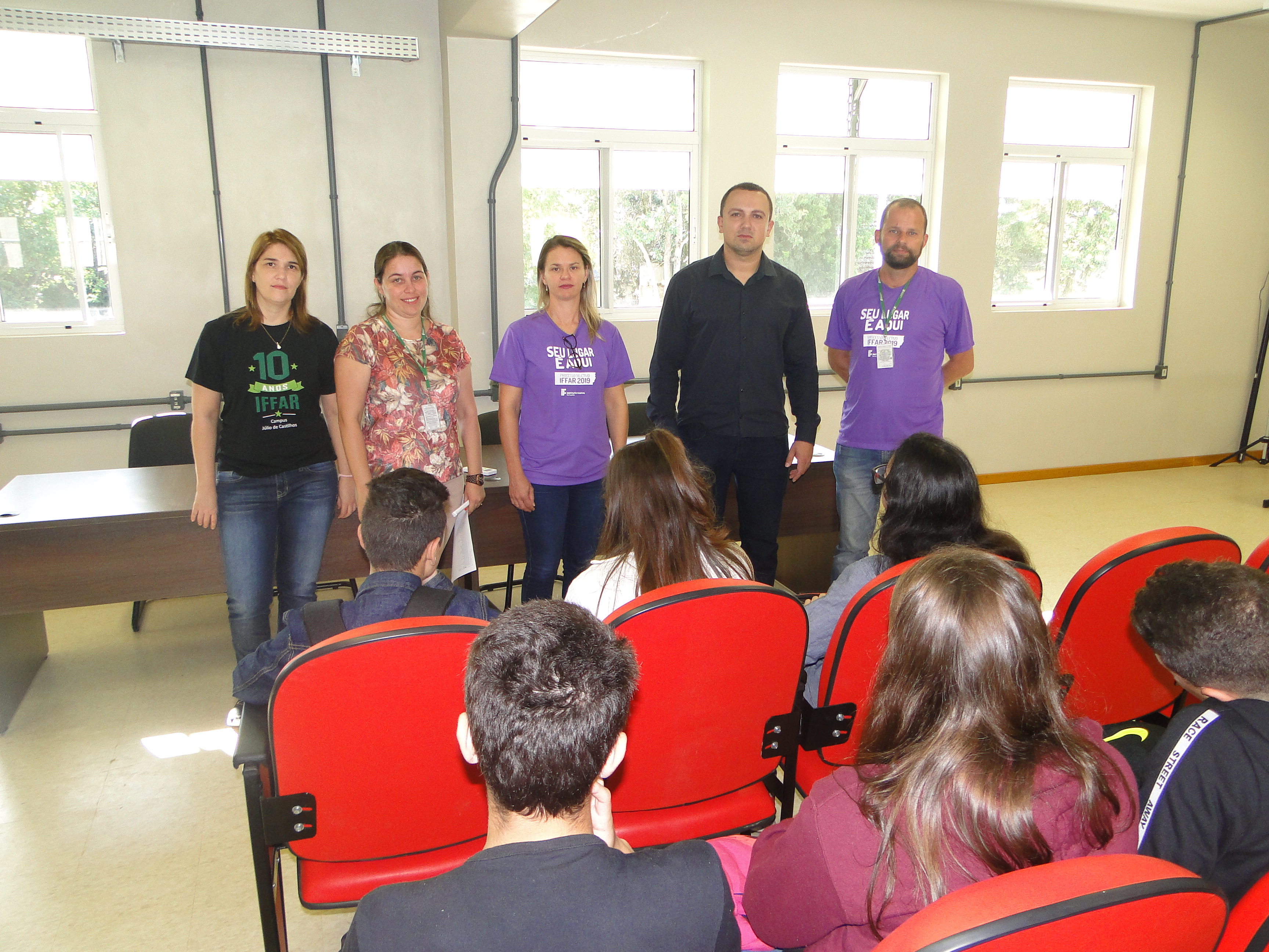 Os calouros dos cursos integrados em Agropecuária e Informática foram recebidos pelas respectivas coordenações na quinta-feira (14), conheceram os setores e laboratórios do Campus. Após foram rececepcionados pelos diretores no Anfiteatro do Prédio Administrativo. Durante o intervalo  a programação ficou por conta da CAE, que serviu o lanche no Pátio de Convivência e do NTG Alma Farrapa que fez sua primeira apresentação no ano.