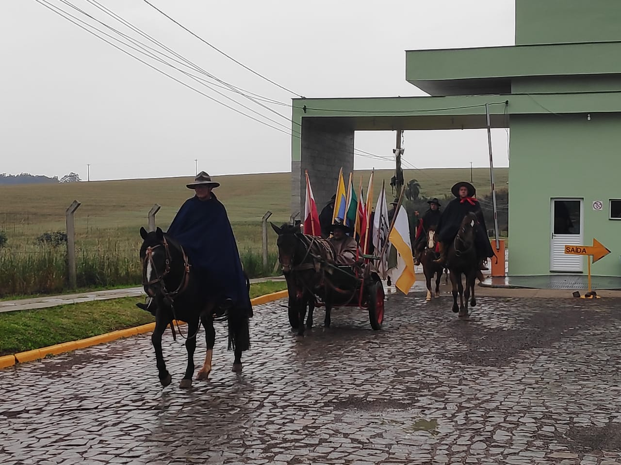 NTG Alma Farrapa recebe os cavalarianos que conduzem a chama crioula