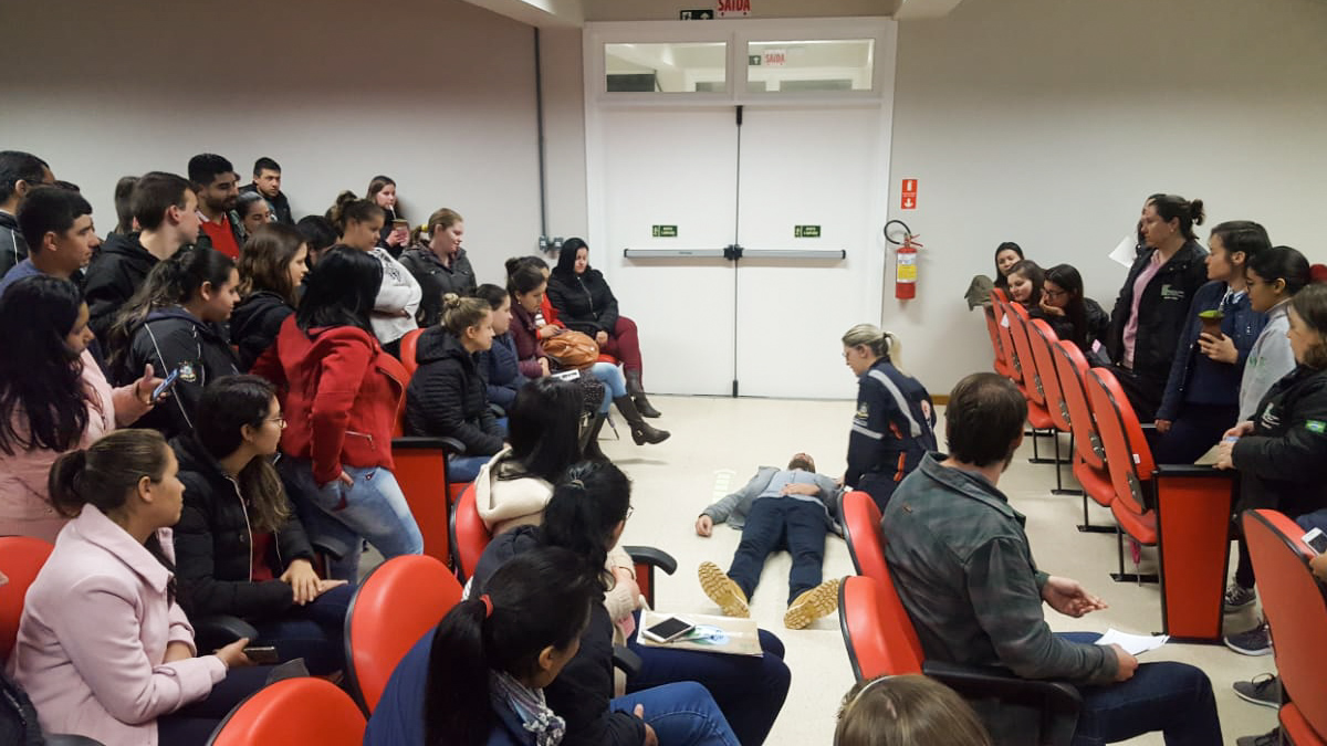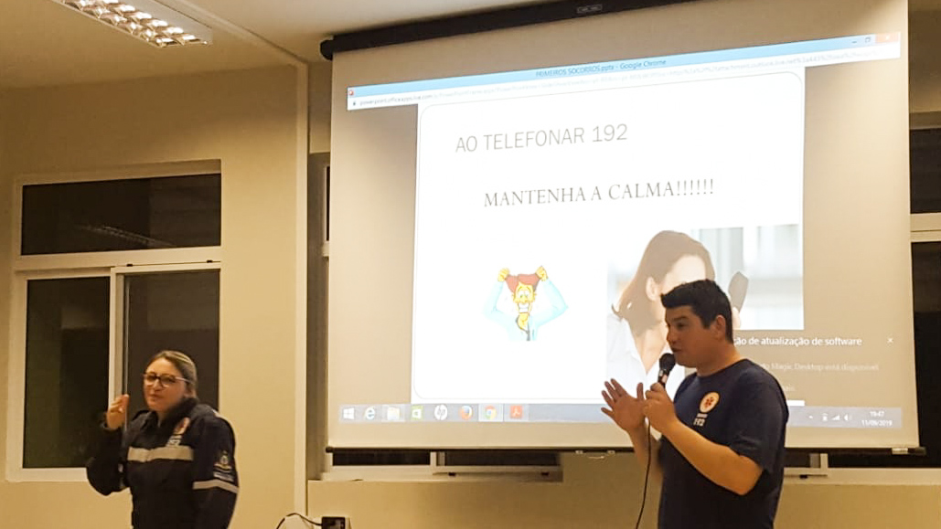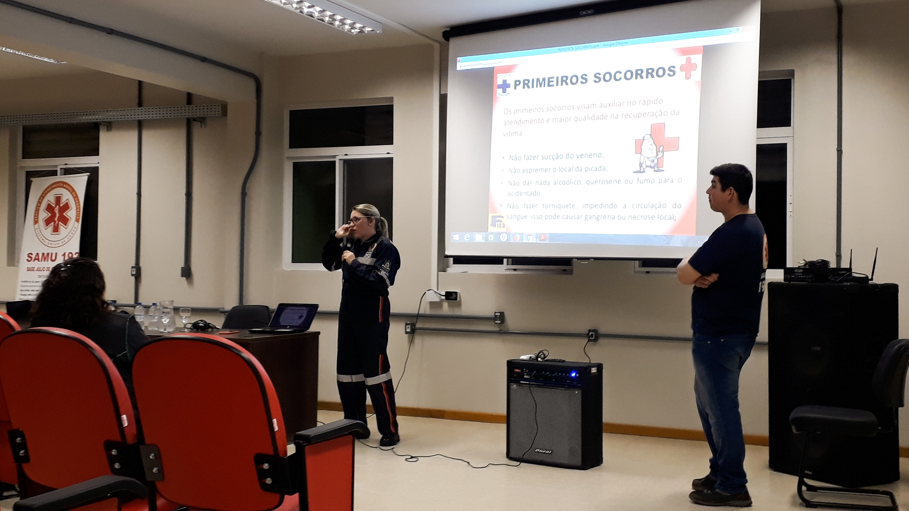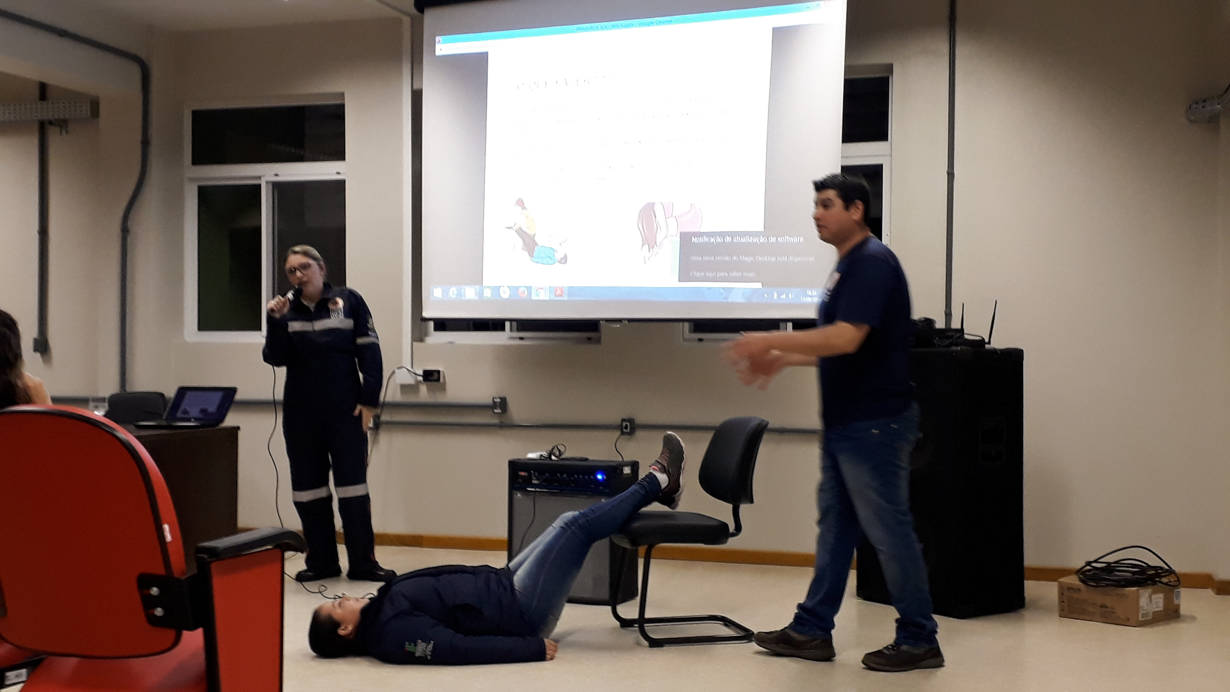 Com o objetivo de socializar condutas em primeiros socorros, os profissionais explanaram sobre diversas situações que envolvem o atendimento imediato para salvar vidas, como reanimação cardiopulmonar, manobras de desengasgo e situações de desmaio, hemorragias, imobilização em susteitas de fraturas, entre outras.