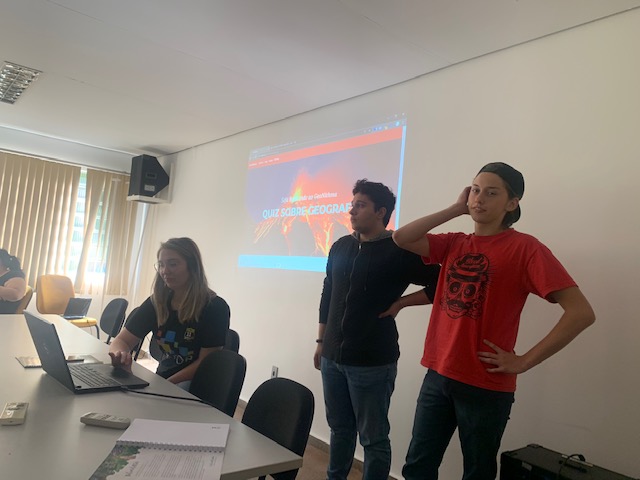 A PPI desse ano consistiu em elaborar um aplicativo do tipo “jogo de perguntas e respostas” (QUIZ) que diga respeito a alguns conhecimentos e conceitos geográficos do Brasil e do mundo. Assim, articulando o conhecimento das disciplinas do curso, como um todo, e das disciplinas envolvidas no projeto, em particular, de modo a incentivar a pesquisa como princípio educativo.