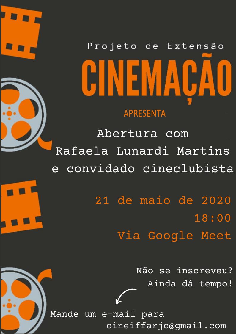 Mais informações podem ser obtidas através do email: Este endereço de email está sendo protegido de spambots. Você precisa do JavaScript ativado para vê-lo. e nas redes sociais: www.facebook.com/cinemacao.iffarjc e @cine.iffarjc