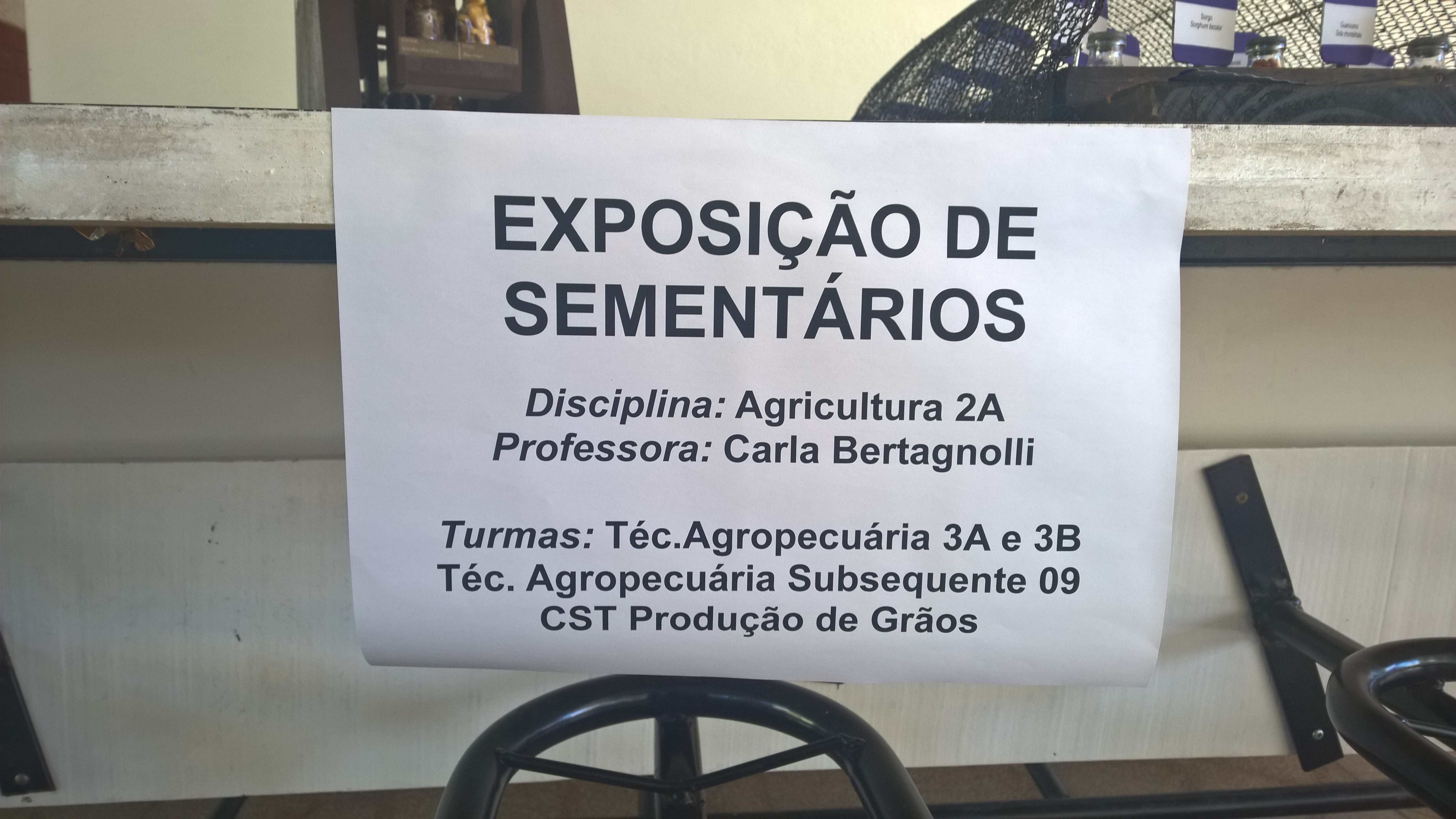 No dia 23 de agosto de 2016 ocorreu, na sala de vidro do Campus Júlio de Castilhos, a exposição dos Sementários confeccionados pelos alunos dos Cursos Técnico em Agropecuária Integrado, turmas 3 A e 3 B; Técnico em Agropecuária Subsequente turma 09 e CST Produção de Grãos Turma 5.