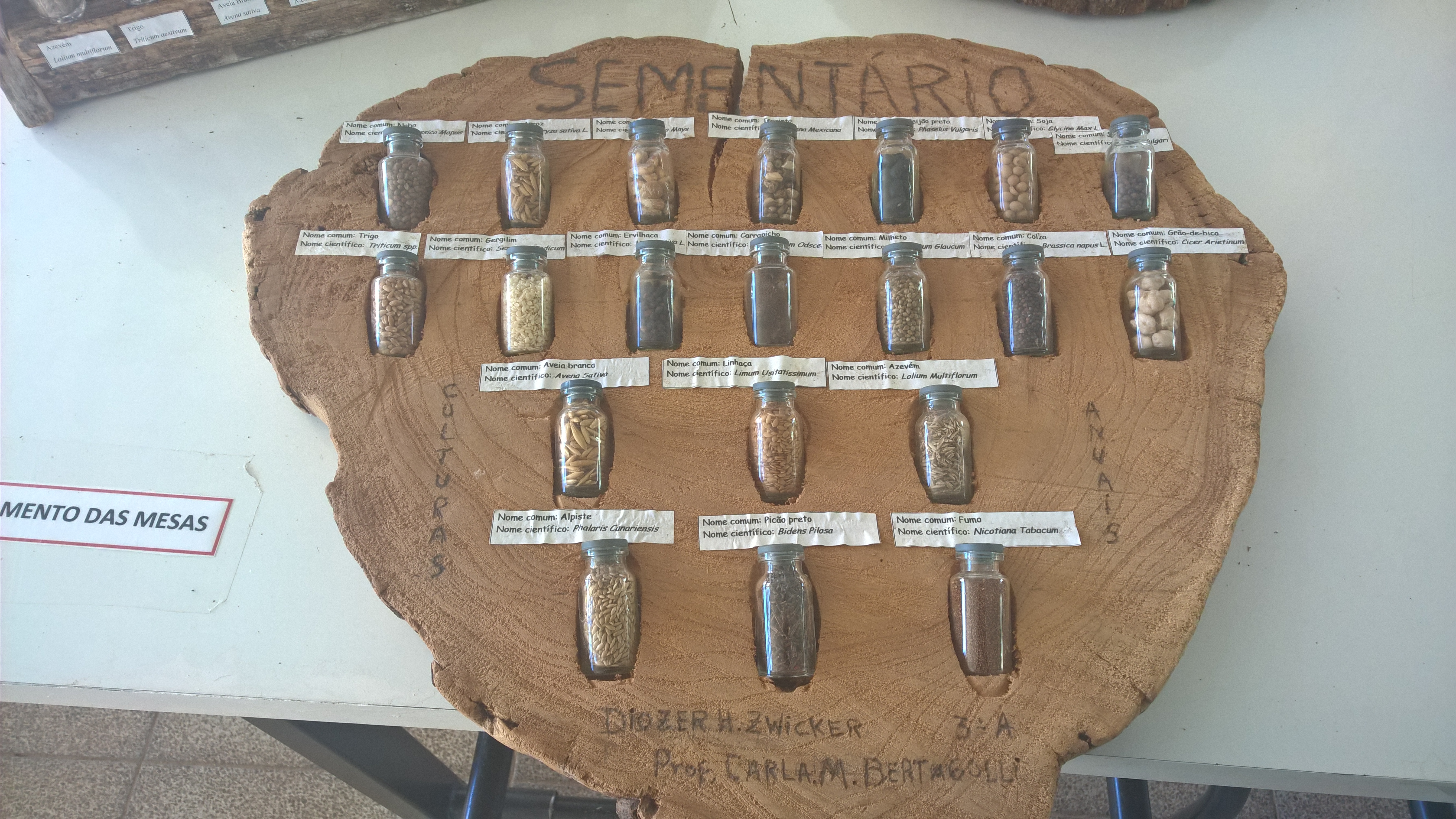 Os sementários foram propostos como atividade avaliativa das disciplinas de Agricultura II e Produção de Grãos e Sementes I, os alunos deveriam coletar sementes de 20 espécies diferentes de culturas anuais e plantas invasoras e identificá-la com nome comum e nome científico.