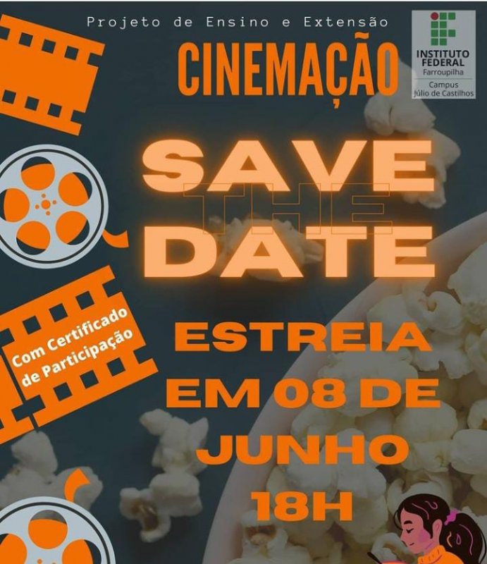 O projeto CINEMAÇÃO tem como finalidade promover ações de extensão que contemplem o envolvimento da comunidade acadêmica do Instituto Federal de Educação, Ciência e Tecnologia Farroupilha – Campus Júlio de Castilhos e de escolas municipais castilhenses, buscando a inovação pedagógica na proposta de cinema na educação, o protagonismo na construção de trajetos formativos e na transversalização curricular.