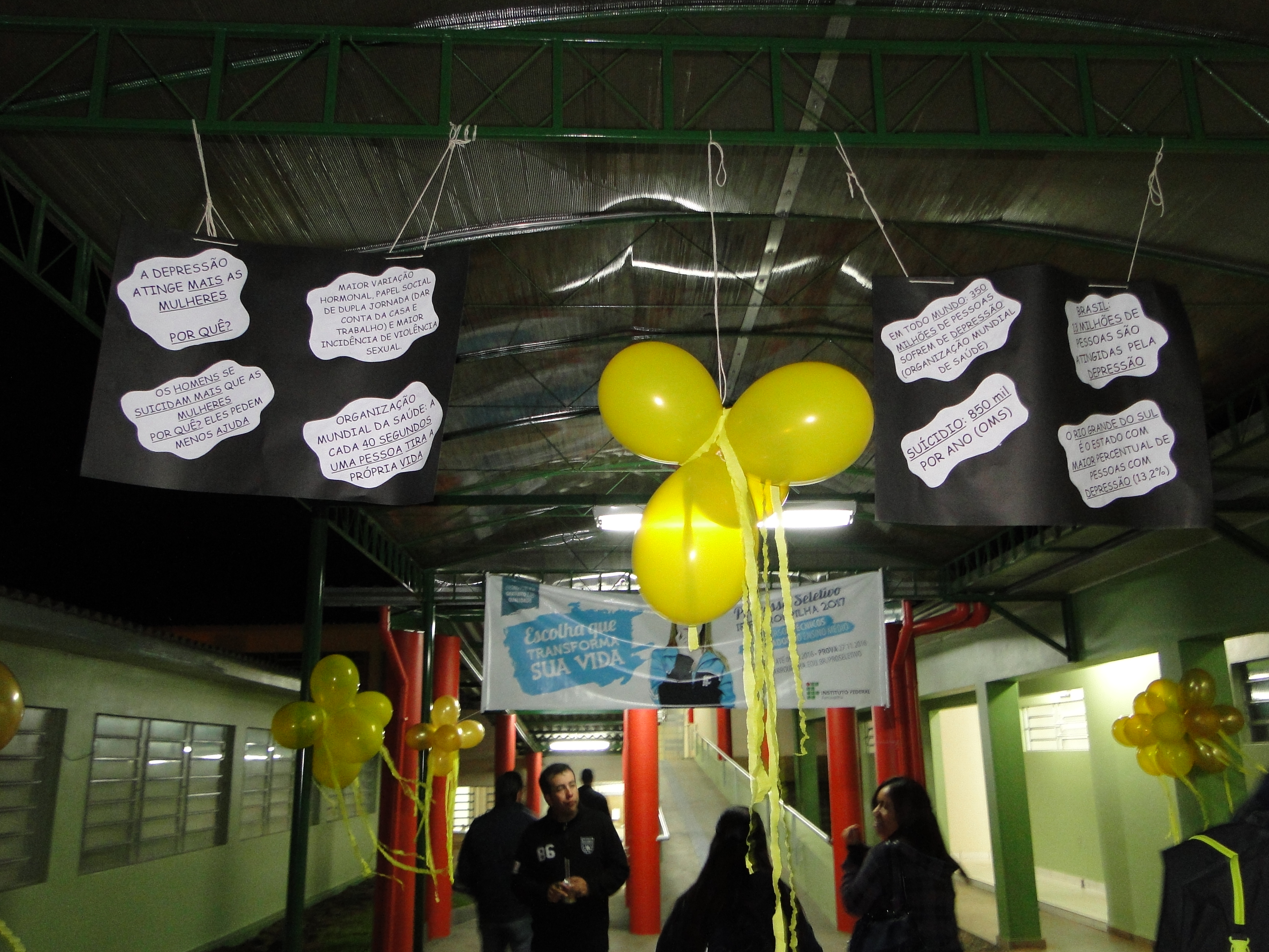 Para marcar a data do setembro amarelo, mês destinado à prevenção do suicídio, a coordenação de assistência estudantil e o grupo de estudos “educação em saúde” promoveram uma atividade de valorização da vida, um momento de proporcionar à comunidade escolar uma reflexão sobre a prevenção do suicídio, distribuindo marcadores de página com frases motivacionais e o incentivo à participação dos alunos em escrever algo sobre a vida, depositando-o na “caixa do desabafo” para ser confeccionado um mural sobre a valorização da vida.