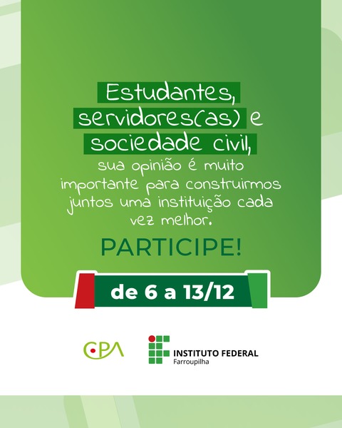 Segundo Francisco Giraldi, presidente da CPA, a autoavaliação deste ano se assemelha ao processo aplicado em 2020, realizado de forma virtual, e está organizada em três questionários: um para os servidores (Docentes e TAEs), um para os estudantes (todos os níveis e modalidades) e um para a comunidade externa (Sociedade Civil Organizada).