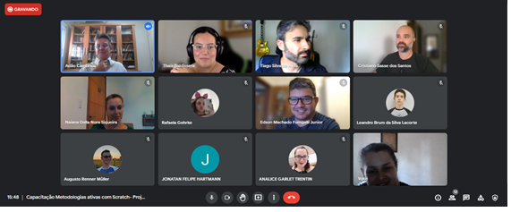 As atividades iniciaram com a capacitação da equipe e aconteceram de forma on-line. Foram realizadas capacitações sobre o ambiente Moodle ministrado pelo servidor Cristiano Sasse dos Santos, extensionista do projeto. No dia 06 de dezembro foi realizada a oficina de Metodologias Ativas com Scratch, desenvolvida pela professora Maria Angélica F. Oliveira. Nos dias 08 e 10 de dezembro, a equipe do Campus Júlio de Castilhos participou das oficinas organizadas pelo professor Adão Cambraia do Campus Santos Augusto, que coordena o projeto Prorobótica: pensamento computacional na Educação Básica, o qual abrange diversas cidades da região.
