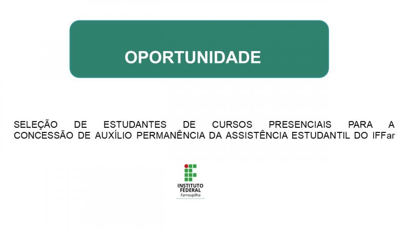 IFFar torna público do edital referente a seleção de estudantes de Cursos Presenciais para a concessão de Auxílio Permanência da Assistência Estudantil