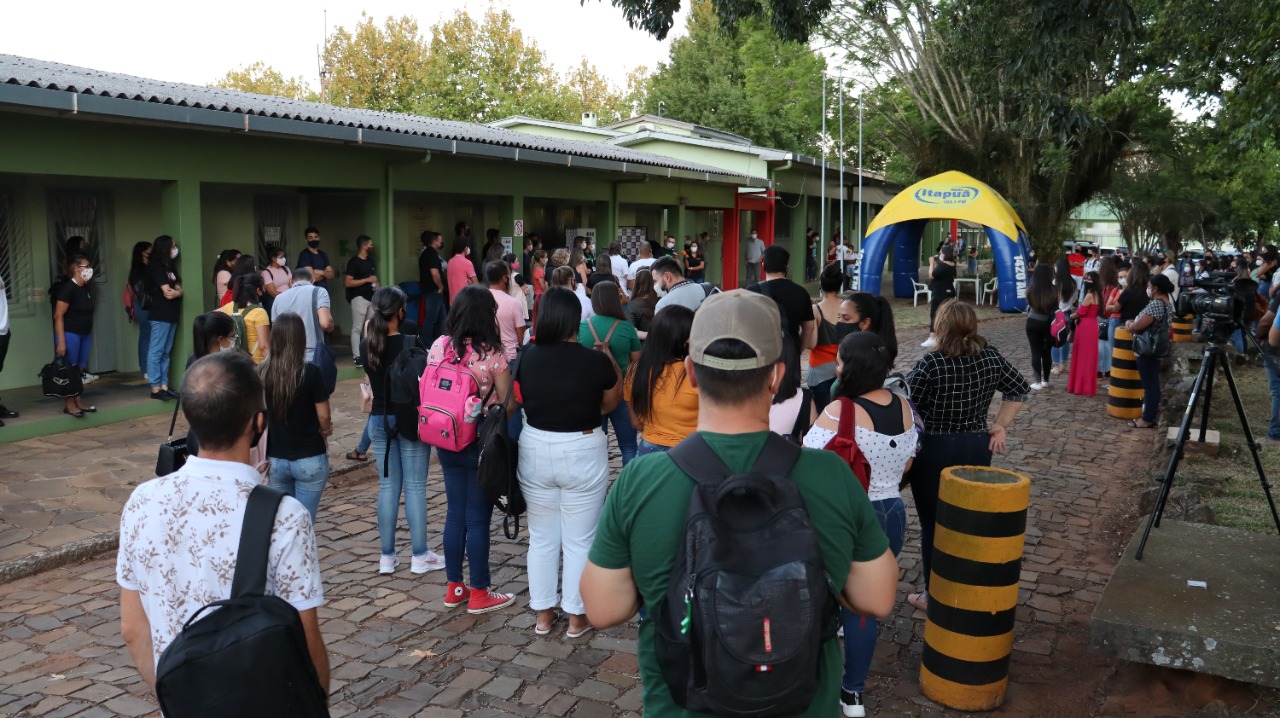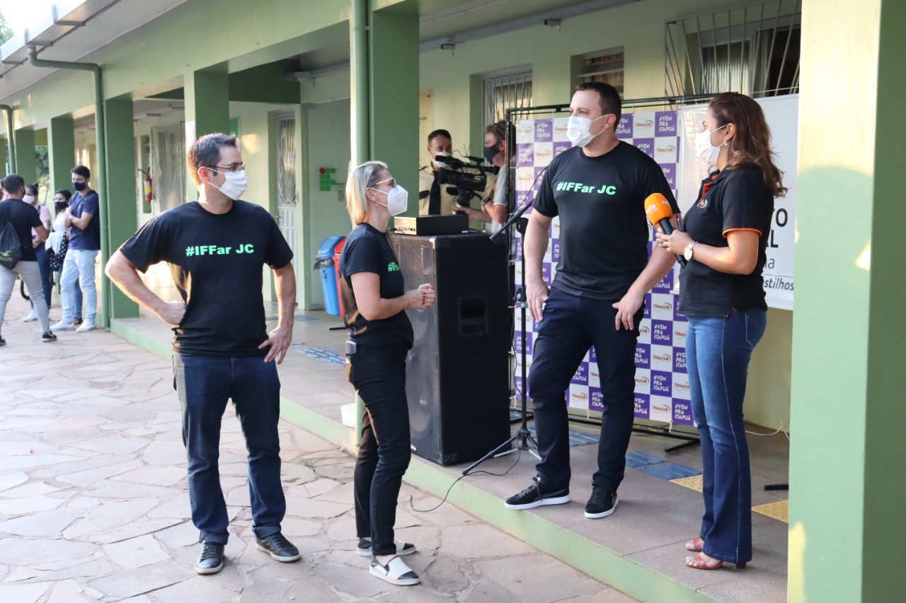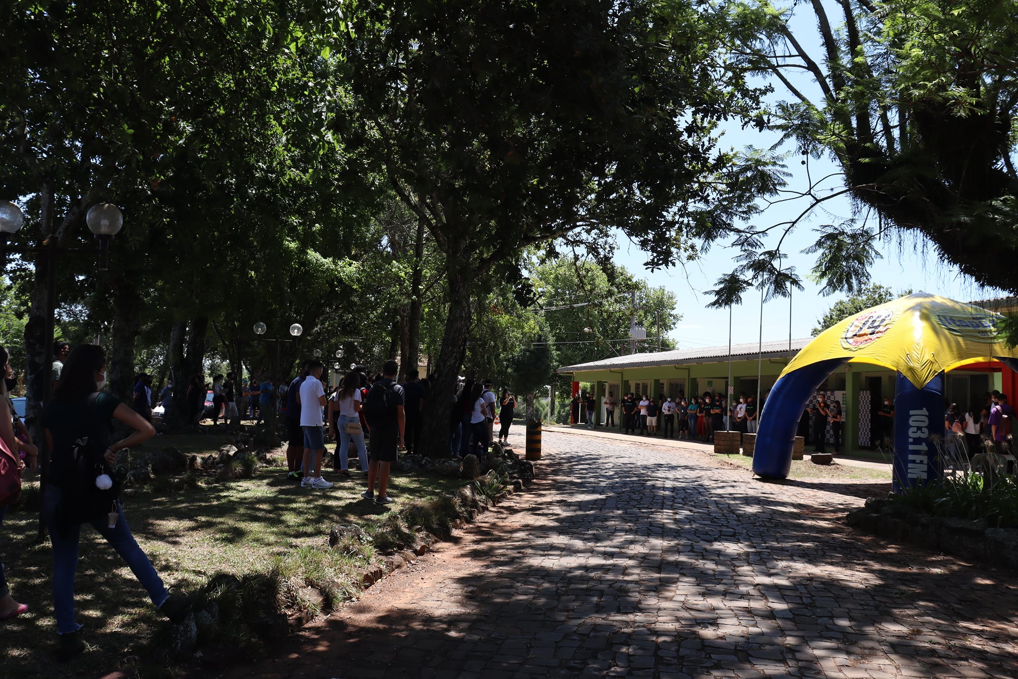 Todo o acolhimento aconteceu no hall do antigo prédio administrativo, onde o Diretor Geral Rodrigo Carvalho Carlotto e as coordenações dos cursos deram as boas vindas aos(as) estudantes. A programação de acolhida contou com a presença da equipe diretiva, docentes, técnico-administrativos e comunicadores da Rádio 14 de Julho.