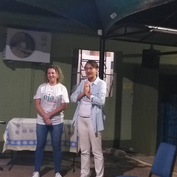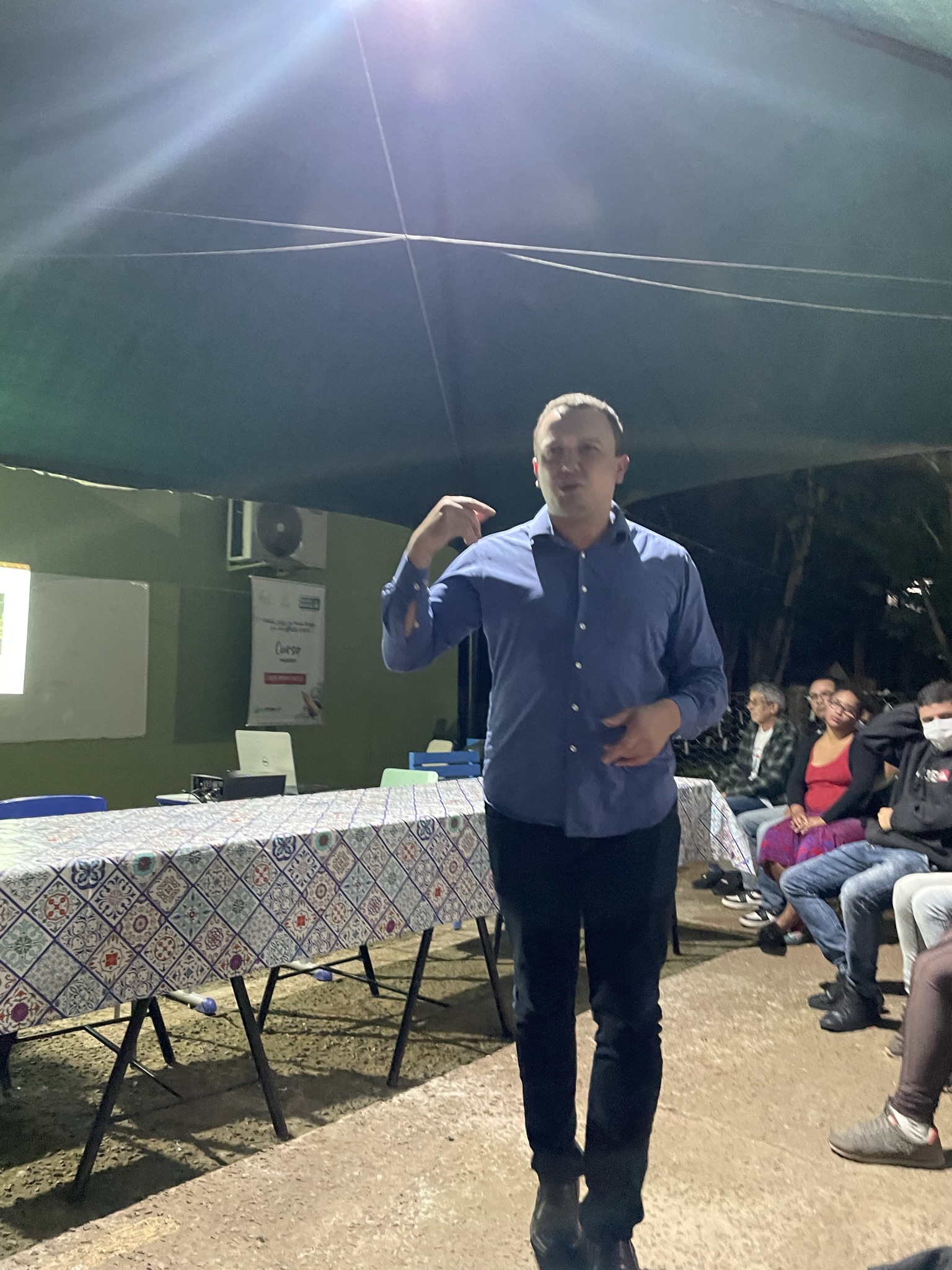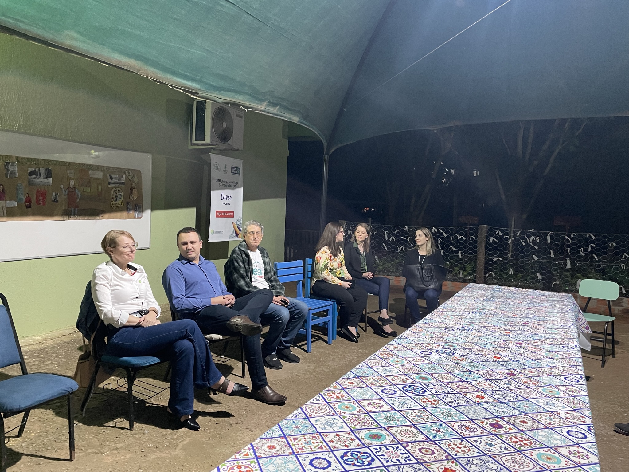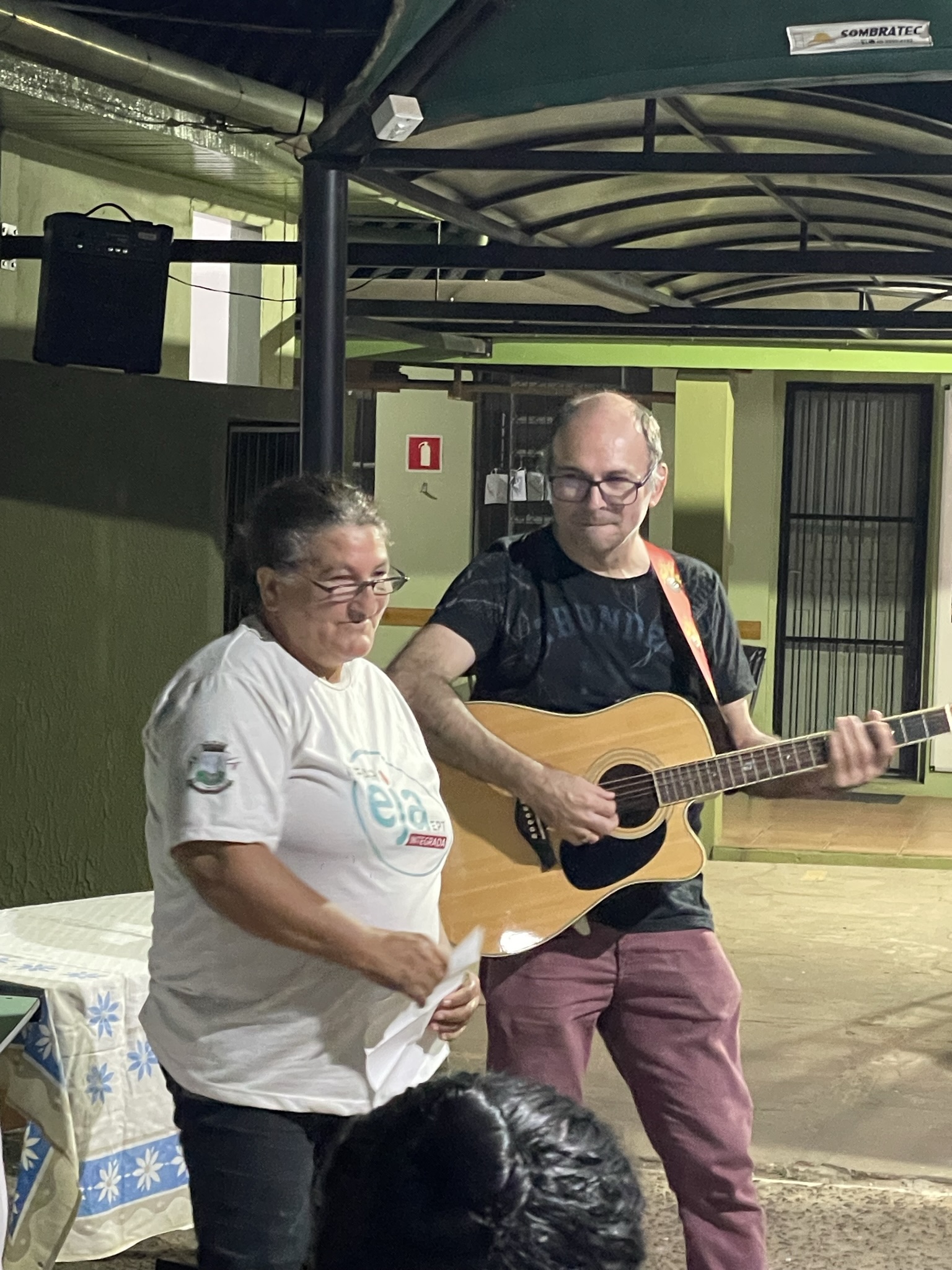 A diretora ressaltou que a escola recebe alunos/as desde a educação infantil até o ensino fundamental completo, com a modalidade EJA desde 2002. Lozecler ainda aproveitou para solicitar ao IFFar e a prefeitura que sejam disponibilizadas turmas de EJA – ensino médio na escola. Ela também apresentou os docentes da escola ligados ao curso: Lenir, Luís Tadeu, Sílvio, Fabrício e Tereza.