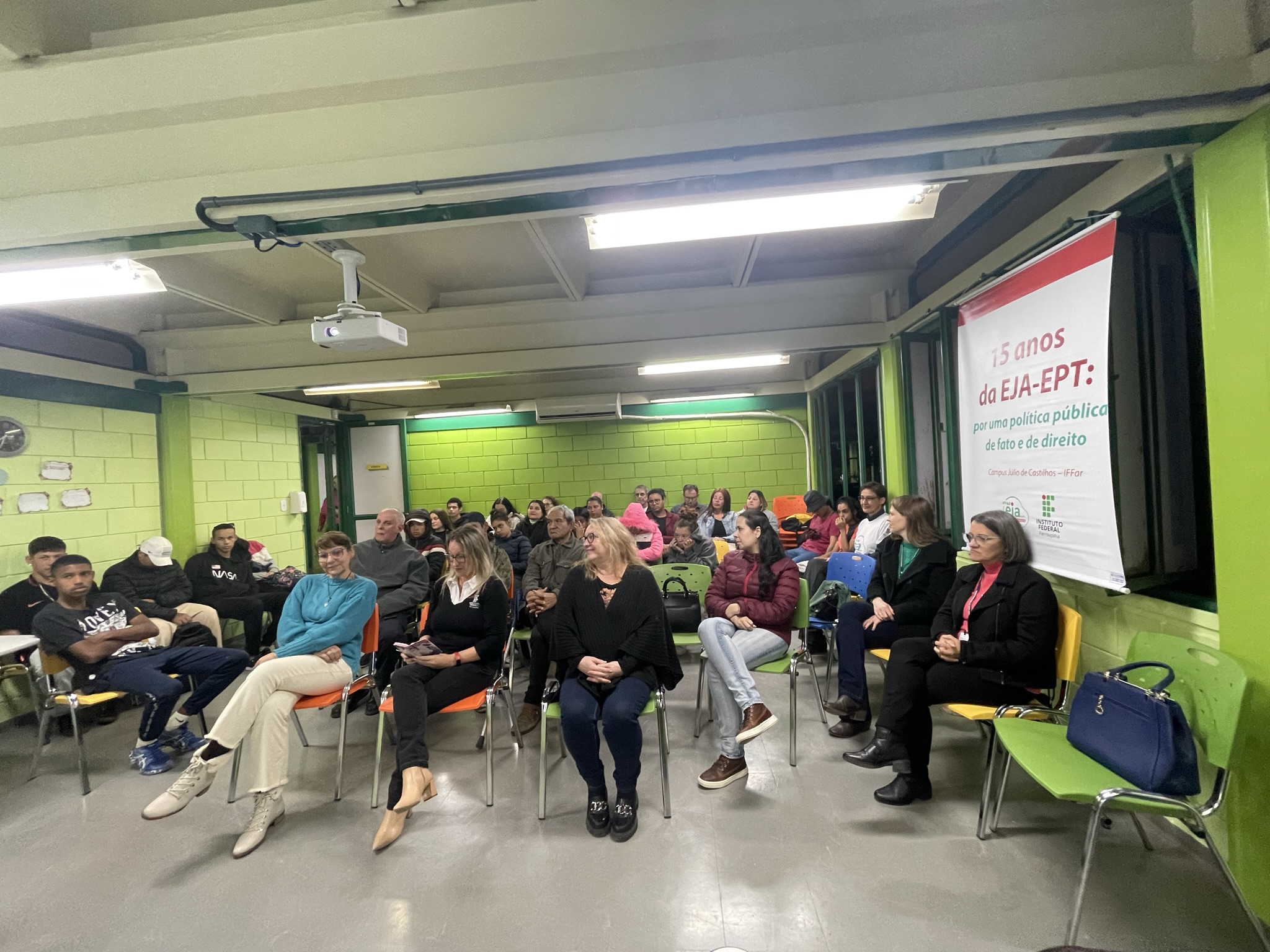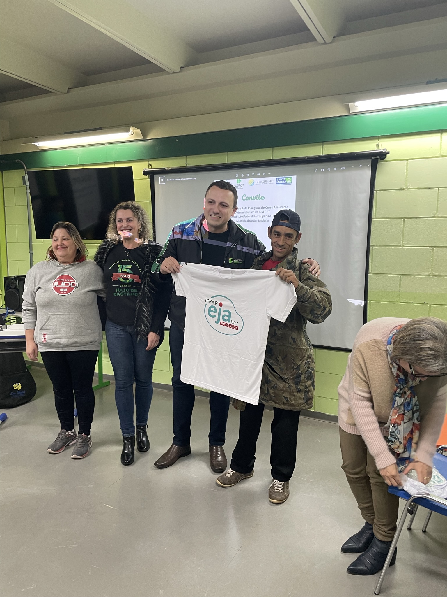 Estiveram presentes representantes do IFFar: o Diretor Geral do Campus Júlio de Castilhos e psicólogo - Rodrigo Carlotto, a Diretora de Ensino do Campus Júlio de Castilhos - Sílvia Montagner, a Diretora de Ensino do IFFar - Andriéli Hedlund Bandeira, a Coordenadora de Assessoria Pedagógica – Cléia Tonin, a pedagoga - Nádia Belinazzo, as professoras - Michele Lopes e Rosângela Soares e o bolsista - Joel Jaques e da Secretaria Municipal de Educação (Smed): a Coordenadora Pedagógica EJA da Secretária Municipal de Educação (Smed) - Maria Cristina Rigão Iop, a Coordenadora Pedagógica da Smed - Denise Ritter.