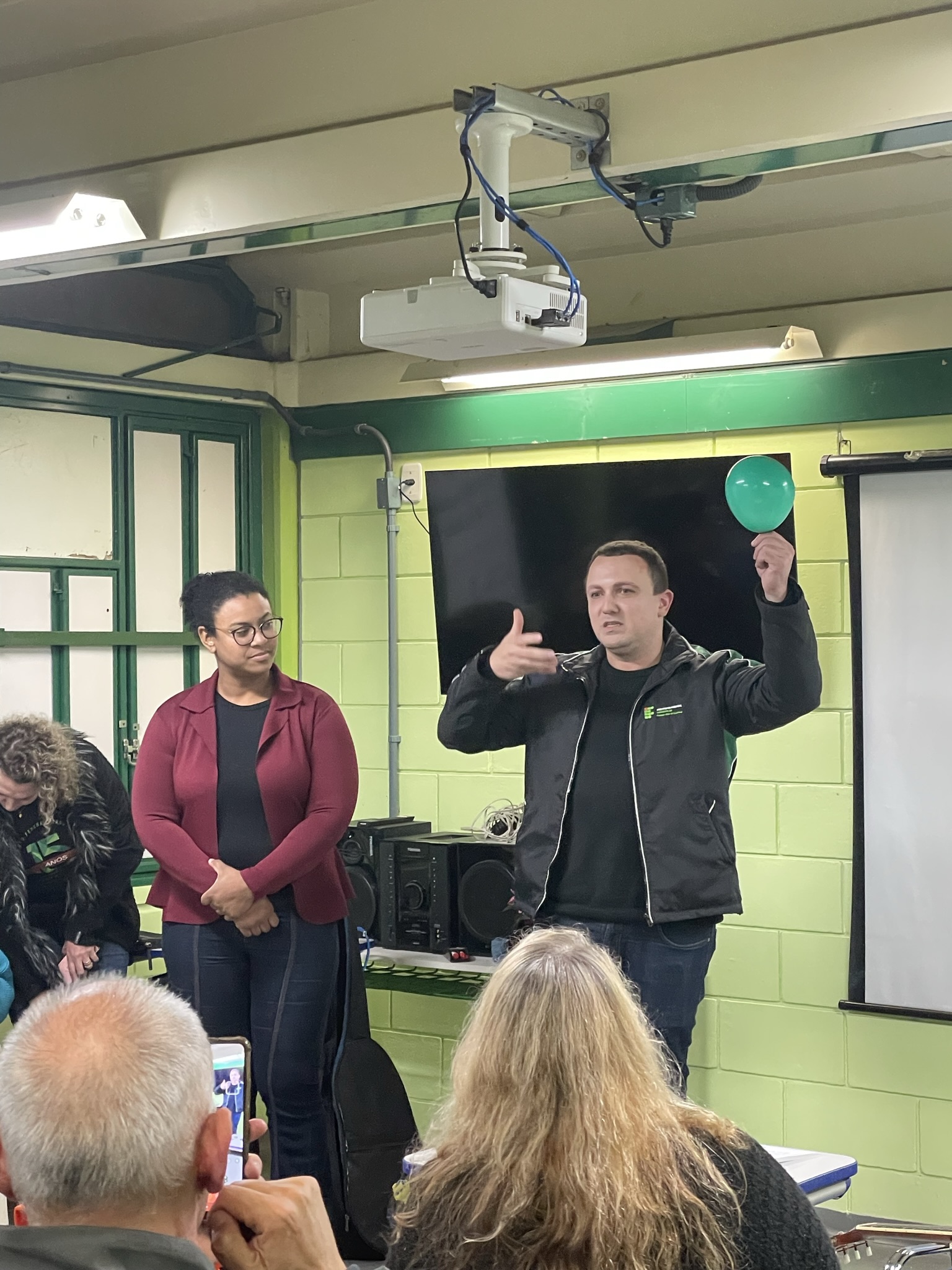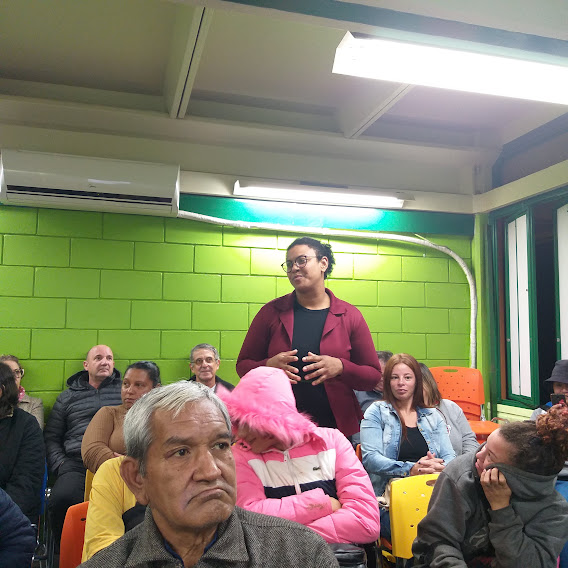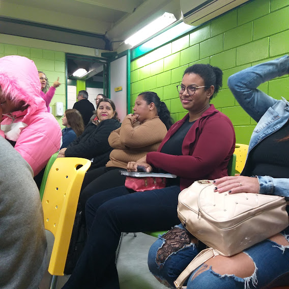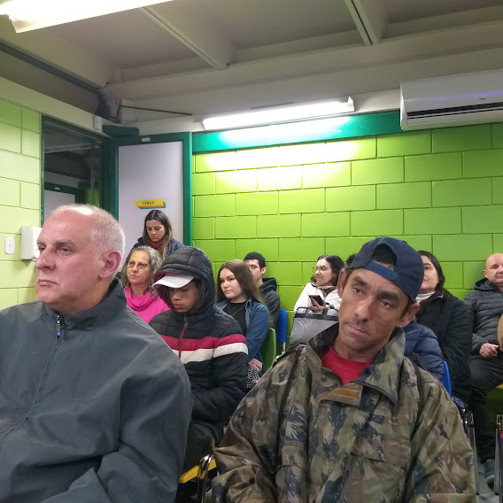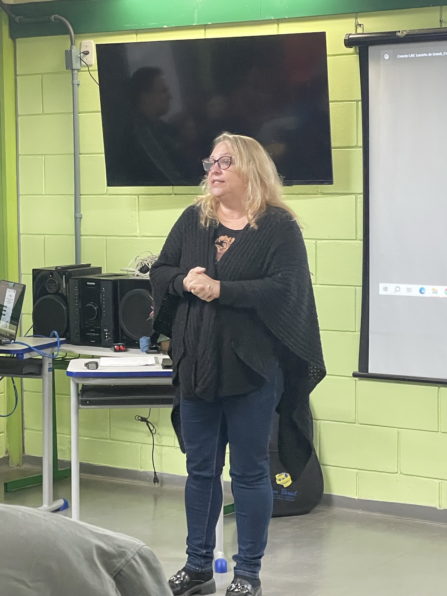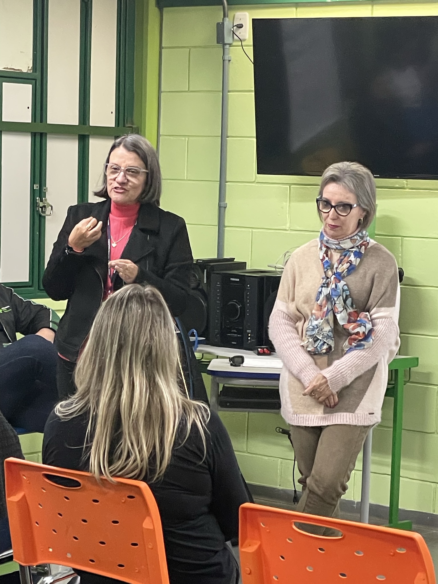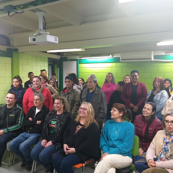 A professora Maria Cristina falou da importância do Caic para a região sul do município de Santa Maria, de como conhecem todos/as os/as alunos/as e sabem de suas histórias. A coordenadora pedagógica reforçou para que continuem estudando e aproveitem a oportunidade, pois pelo menos quatro escolas ficaram na fila para ter esse curso e não conseguiram.