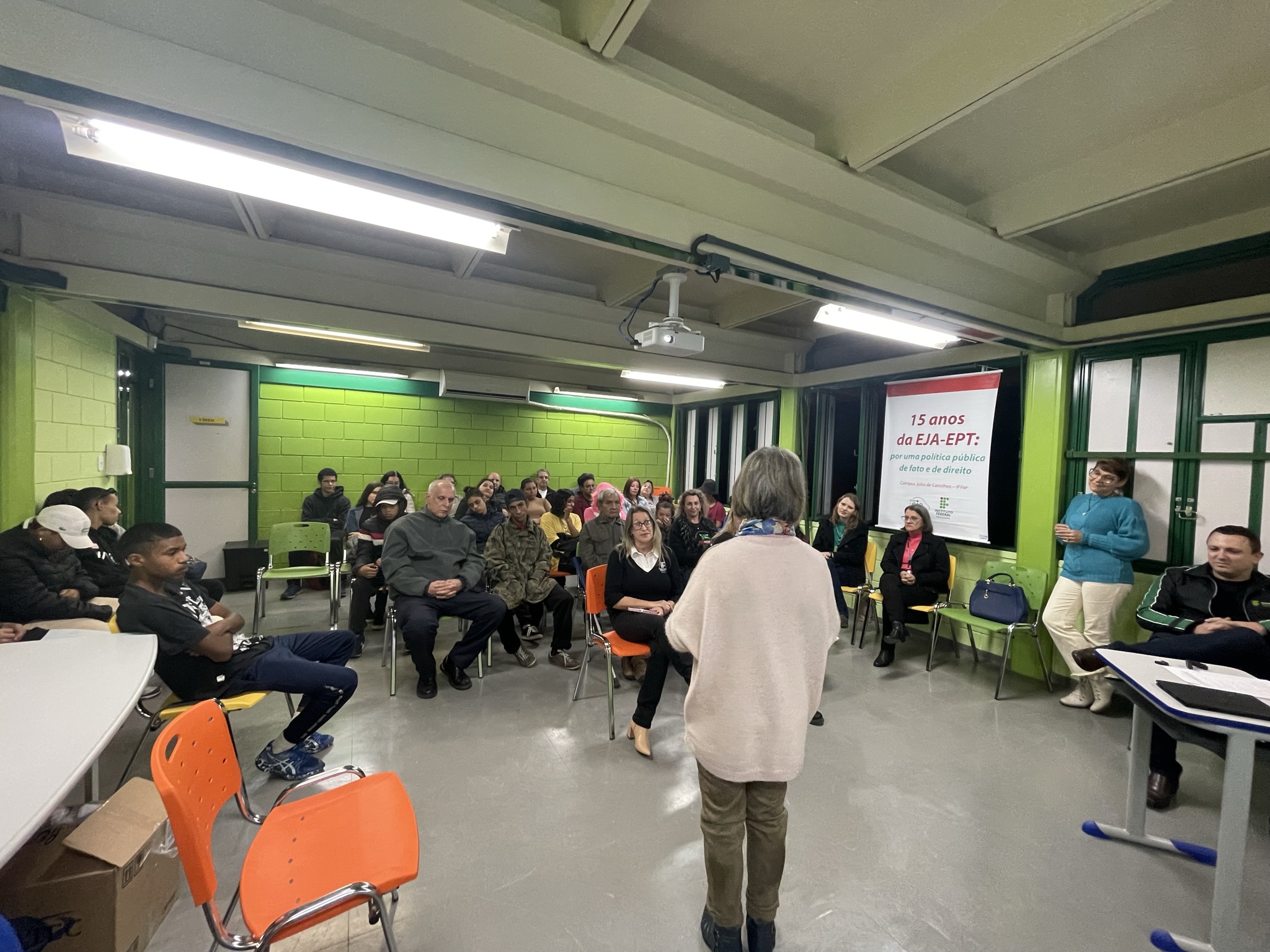 Silvia salientou o cuidado especial com os/as estudantes da EJA: motivar, estar atento às necessidades da vida de cada um, ir atrás e acompanhar até que terminem o curso. Já a professora Andriéli disse que gostaria que os/as alunos/as aproveitassem o espaço formativo e “quem sabe não se interessem em continuar os estudos no campus”.