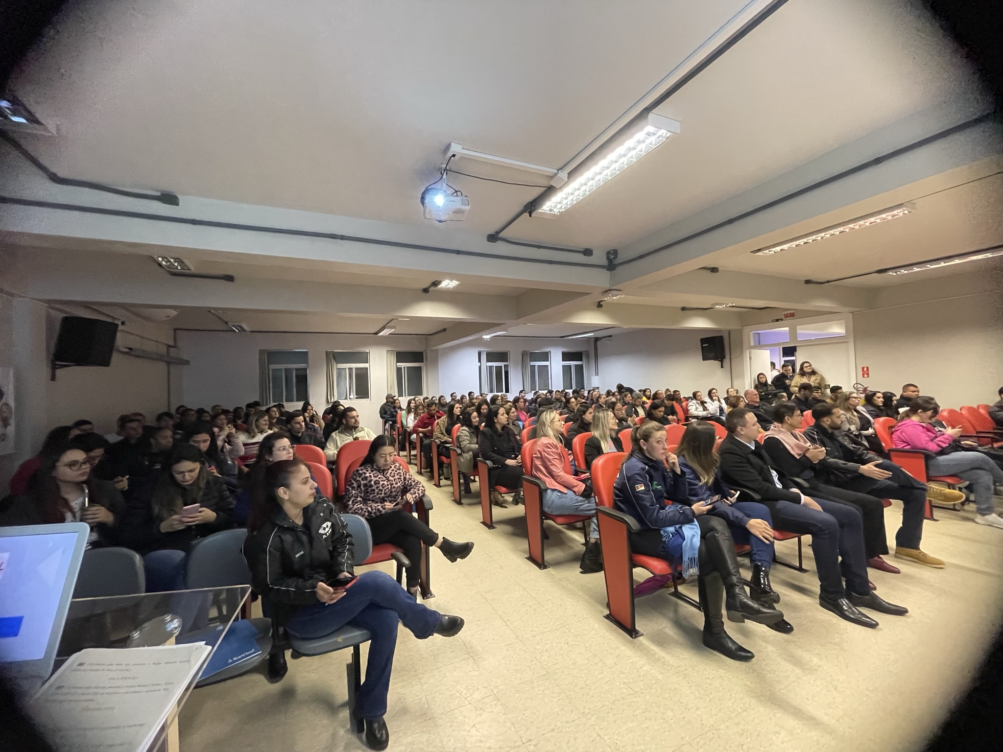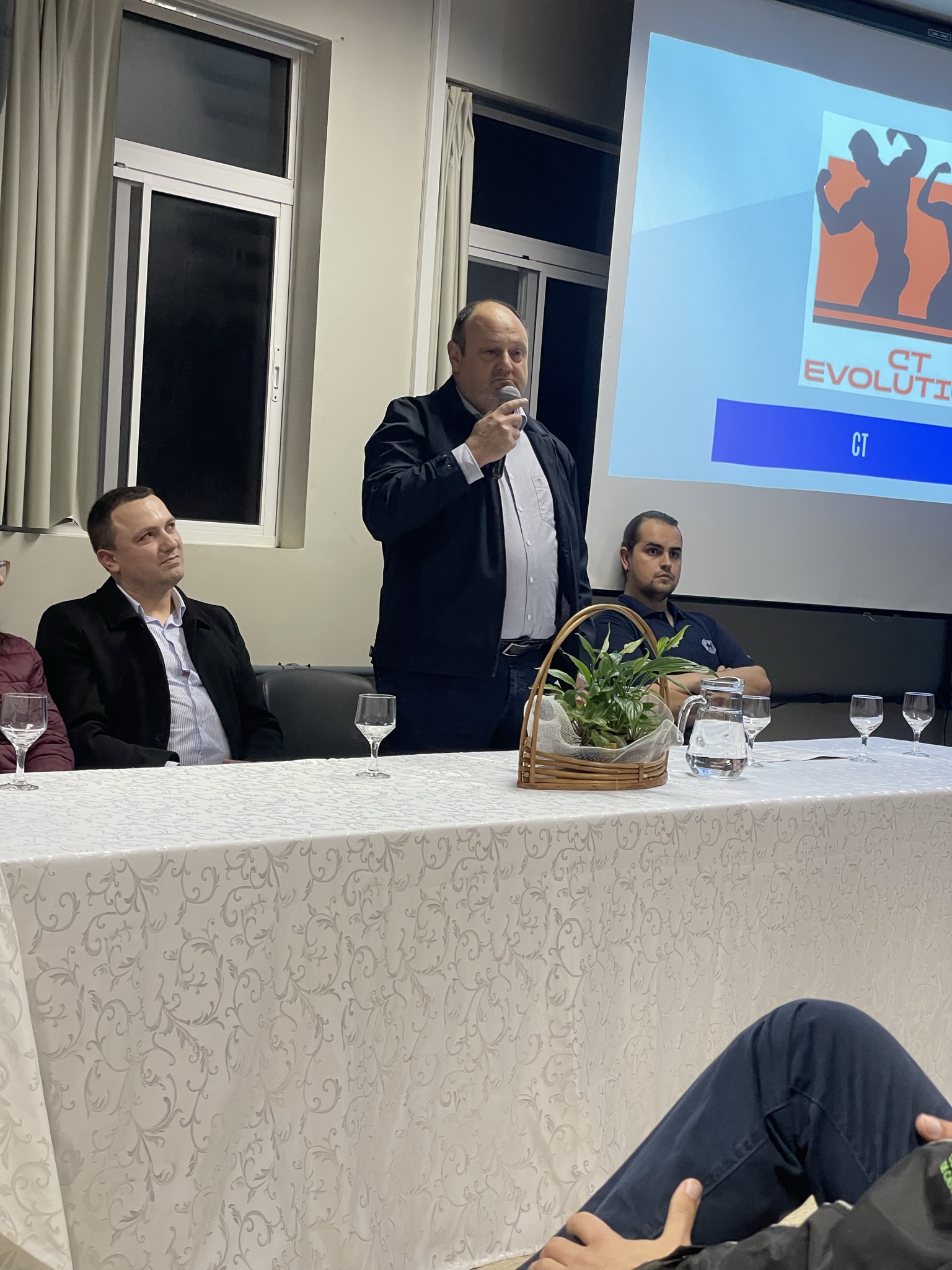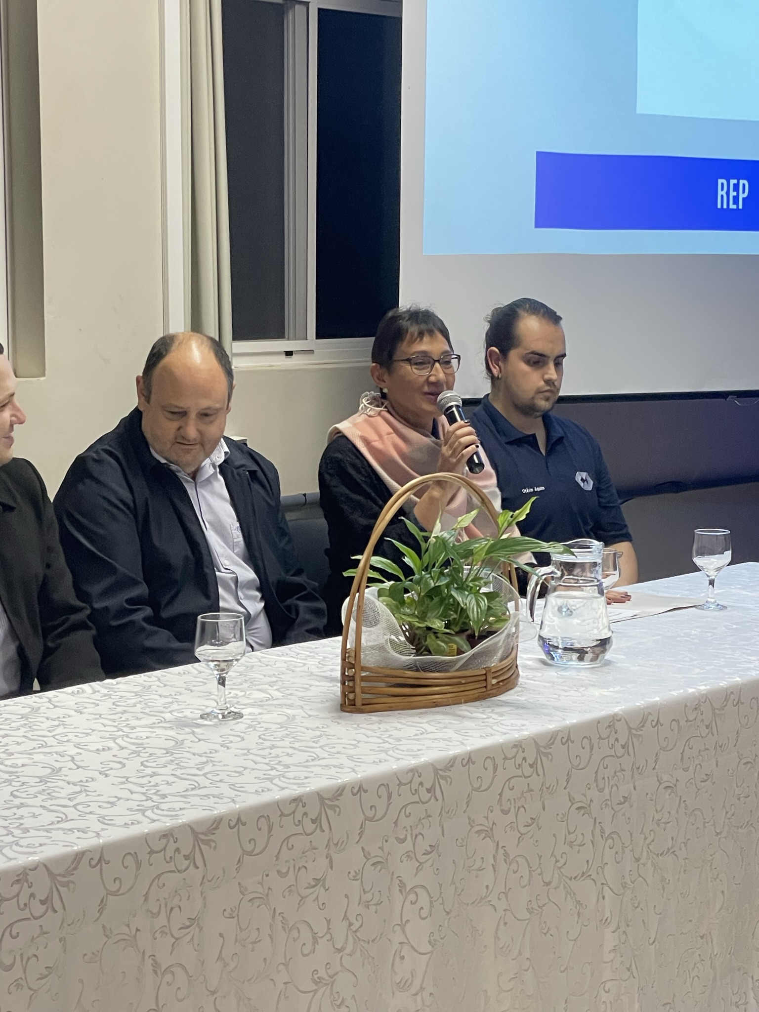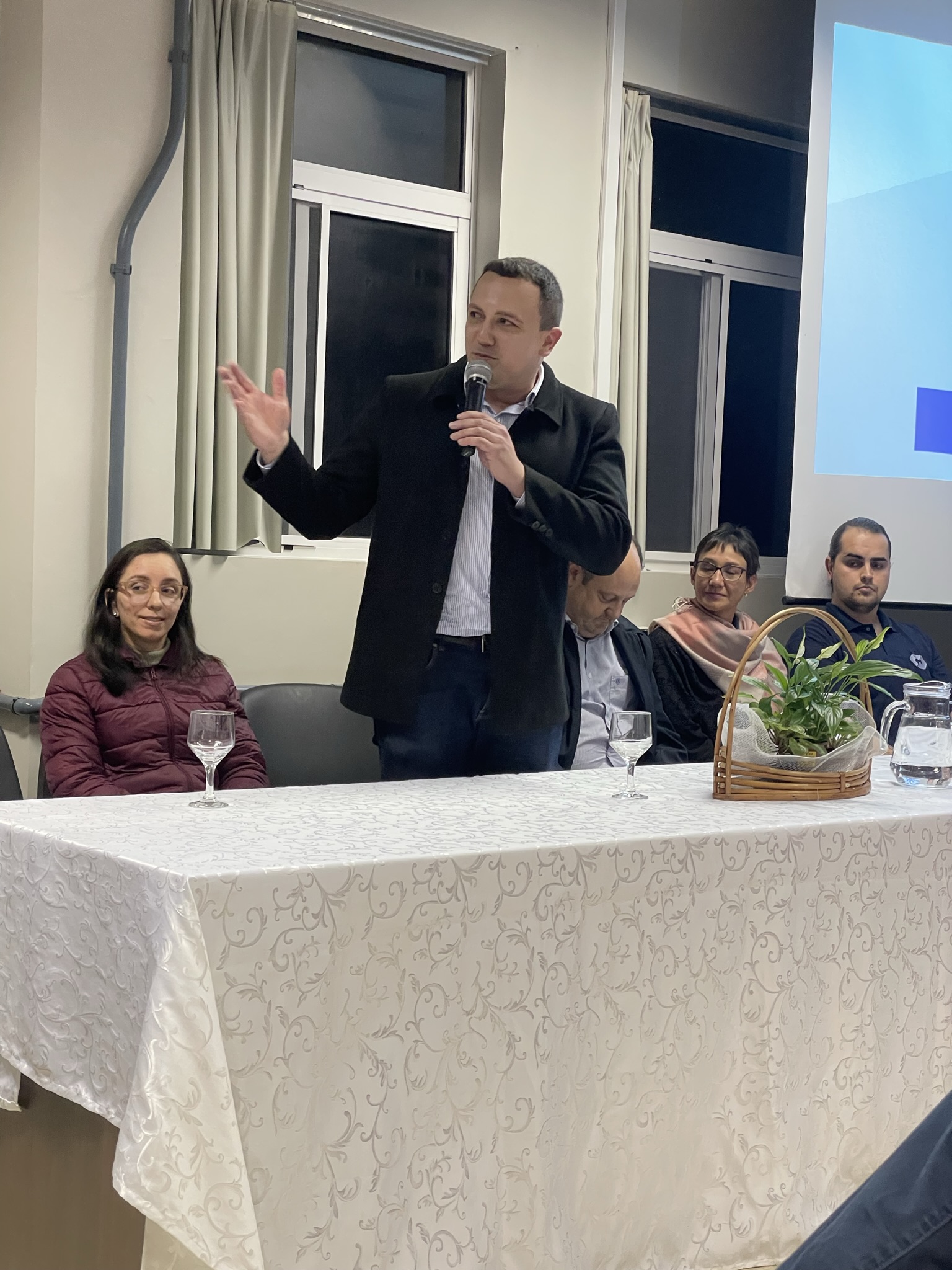O presidente do D.A. agradeceu a presença de todos/as, especialmente dos/as colegas do diretório Conexões, que prepararam o evento e das empresas apoiadoras. Na sequência, a professora Rosângela destacou alguns números do curso de Administração: 140 estudantes ativos/as e destes 35 estão fazendo o trabalho de conclusão de curso. Ela destacou que a palavra-chave dessa semana é aprendizado e que mais de 30 pessoas colaboraram na organização.