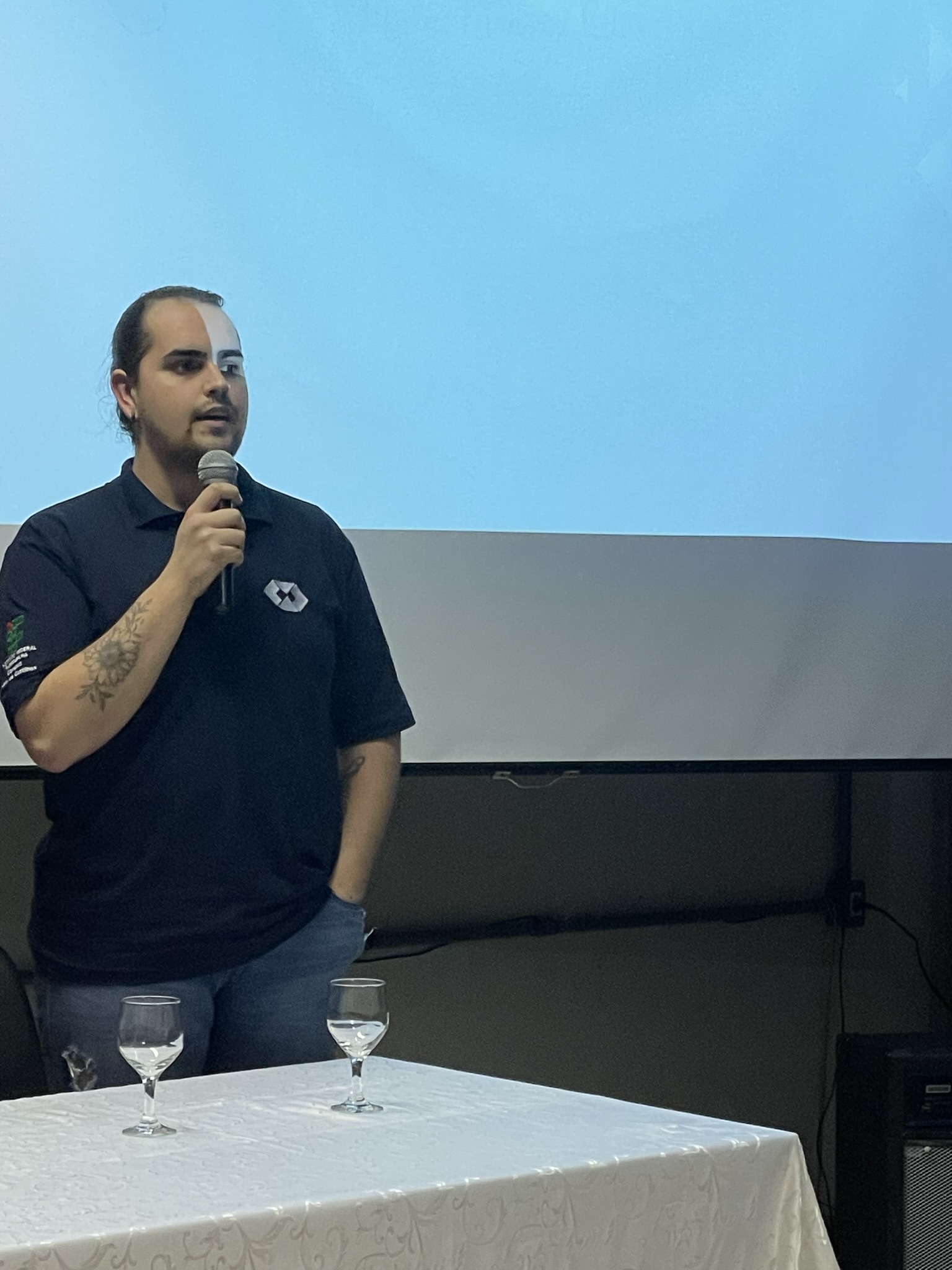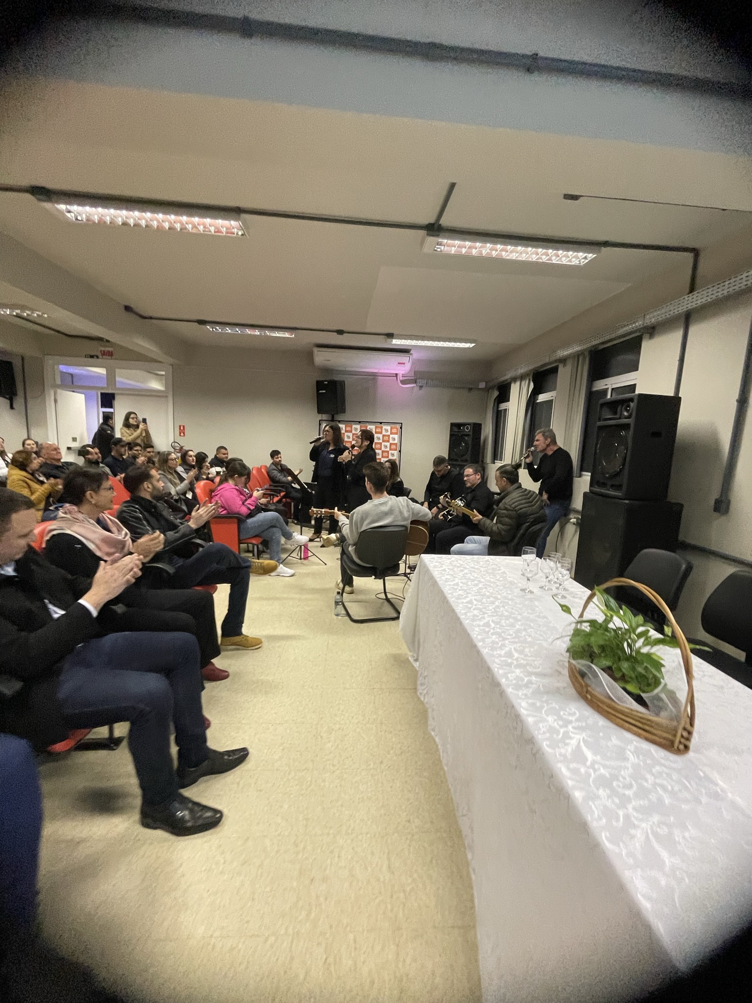 A abertura da XI Semana Acadêmica da Administração que teve início na noite de ontem (04/09) com a presença do diretor geral do Campus Júlio de Castilhos do IFFar - Rodrigo Carlotto, do prefeito de Júlio de Castilhos – Bernardo Quatrin Dallacorte, da Diretora de Ensino Substituta do IFFar – Campus Júlio de Castilhos - Carla Fonseca Barbosa, da Coordenadora do curso de bacharelado em Administração do IFFar - campus Júlio de Castilhos, Rosângela Soares, do Coordenador do Curso Técnico em Comércio - EJA EPT do IFFar - campus Júlio de Castilhos - Roberto Oliveira Weber e do presidente do Diretório Acadêmico da Administração, Otavio Pereira de Oliveira de Aquino. O momento contou com uma apresentação da banda musical do Núcleo de Arte e Cultura (Nac) composta pelos/as estudantes: Caroline Pedroso da Silva, João Vithor da Silva e pelos/as servidores/as: Ciro Atzler, Felipe Brum, Felippe Flain, Landara Simon, Pedro Hartmann e Raquel Audrei.