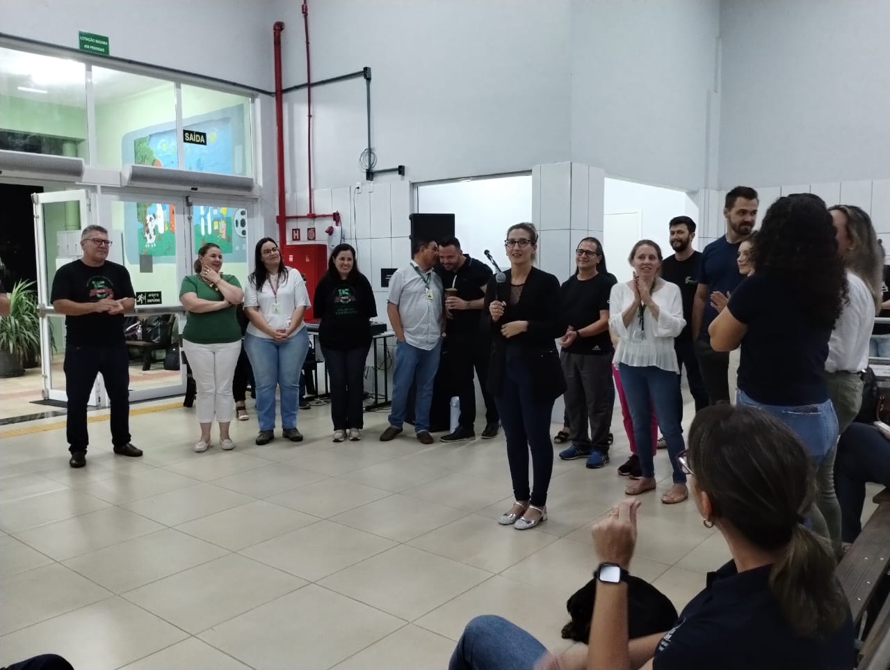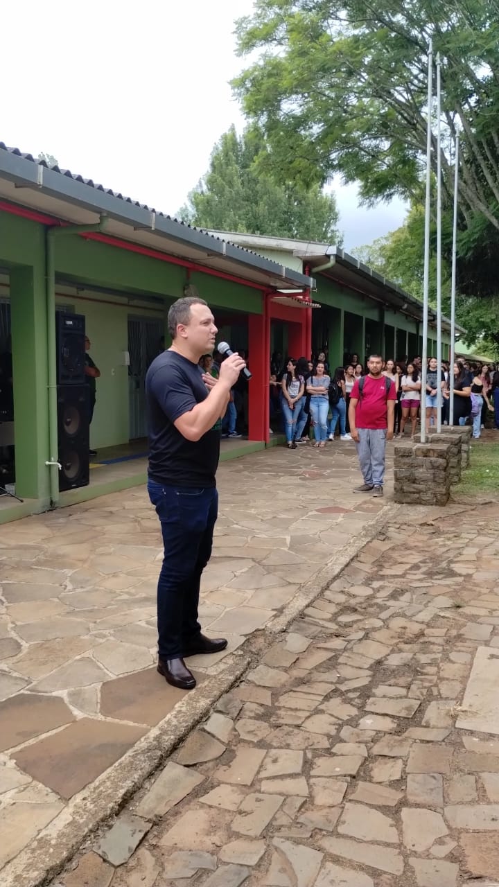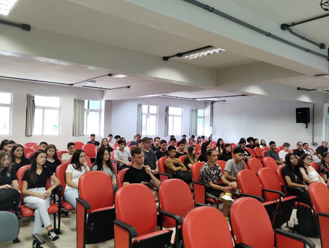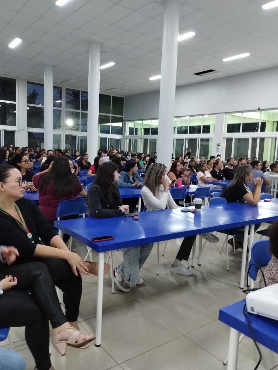 Após a fala do diretor ocorreu uma breve apresentação dos/as docentes presentes e da equipe diretiva. Na sequência, os/as estudantes foram encaminhados/as para atividades específicas dos seus cursos.