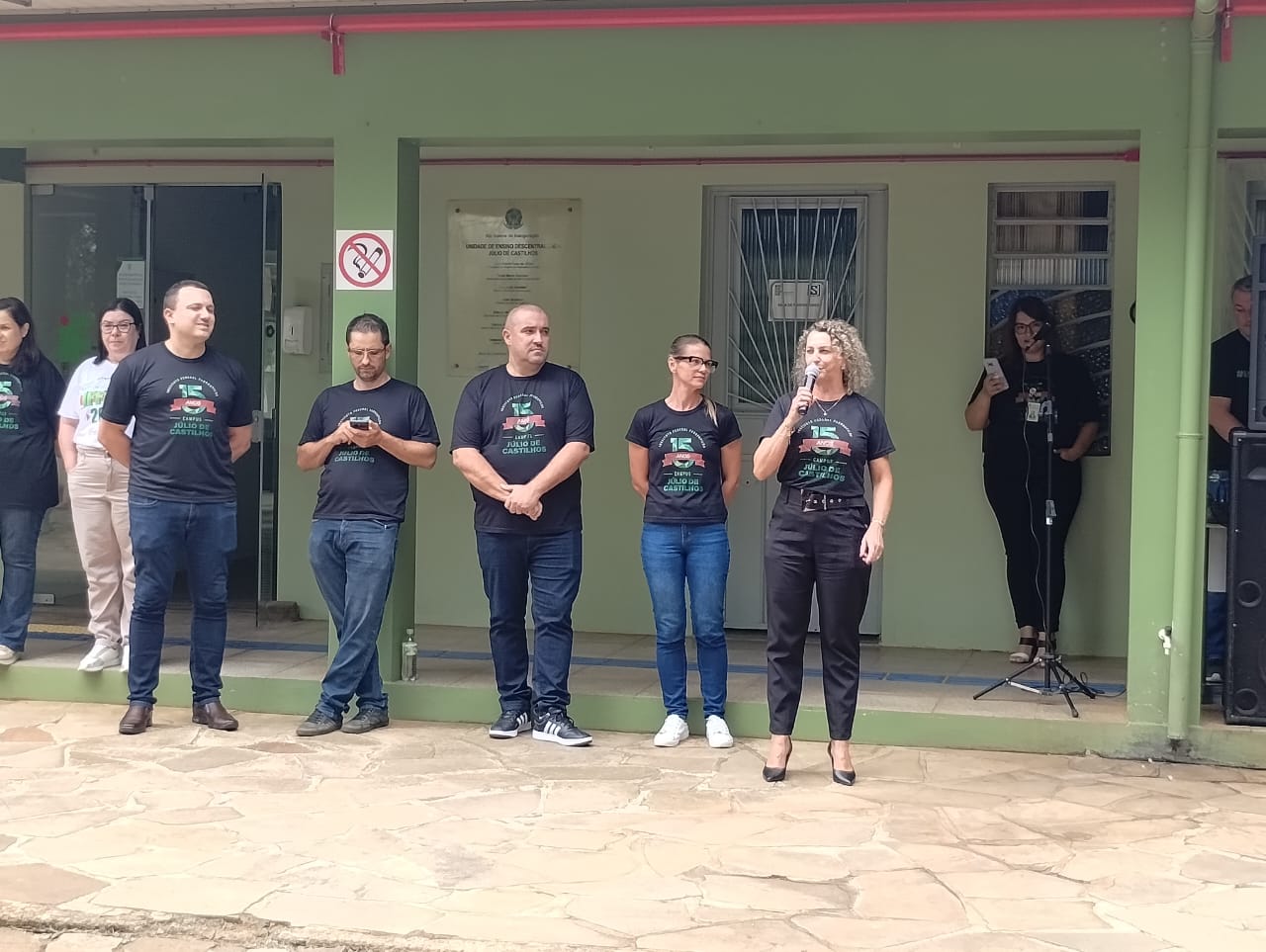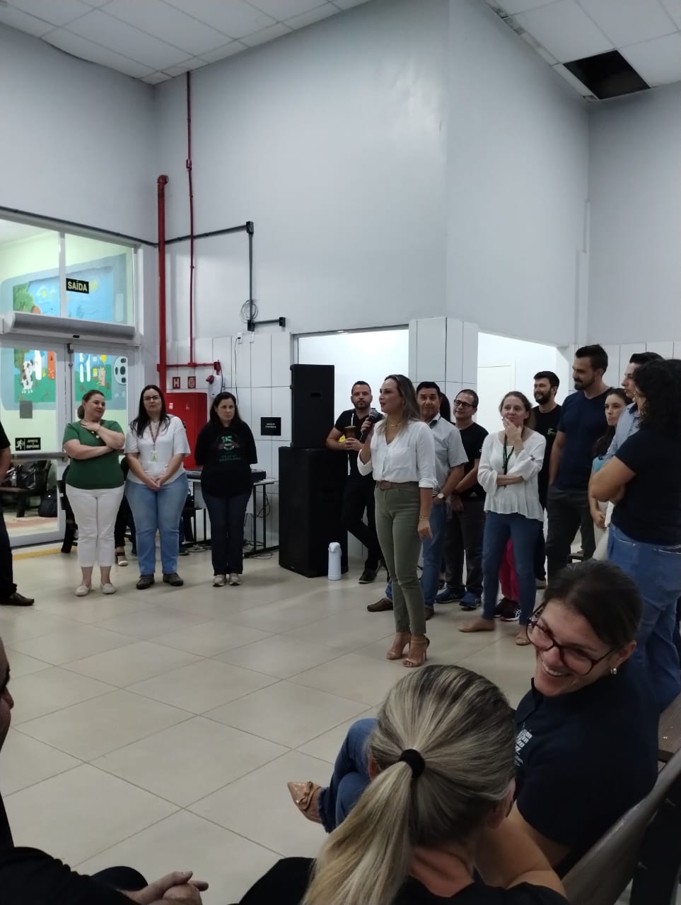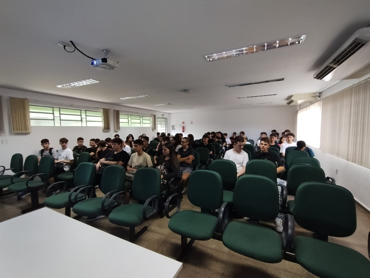 Após a fala do diretor ocorreu uma breve apresentação dos/as docentes presentes e da equipe diretiva. Na sequência, os/as estudantes foram encaminhados/as para atividades específicas dos seus cursos.