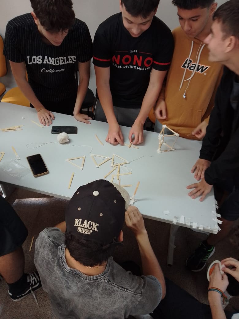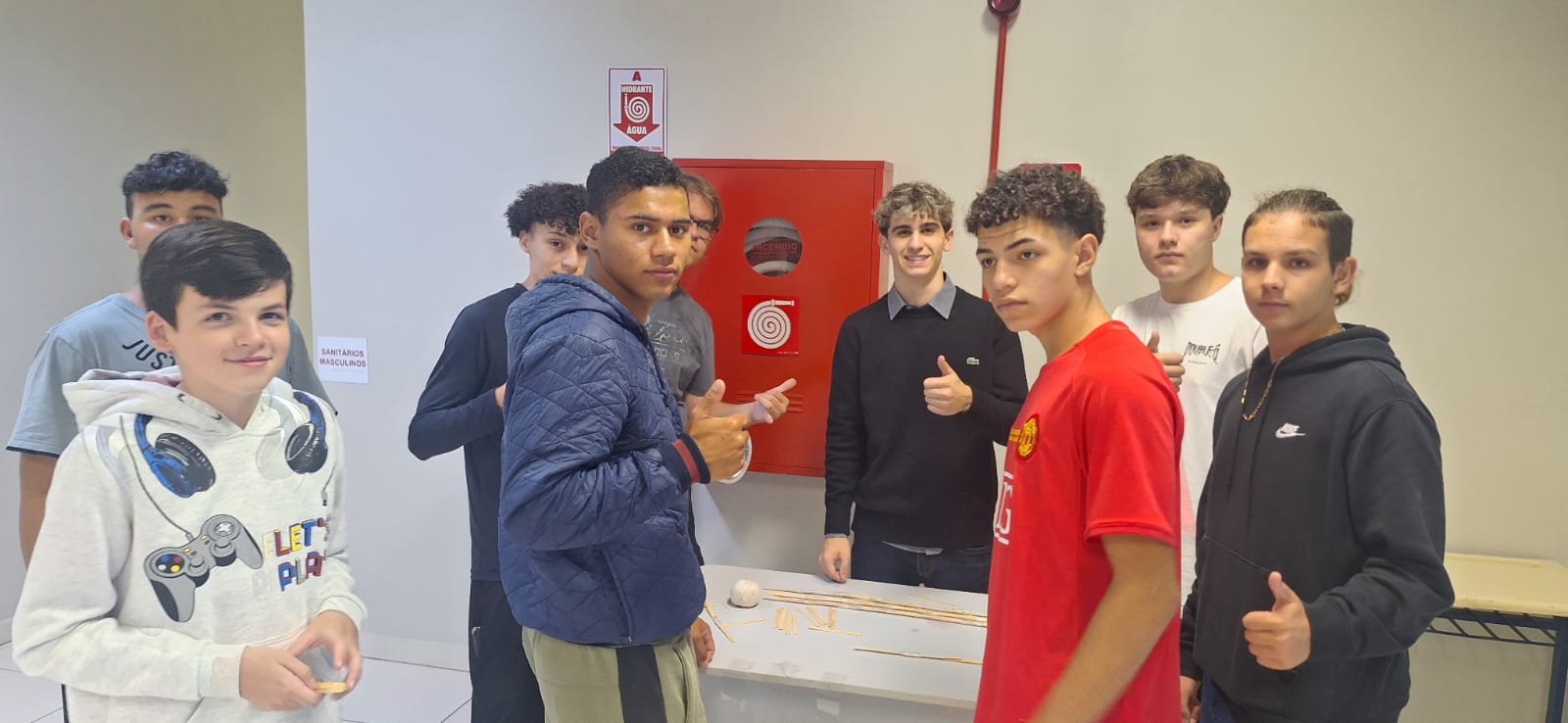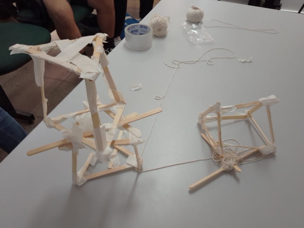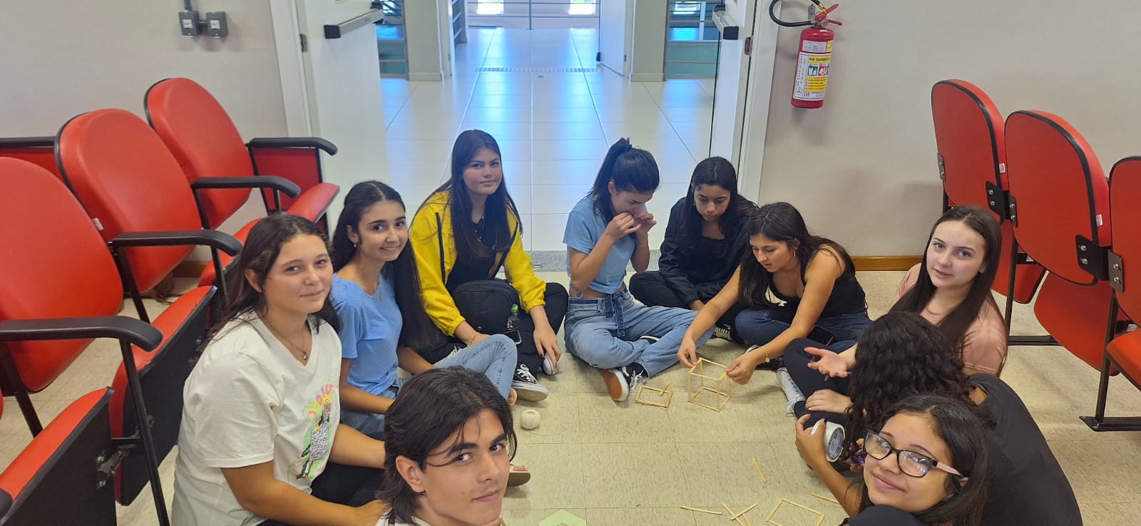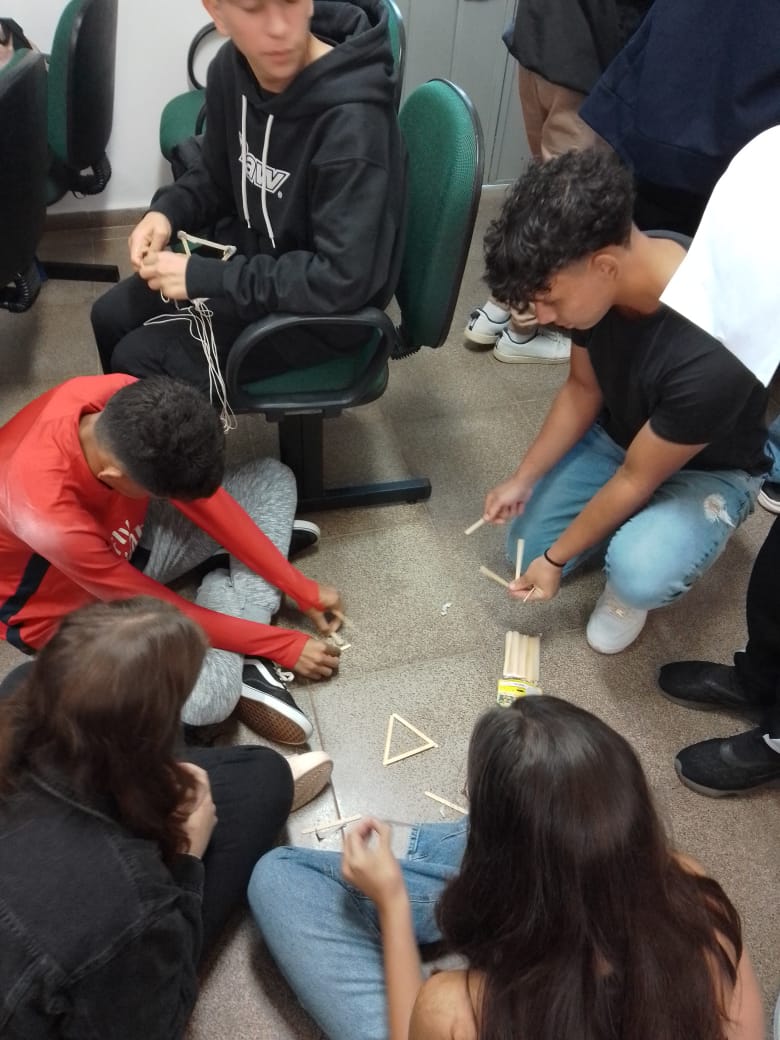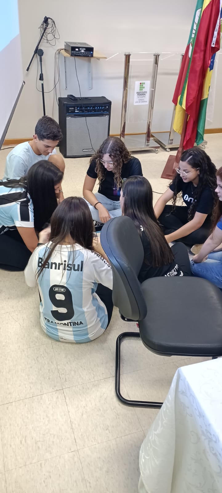 Após o momento inicial, as psicólogas Bruna Estivalet e Jaciara Janke fizeram a dinâmica da torre com os/as estudantes, com o objetivo de trazer uma integração entre os/as discentes recém-chegados/as. Os/as estudantes tiveram a experiência de trabalhar em equipe para realizar a tarefa de construção da torre e a oportunidade de conhecer os/as colegas deste ano letivo.