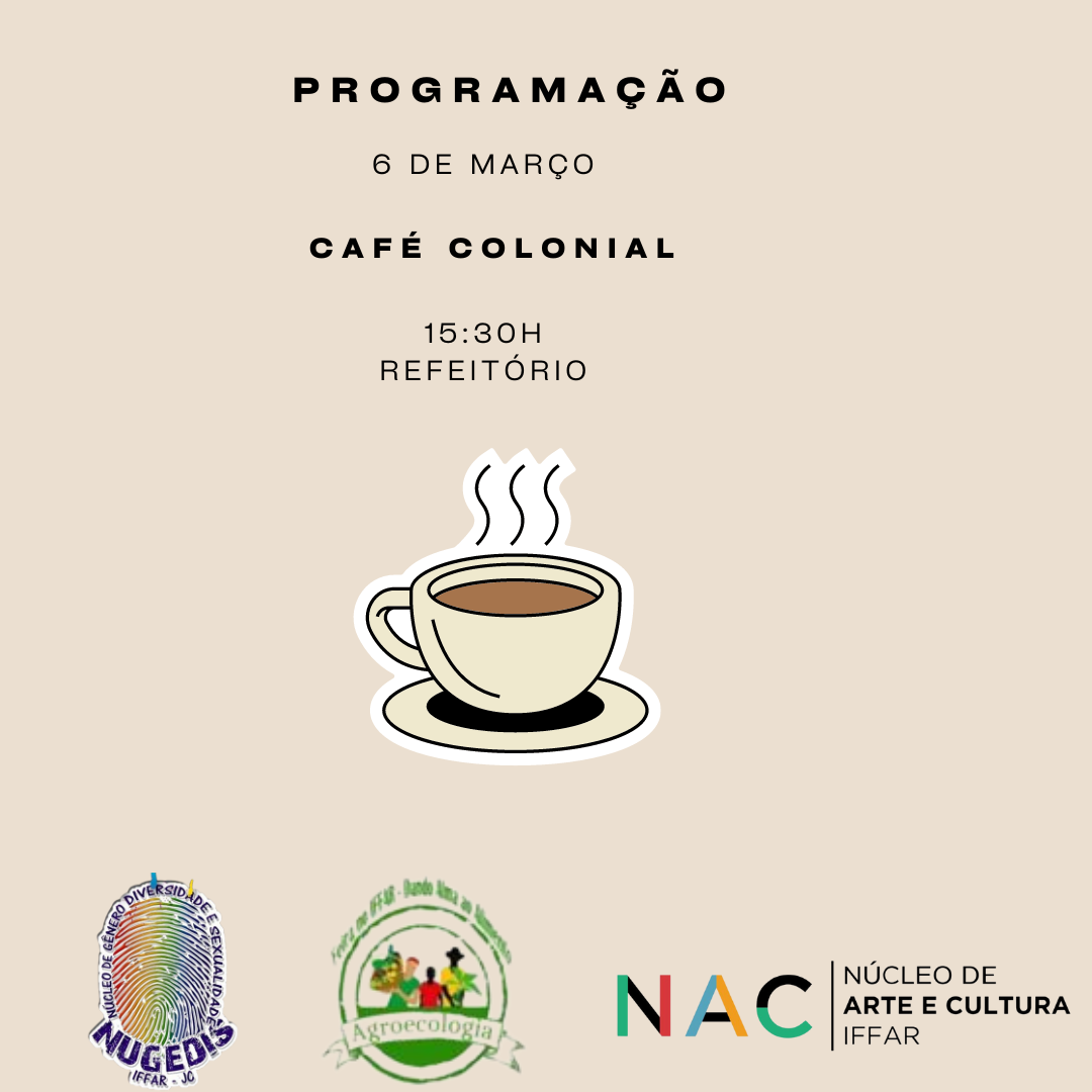 A abertura será com um café colonial. A programação continua até o dia 19 de março