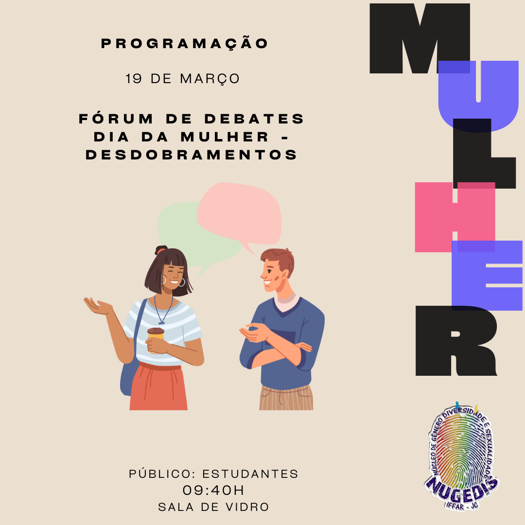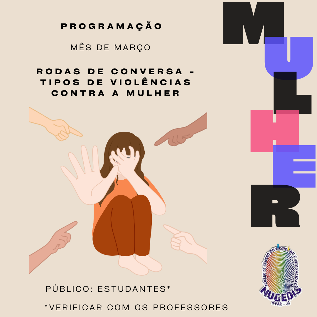 Durante o mês de março acontecem rodas de conversa sobre os tipos de violência contra a mulher, com os/as estudantes. As datas para cada turma podem ser conferidas junto aos/às professores/as.