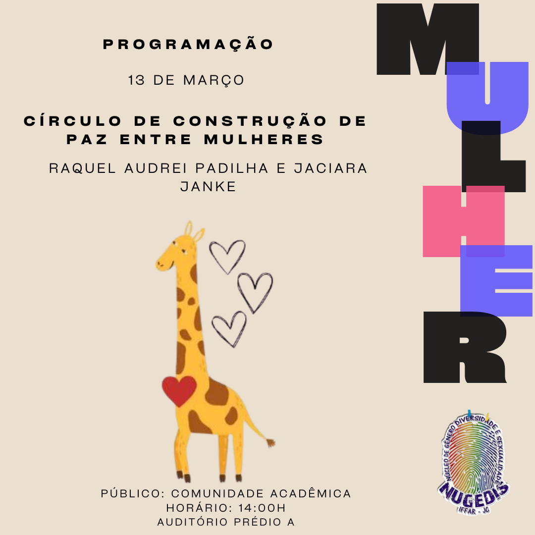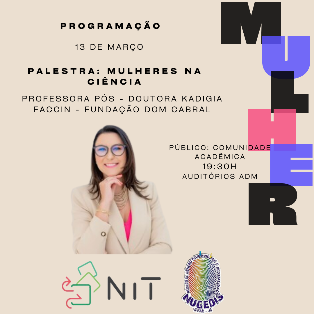 As atividades do Mês da Mulher são organizadas pelo Núcleo de Gênero e Diversidade Sexual (Nugedis) em parceria com a Direção de Ensino, Projeto Feira Dando Alma ao Alimente, Núcleo de Arte e Cultura (NAC) e Núcleo de Inovação e Tecnologia (NIT).
