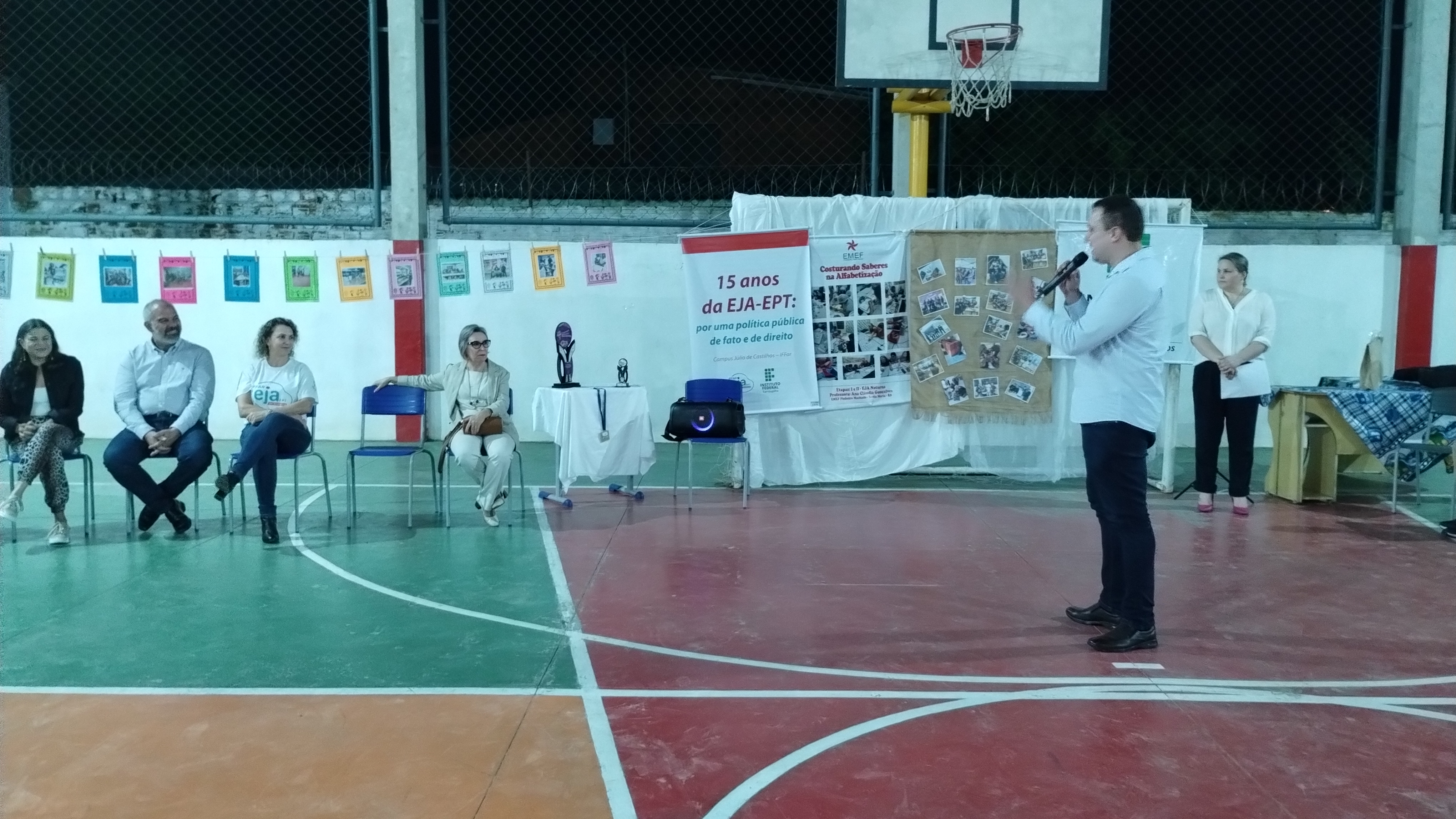 A noite de segunda-feira (08) foi marcada pela aula inaugural da EJA/EPT “Novos caminhos, novas perspectivas”, apresentada pelo psicólogo e diretor geral do campus Júlio de Castilhos, Rodrigo Carlotto, na escola Pinheiro Machado. Estiveram presentes o vice-prefeito, Rodrigo Décimo, a secretária de educação de Santa Maria, Lúcia Madruga, a vereadora Luci Duarte “tia da moto”, a coordenadora da EJA no IFFar, Cleia Tonin, a diretora de ensino Silvia Montagner e a diretora da escola Pinheiro Machado, Lucélia Helena Ferreira.