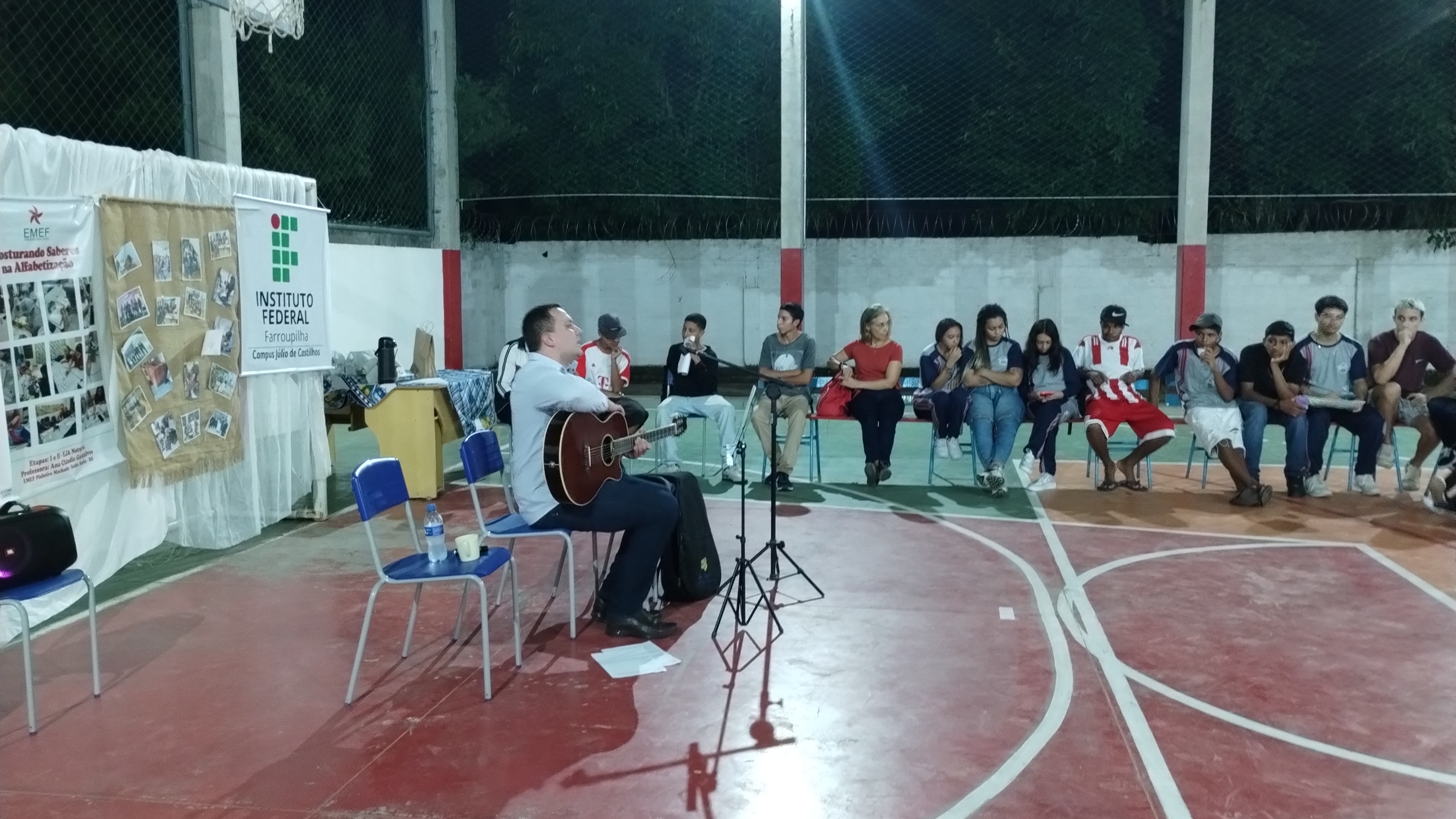 Antes da palestra teve momento cultural organizado pela professora Raquel, que organizou um cordel com os/as alunos/as da terceira fase.